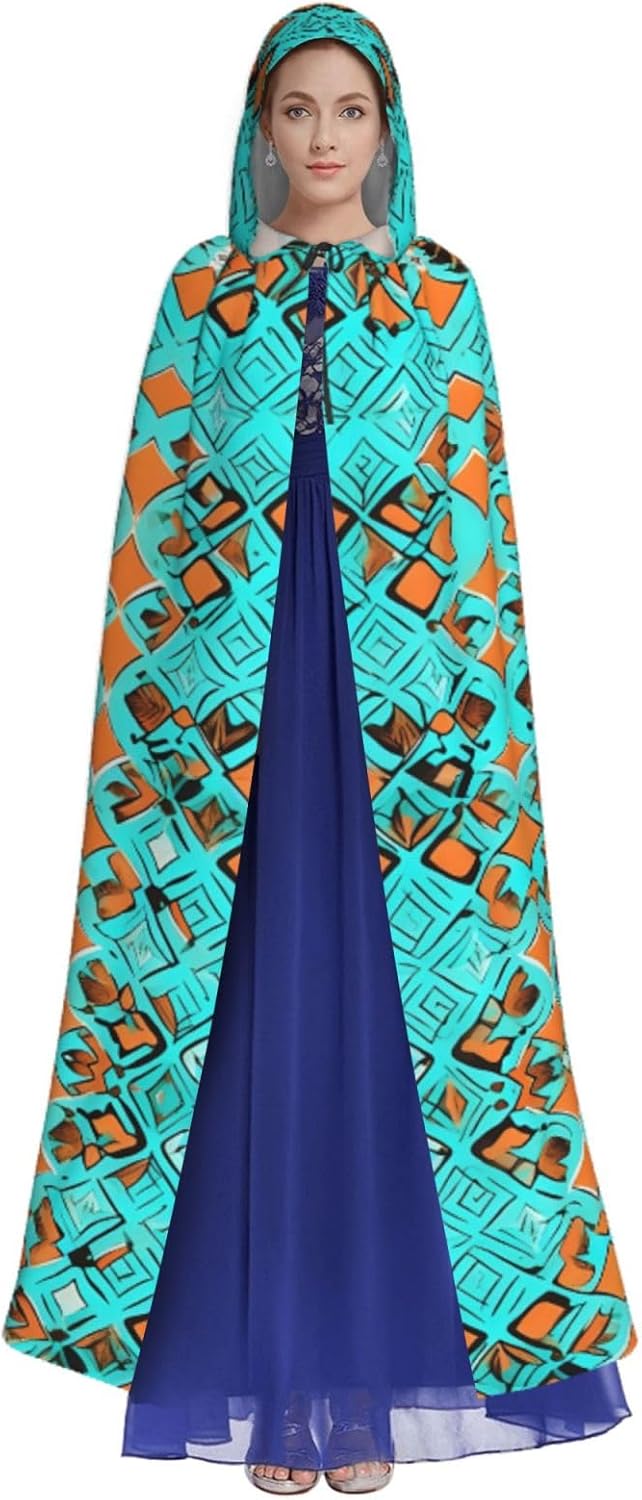 Il mantello con cappuccio per Halloween è realizzato con tessuto in poliestere morbido anche sulla pelle, prevenendo qualsiasi irritazione. Il mantello presenta un ampio cappuccio e uno stile annodato senza cerniere per un design sofisticato ed elegante. Con la sua dimensione universale, offre una copertura completa, adatta a tutti, assicurandoti di distinguerti tra la folla. Questo mantello turchese con stampa meraviglie non è solo per Halloween; è abbastanza versatile per cosplay, spettacoli teatrali, balli in maschera, feste a tema e molto altro ancora.