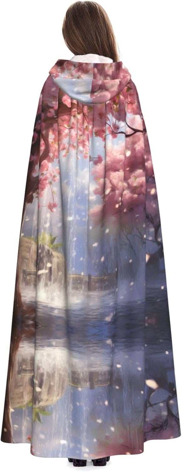 Mantello con cappuccio in fiore di ciliegio primaverile, abiti da uomo e donna adulti, costumi cosplay di Natale e Halloween, feste in costume