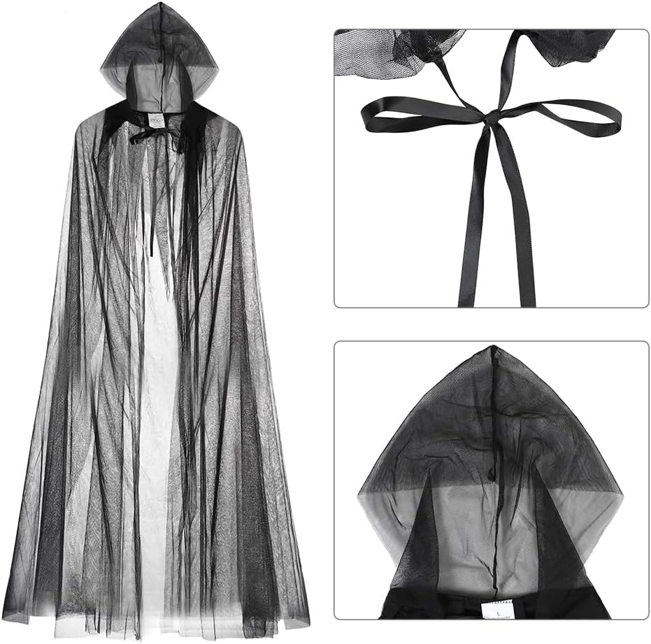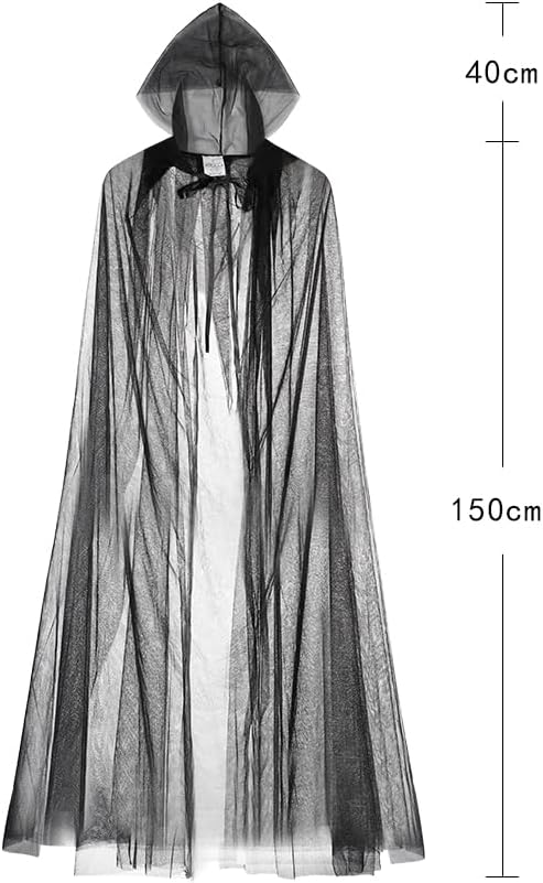 b>Pronto per aggiungere un tocco di mistero al tuo outfit di Halloween? Scopri il nostro mantello con cappuccio traslucido, che unisce discrezione e teatralità! Realizzata in poliestere a rete ultraleggera (lunga 185 cm), questa mantella per adulti segue i movimenti con fluidità lasciando passare l'aria grazie alla sua struttura traforata. Il cappuccio profondo e il drappeggio fluido (bianco o nero) creano una silhouette spettralmente elegante, perfetta per incarnare un personaggio misterioso durante feste in costume, festival o servizi fotografici. Facile da indossare e mantenere, trasforma istantaneamente il tuo look senza compromettere il comfort! Lunghezza: 185 CM Materiale: Rete di poliestere Colori: Nero, bianco Avvertenza: Lavabile in lavatrice a 30°C max (ciclo delicato). Asciugare in piano, lontano dalla luce solare diretta. Piccole variazioni di trasparenza a seconda dell'illuminazione.