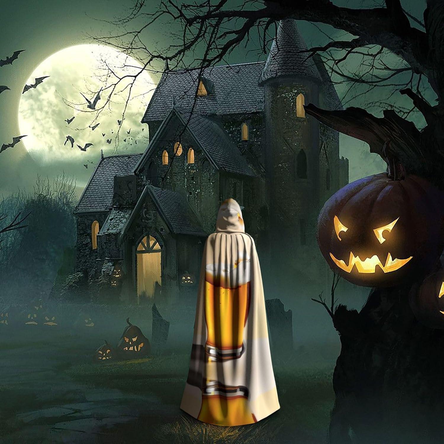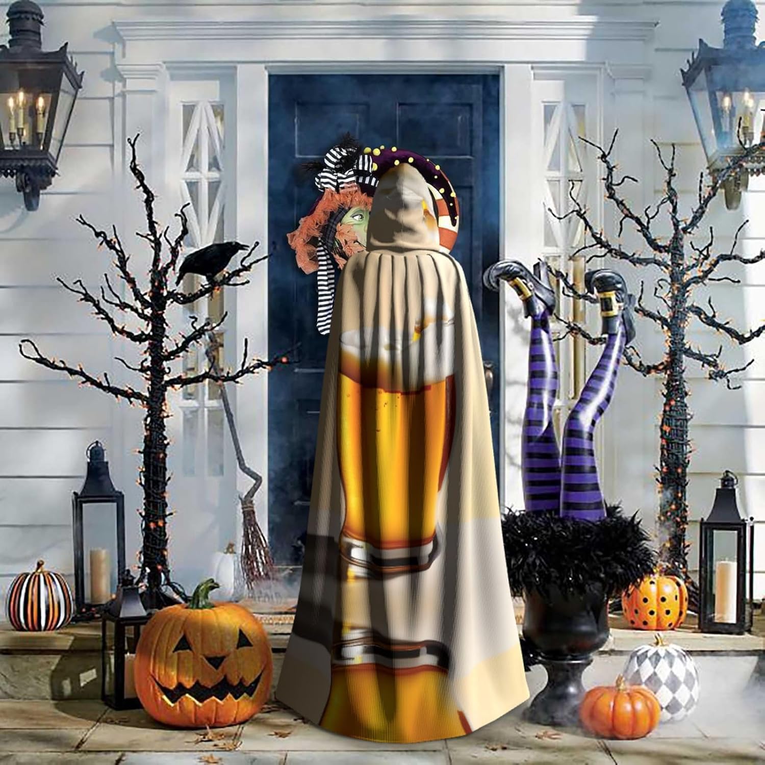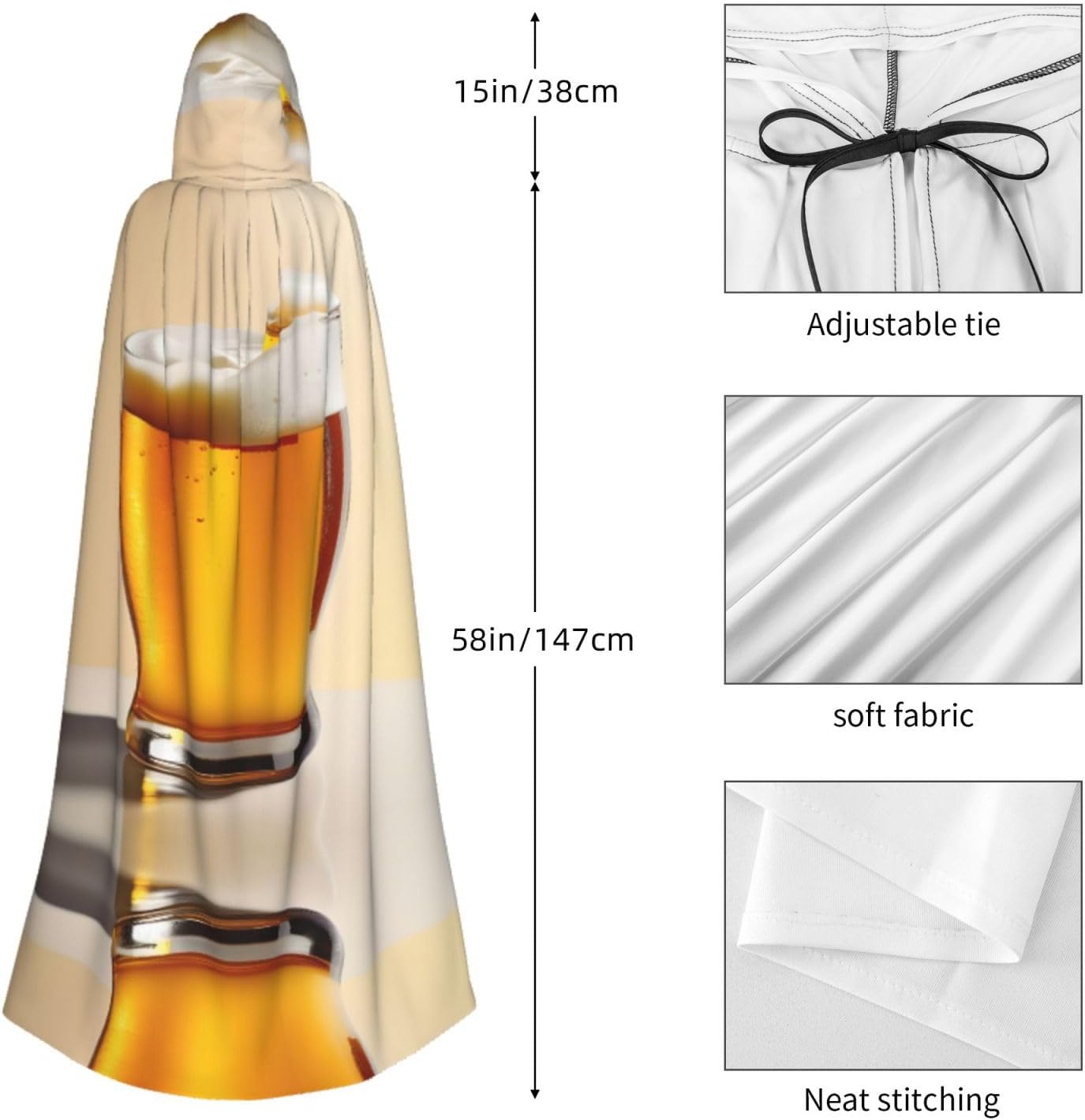 Mantello con cappuccio in schiuma di birra mantello medievale mantello da mago mantello nero per adulti costume da strega