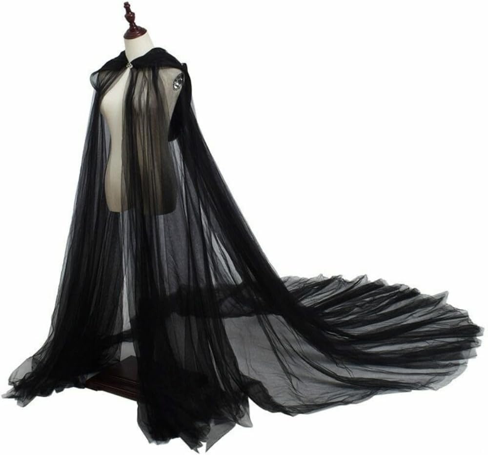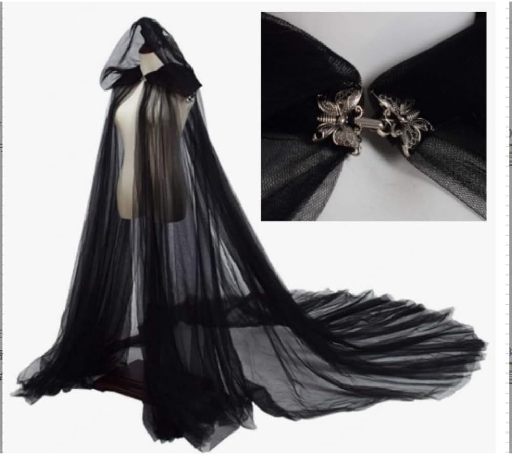 Materiale: questo mantello è realizzato in poliestere con struttura in tulle morbida e traspirante, resistente e di facile manutenzione. Dimensioni: questo mantello con cappuccio è lungo circa 150 cm (escluso il cappuccio) e arriva fino a terra quando indossato, svolazza nel vento ed è adatto alla maggior parte delle donne e ragazze. Design: questo mantello presenta un design con cappuccio in stile retrò, aggiungendo un tocco misterioso. È decorato in colori classici come il nero, il rosso e il bianco ed è realizzato in tulle leggero con un eccellente drappeggio, che sottolinea l'incantevole impressione generale. MULTIUSO - Adatto per feste di fidanzamento, notti di matrimonio, addio al nubilato, fotografia, feste di cosplay, anniversari, eventi di ballo, feste di Halloween, spettacoli magici o gotici, ecc. - per farti distinguere dalla massa. Accessori per costumi di Halloween: come accessorio accattivante di Halloween, aggiungerà un tocco di eleganza e spettralità al tuo costume di Halloween, sia che tu voglia vestirti da vampiro, strega misteriosa o sposa gotica.