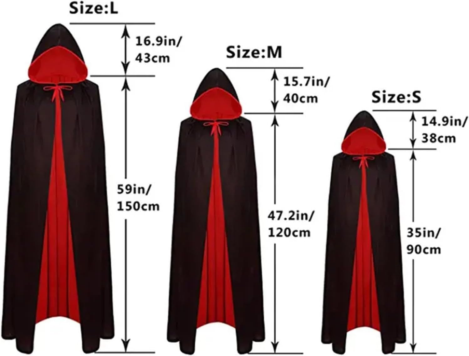 Mantello Con Cappuccio Mantello con cappuccio reversibile for bambini e adulti, costumi cosplay di Halloween Per Halloween(Red,80cm)