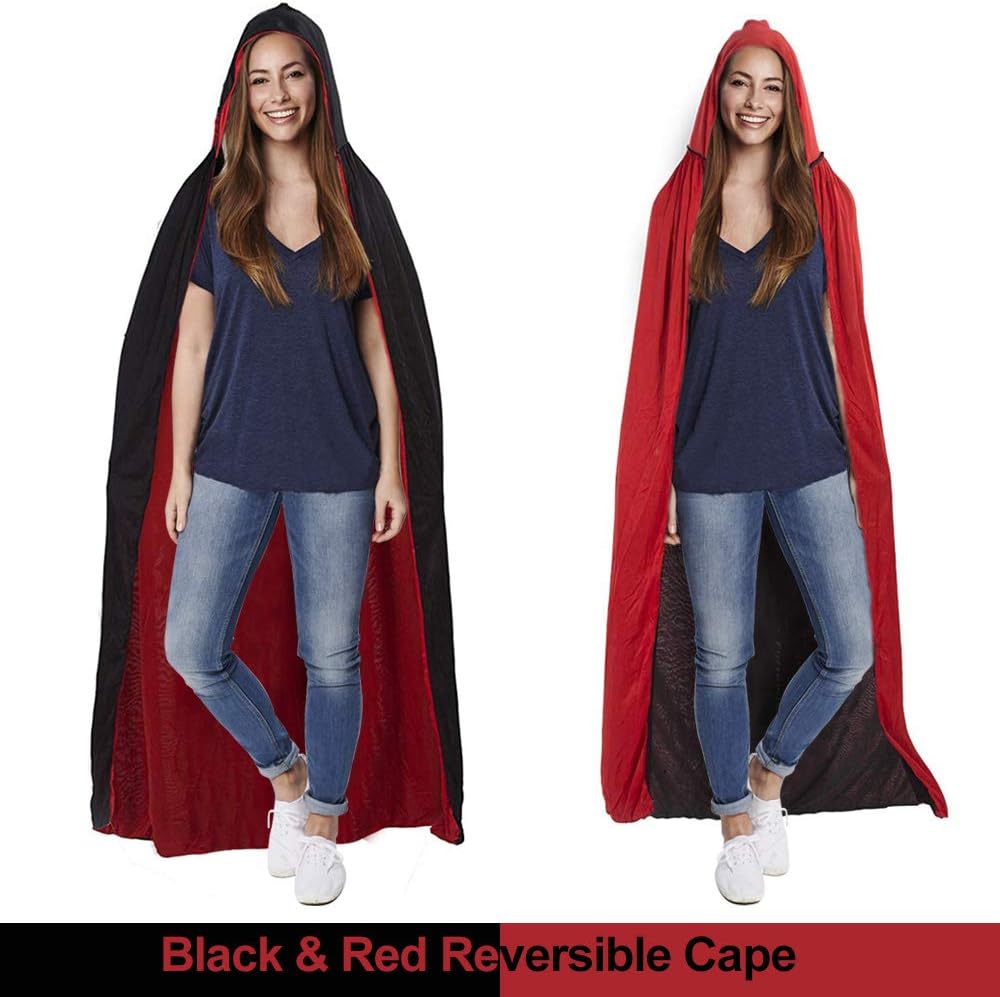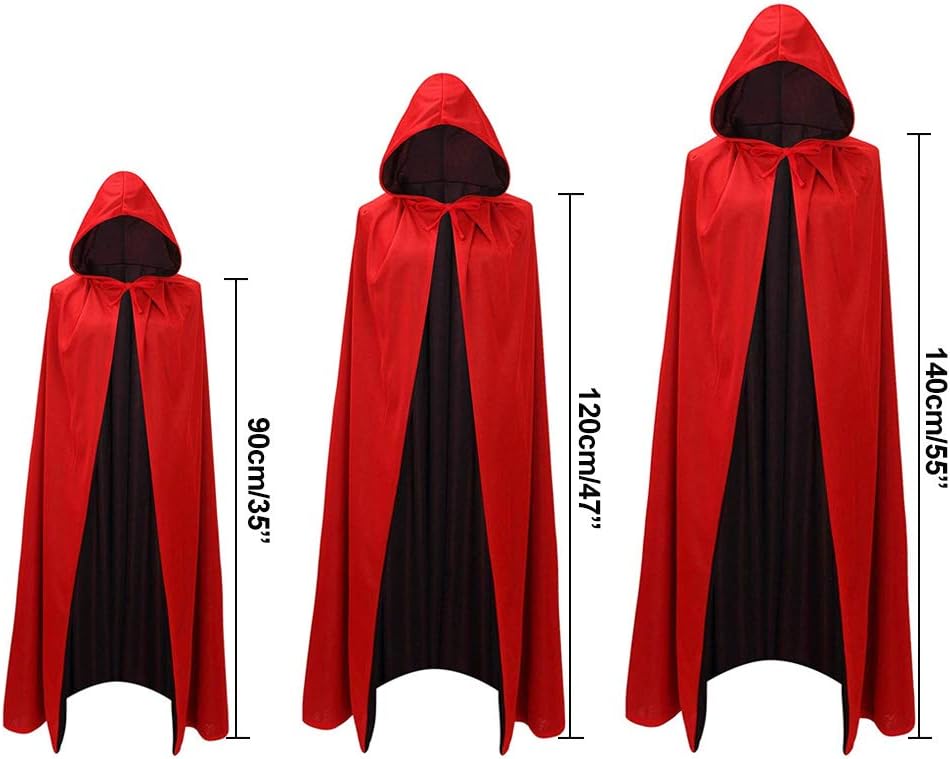 😁 【Materiale confortevole】 Maglia morbida e traspirante. Il mantello con una corda, è possibile legare intorno al collo, evitare di cadere dalla spalla. 😁 【Due facce reversibili】 Un mantello rosso e nero a doppia faccia, puoi scegliere di indossare il nero o il rosso all'esterno e interpretare i ruoli che preferisci, come vampiri e streghe. 😁 【Colore classico】 Sarai bello e misterioso quando lo indossi, attiri gli occhi degli altri, puoi creare un'atmosfera da festival e divertirti molto alla tua festa. 😁【Costume fantasia】 Mantella reversibile con cappuccio nera e rossa. Ideale per qualsiasi festa di streghe, gotici, vampiri, storici o di Halloween mascherati. 😁【3 Diverse dimensioni】 Le lunghezze sono 90 cm, 120 cm e 140 cm (escluso il cappuccio). Adatto per la maggior parte dei bambini, adolescenti e adulti. Questo è il costume ideale per vestire la famiglia e la coppia di Halloween.