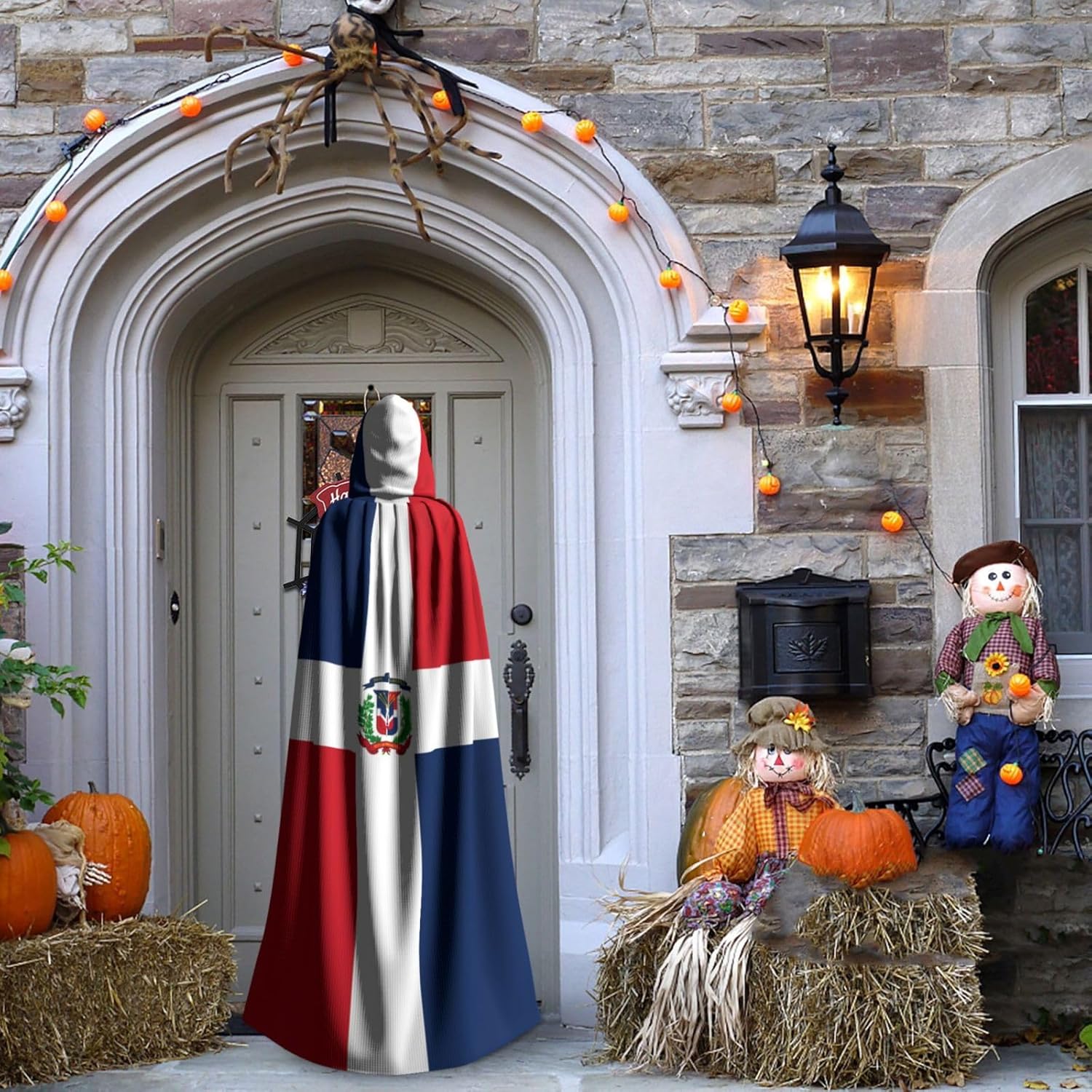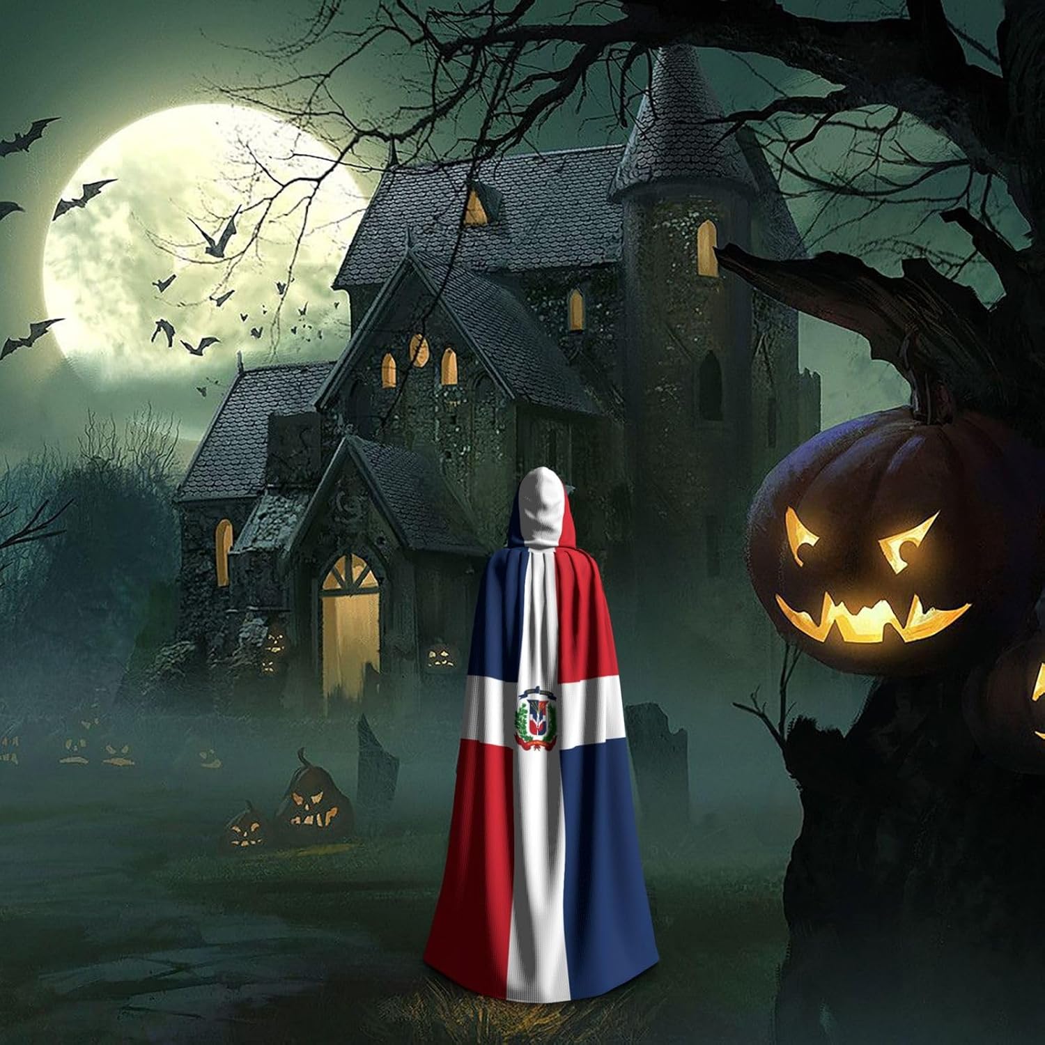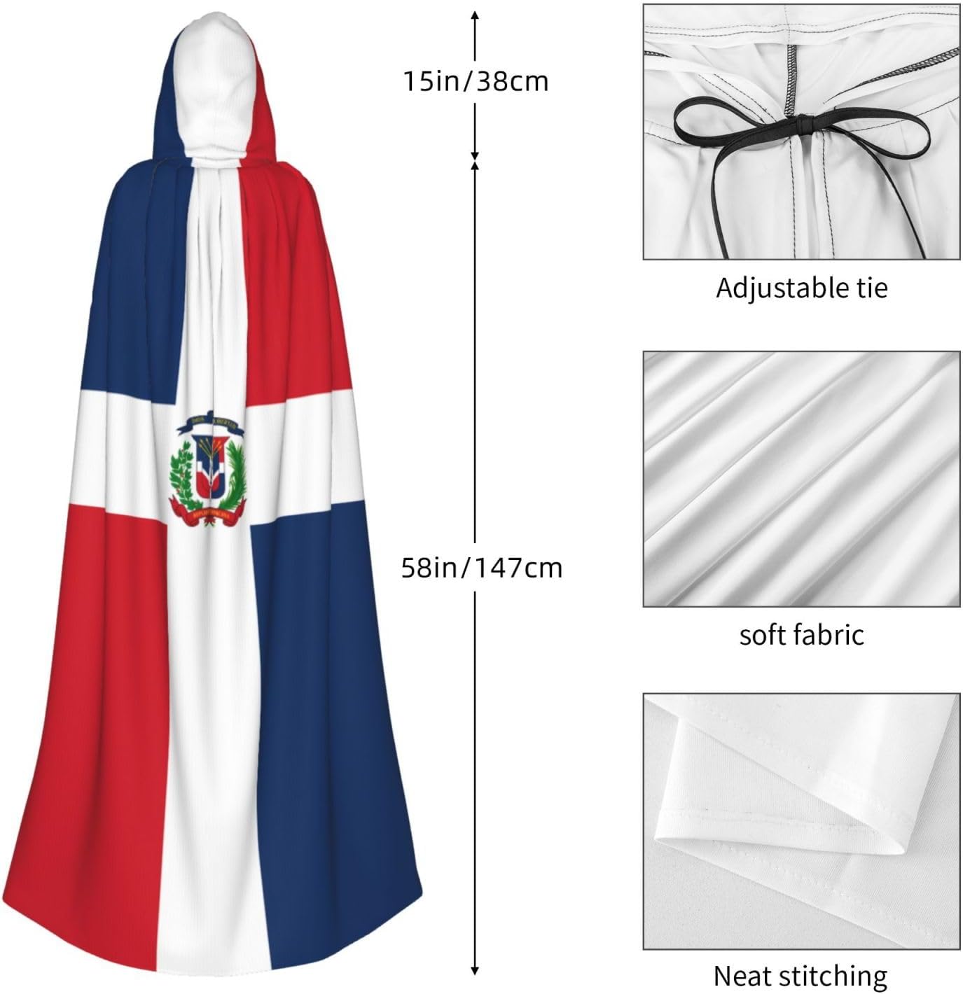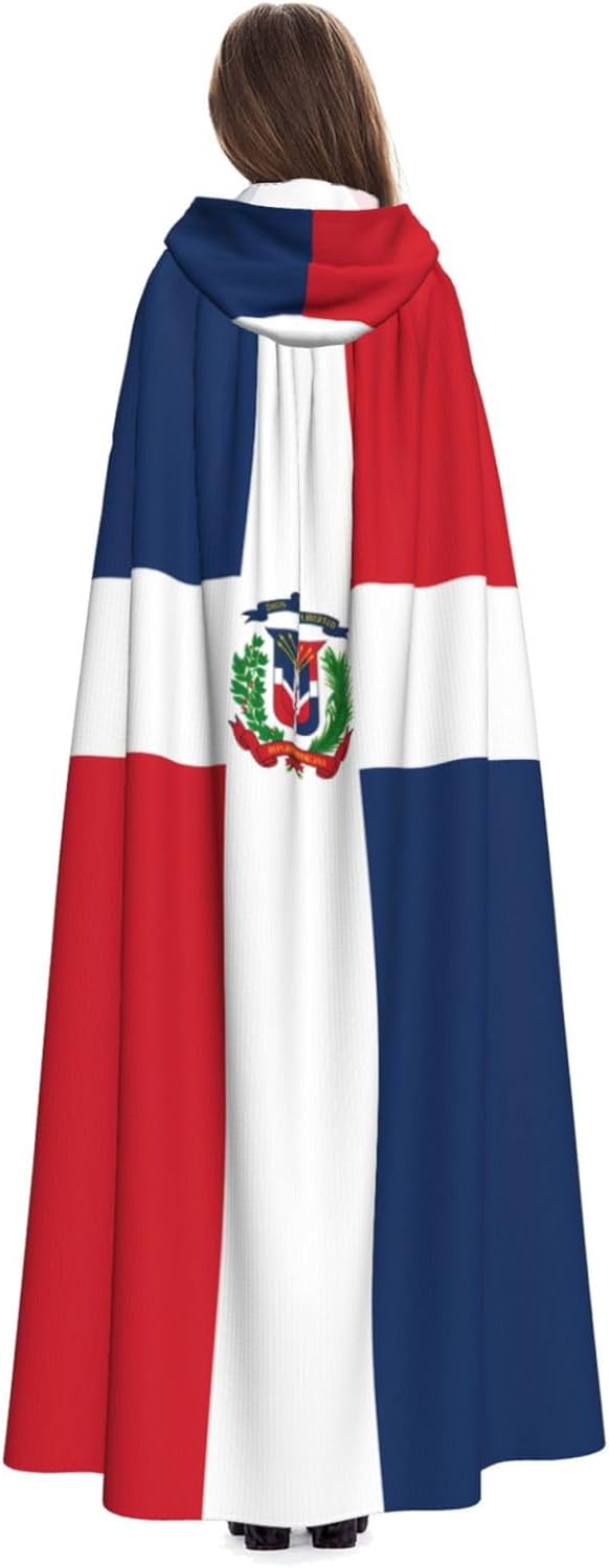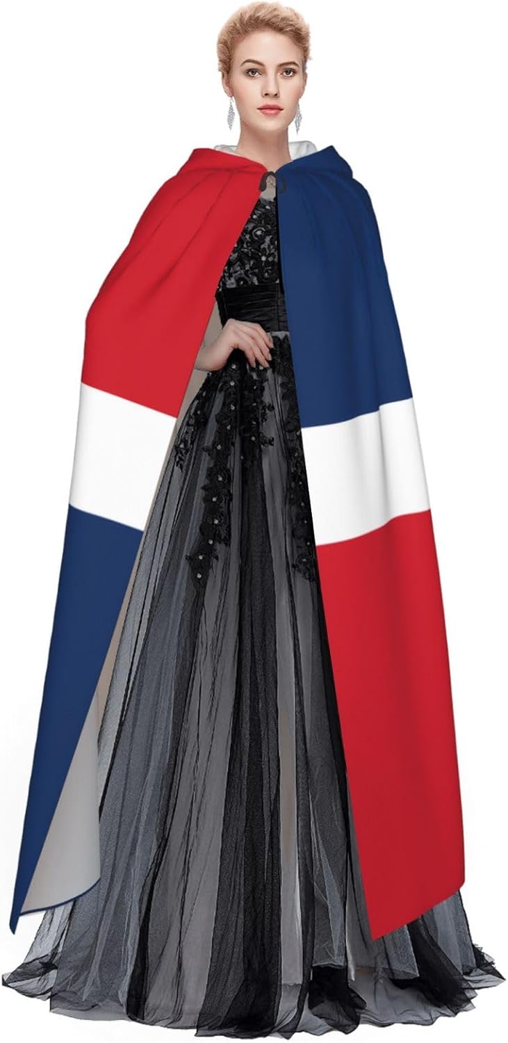 Mantello con cappuccio per adulti di Halloween della Repubblica Dominicana con mantello con cappuccio oversize, è con papillon, senza cerniera, adatto per Halloween, costumi cosplay, costumi da palcoscenico, mascherata, feste a tema, balli, fumetti, ecc. Può essere utilizzato per feste, martedì grasso, Halloween, feste in costume e molto altro ancora.