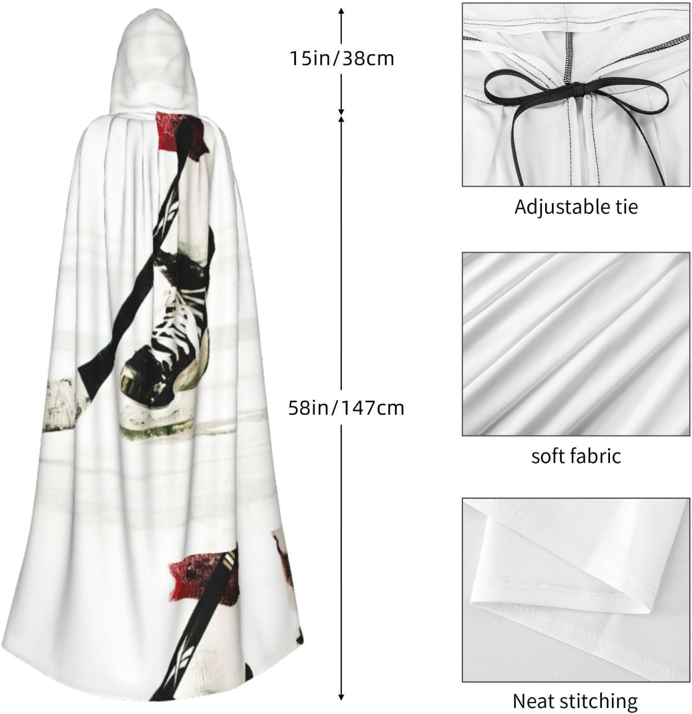 Mantello con cappuccio per adulti, elegante, per carnevale, feste a tema, cosplay, motivo hockey su ghiaccio
