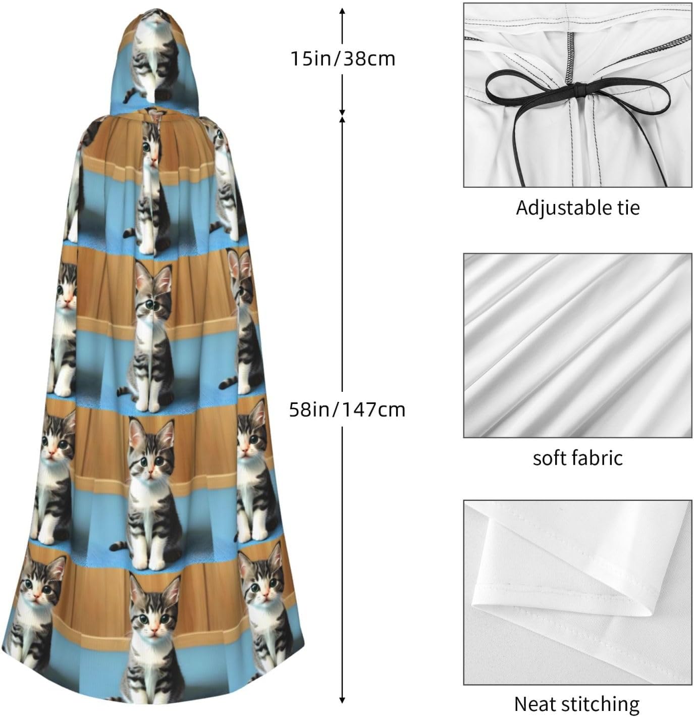 Materiale e design del gattino della camera da letto: il tessuto è realizzato in 100% fibra di poliestere (poliestere) tessuto di alta qualità, morbido e confortevole. Il design con cappuccio non è solo elegante e bello, ma fornisce anche calore extra alla testa e al collo. Caratteristiche del prodotto: il poncho oversize con cappuccio è un poncho con cappuccio senza lacci, senza cerniera, comodo realizzato in tessuto lungo, resistente e non prurito. Dimensioni del prodotto: il cappello misura 38,1 cm di altezza, 147,3 cm di lunghezza, 154 cm di larghezza. Adatto per occasioni: feste di Natale, feste di Halloween, feste in costume, celebrazioni pagane. Ideale per travestimenti, cosplay, costumi da scena, streghe, vampiri, royalty, scelta regalo perfetta per amici o familiari. Persone applicabili: adulti, unisex