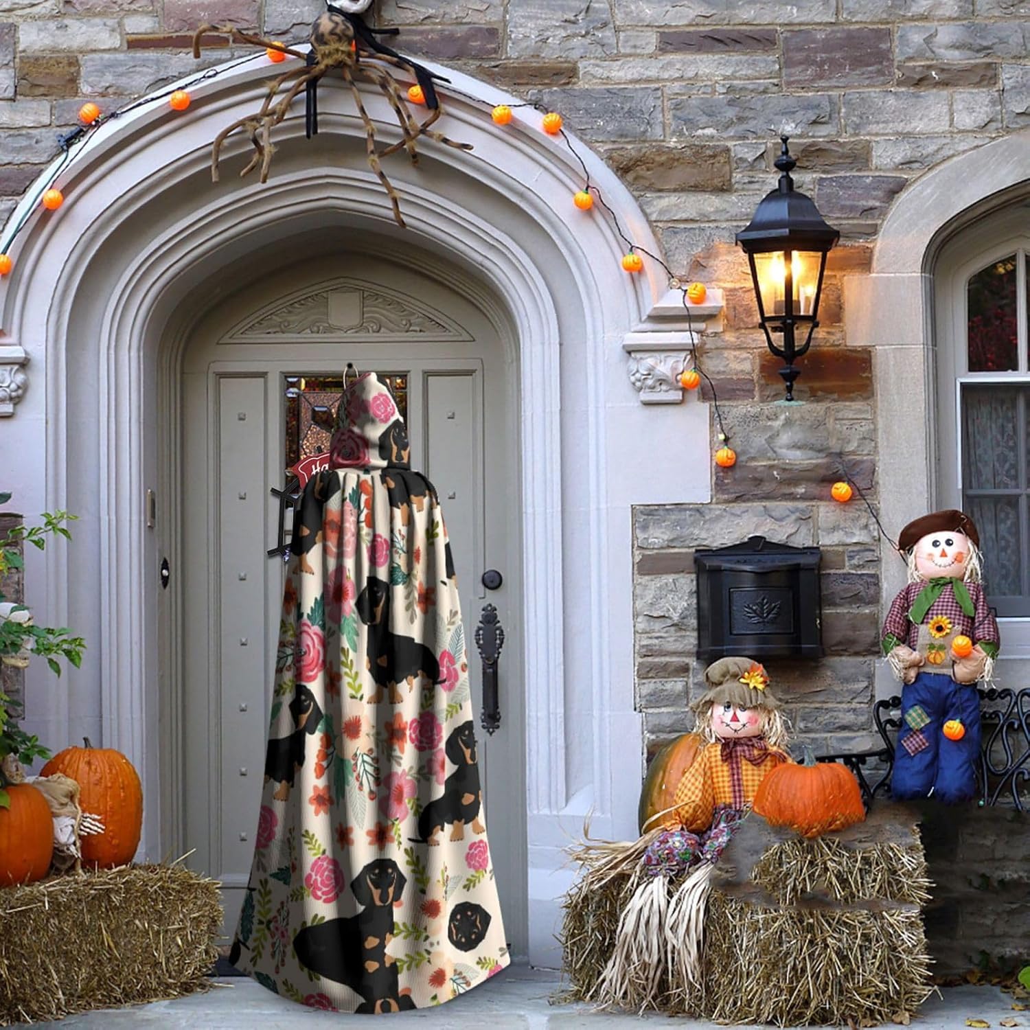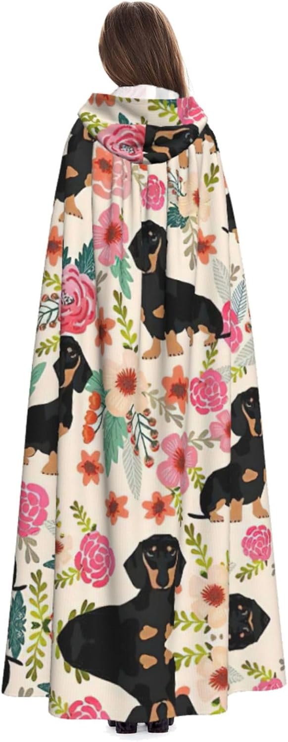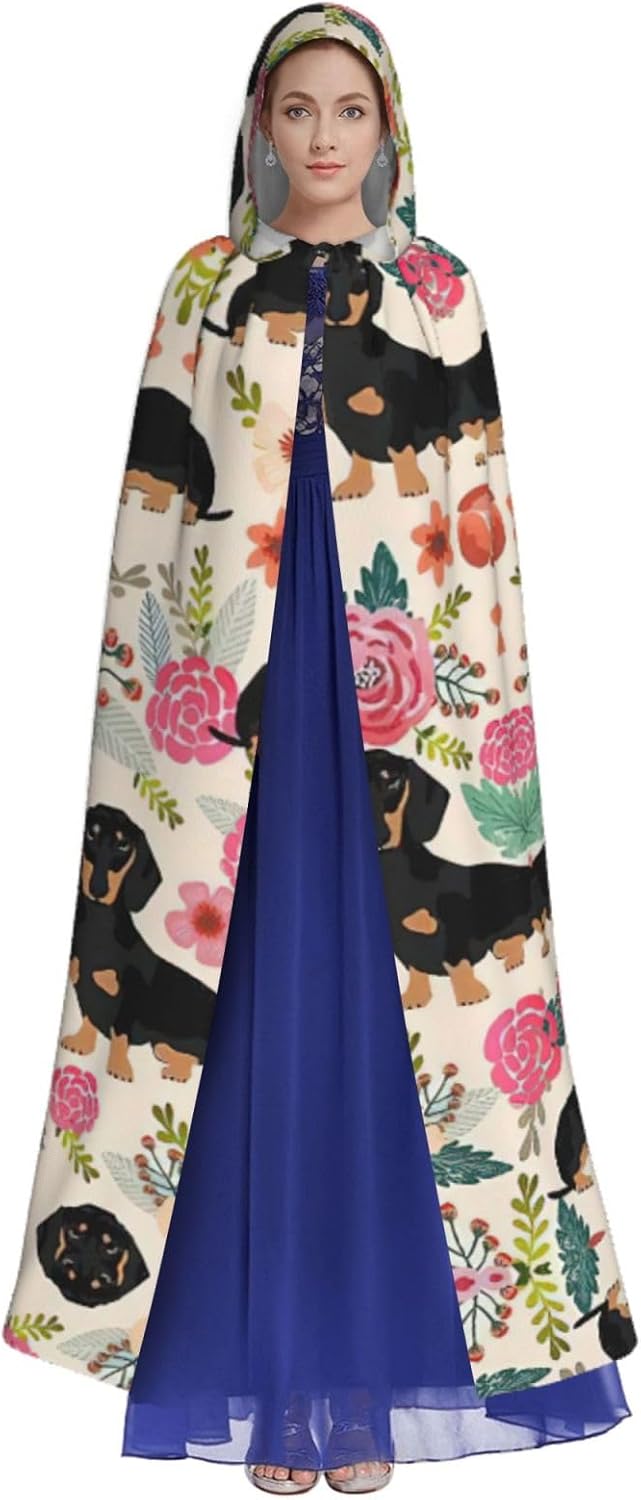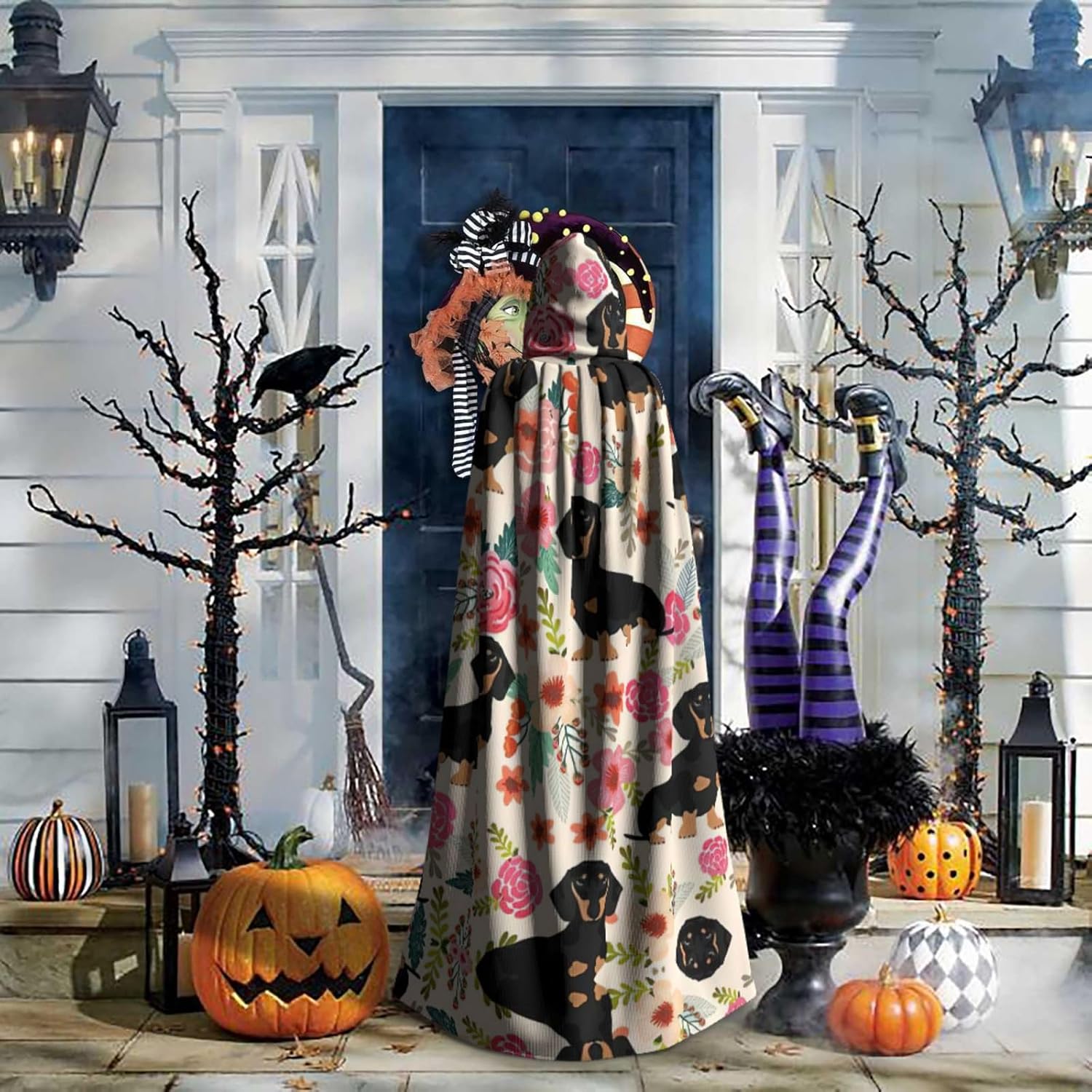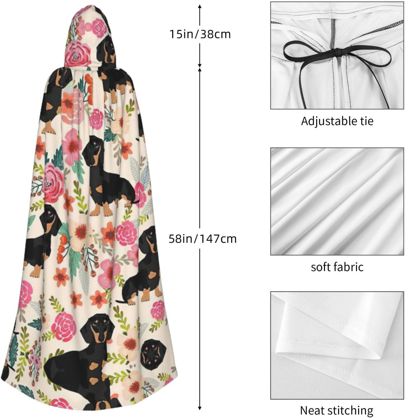 Mantello con cappuccio per cani e fiori, mantello medievale per Halloween, mantello da mago, mantello nero, costume da strega per adulti