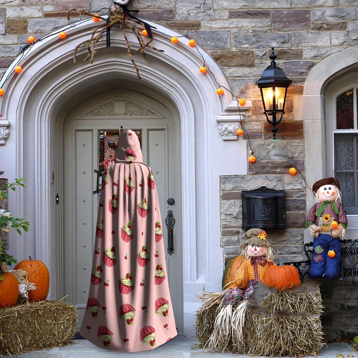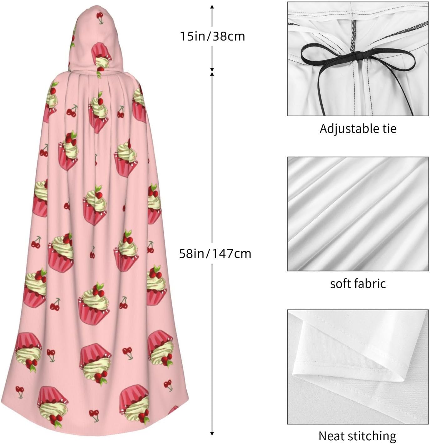 Preparati per Halloween e feste in costume con il mantello con cappuccio YYHWHJDE Cherry Cake Prints Halloween per adulti. Realizzato in 100% fibra di poliestere, questo mantello non è solo comodo ma anche resistente, assicurandoti di poterlo indossare per più occasioni. Il cappuccio super grande con papillon aggiunge un tocco di mistero ed eleganza al tuo look, perfetto per Halloween, giochi di ruolo e feste a tema. Con un design a lunghezza intera e senza cerniera, questo mantello offre una copertura completa e facile da indossare. Che tu stia partecipando a un ballo in maschera, a una mostra a fumetti o a una festa di Natale, questo mantello è l'accessorio perfetto. Lavabile in lavatrice e a mano per una facile manutenzione, questo mantello è un'aggiunta versatile alla tua collezione di costumi.