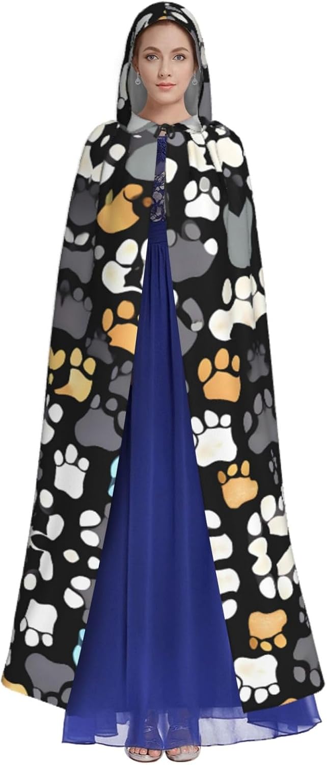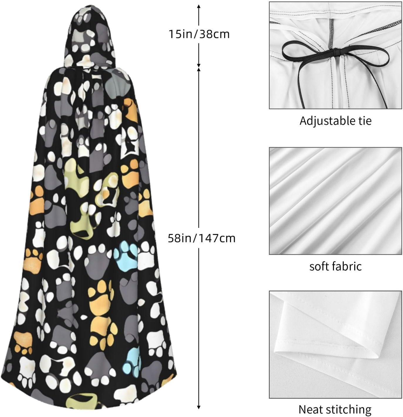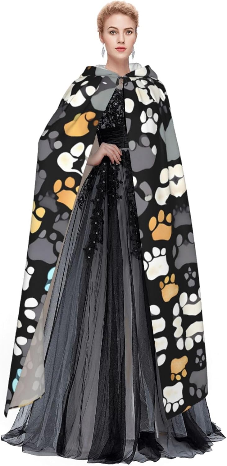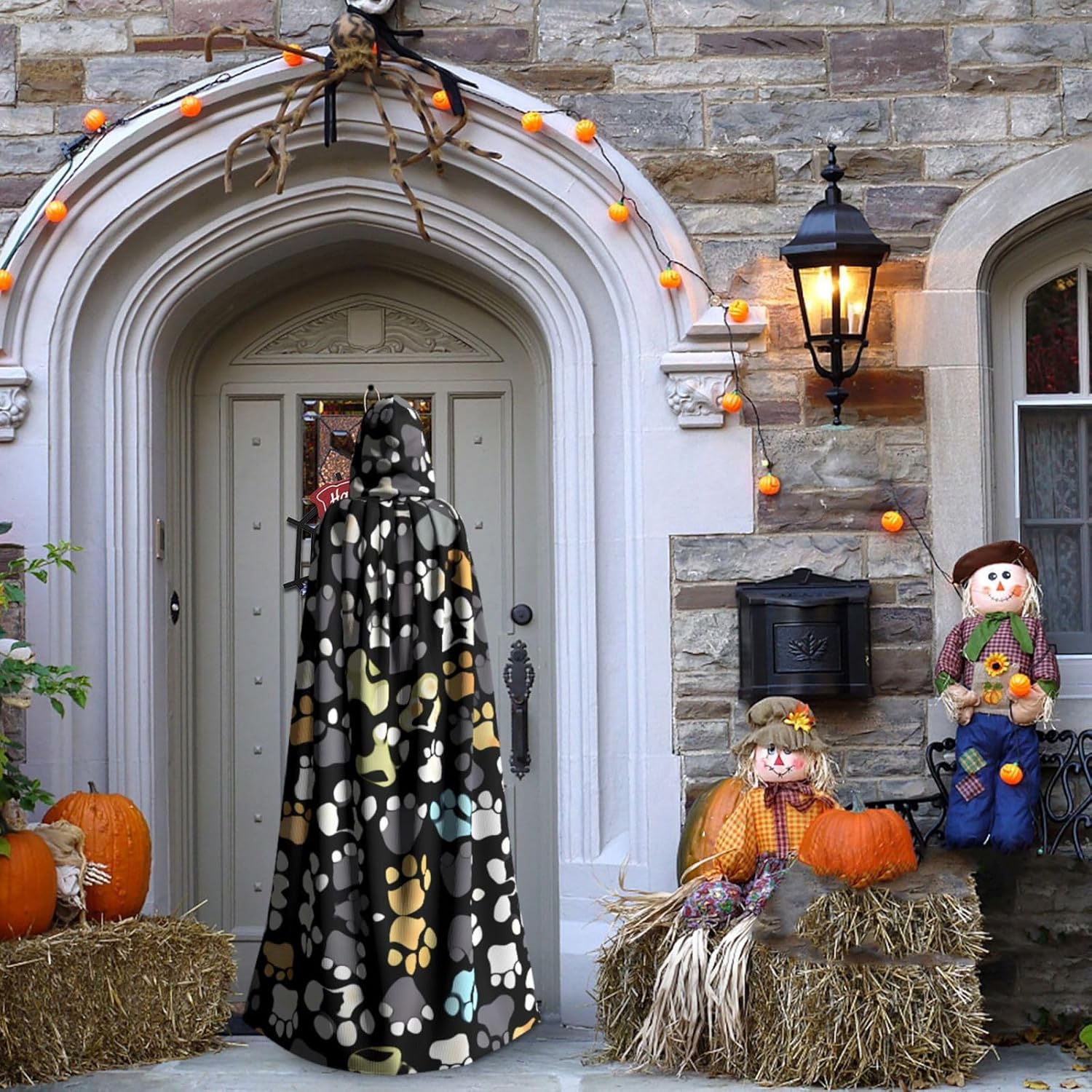 Mantello con cappuccio per Halloween con impronte di zampa di cane, scala 2, standard, 2_00x, mantello medievale, mantello da mago, mantello nero, costume da strega per adulti