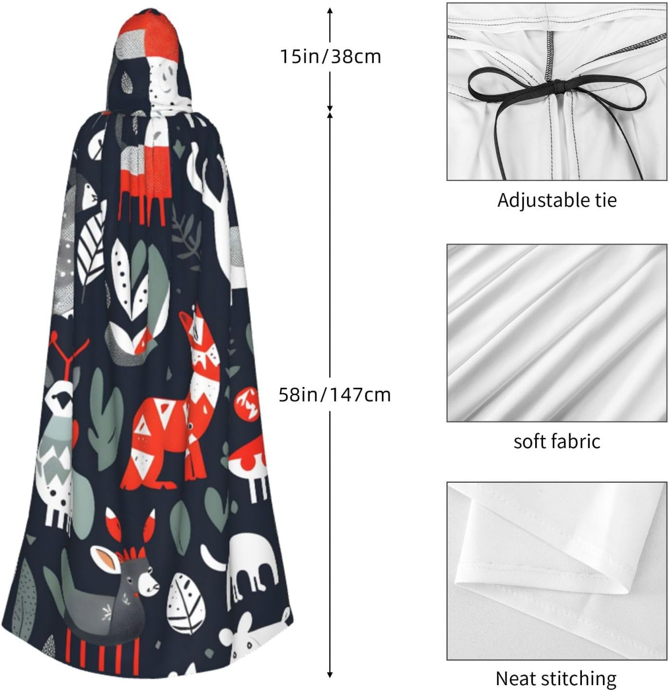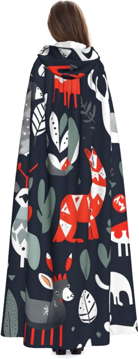 Ruba lo spettacolo a qualsiasi evento di Halloween o a tema con il nostro mantello con cappuccio. Realizzato con un tessuto confortevole, non pruriginoso, questo mantello con stampa animali scandinavi è progettato per assicurarti di distinguerti tra la folla. Il mantello è facile da indossare e togliere, grazie alla cravatta e all'assenza di una cerniera. Con un design facile da pulire, può essere lavato in lavatrice o a mano per garantire che sia sempre pronto per il tuo prossimo evento. Prova la perfetta miscela di comfort, stile e versatilità con il nostro mantello con cappuccio.