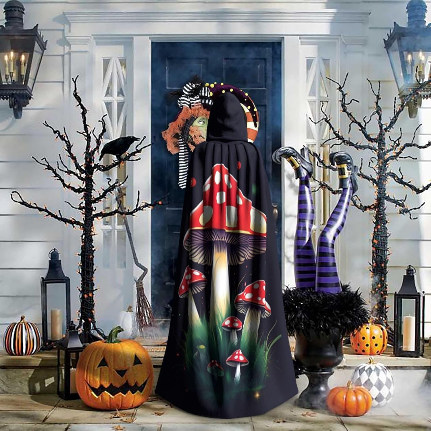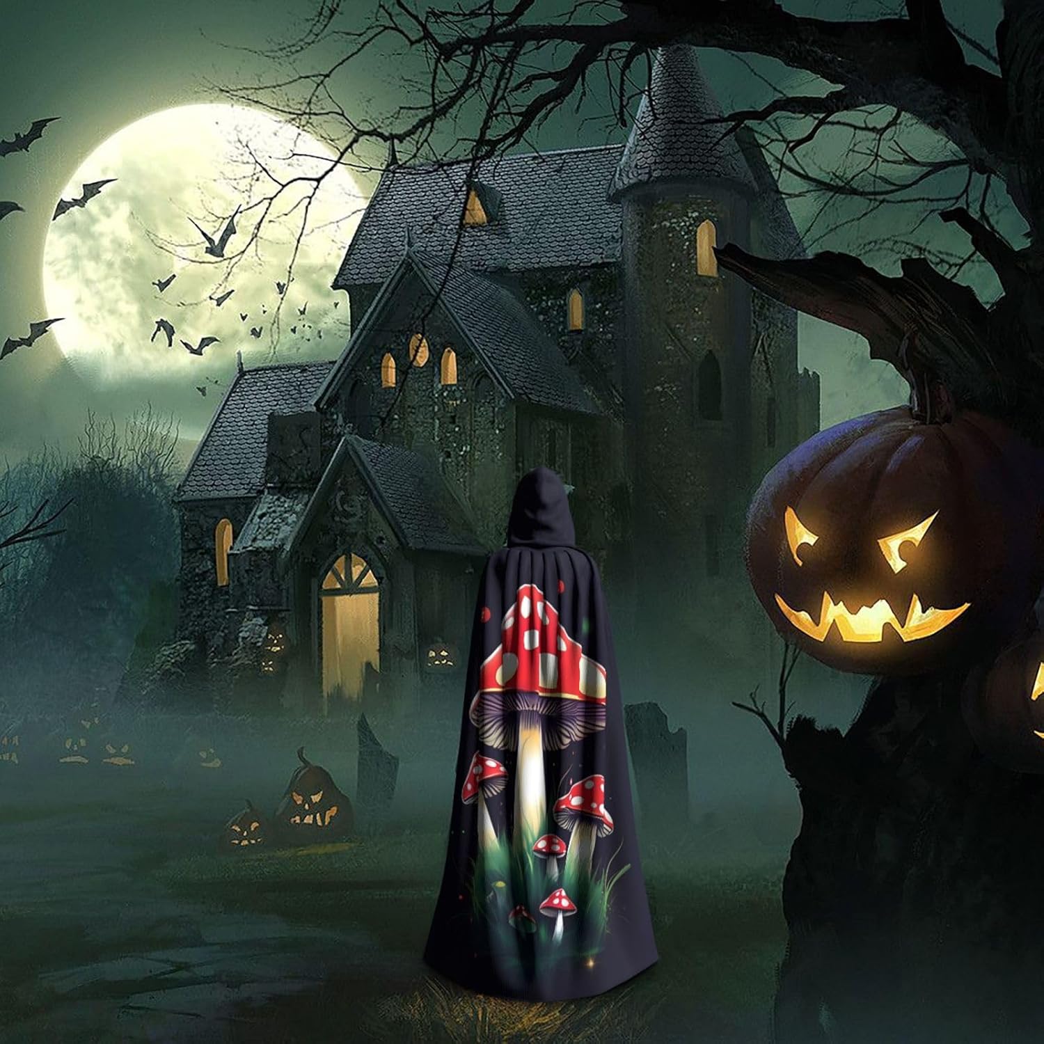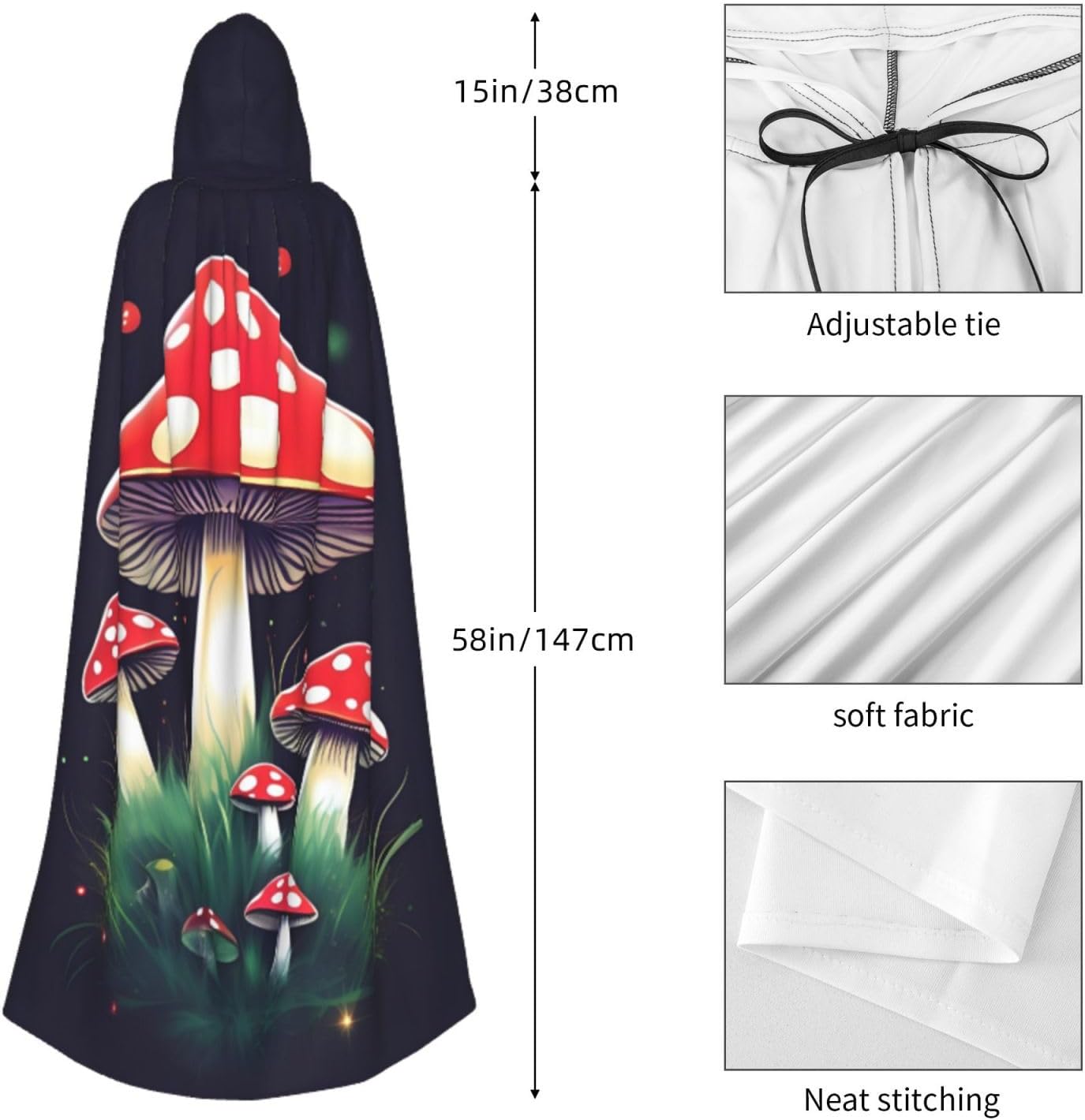 Ruba lo spettacolo a qualsiasi evento di Halloween o a tema con il nostro mantello con cappuccio. Realizzato con un tessuto confortevole, non pruriginoso, questo mantello con stampa di funghi magici è progettato per assicurarti di distinguerti tra la folla. Il mantello è facile da indossare e togliere, grazie alla cravatta e all'assenza di una cerniera. Con un design facile da pulire, può essere lavato in lavatrice o a mano per garantire che sia sempre pronto per il tuo prossimo evento. Prova la perfetta miscela di comfort, stile e versatilità con il nostro mantello con cappuccio.