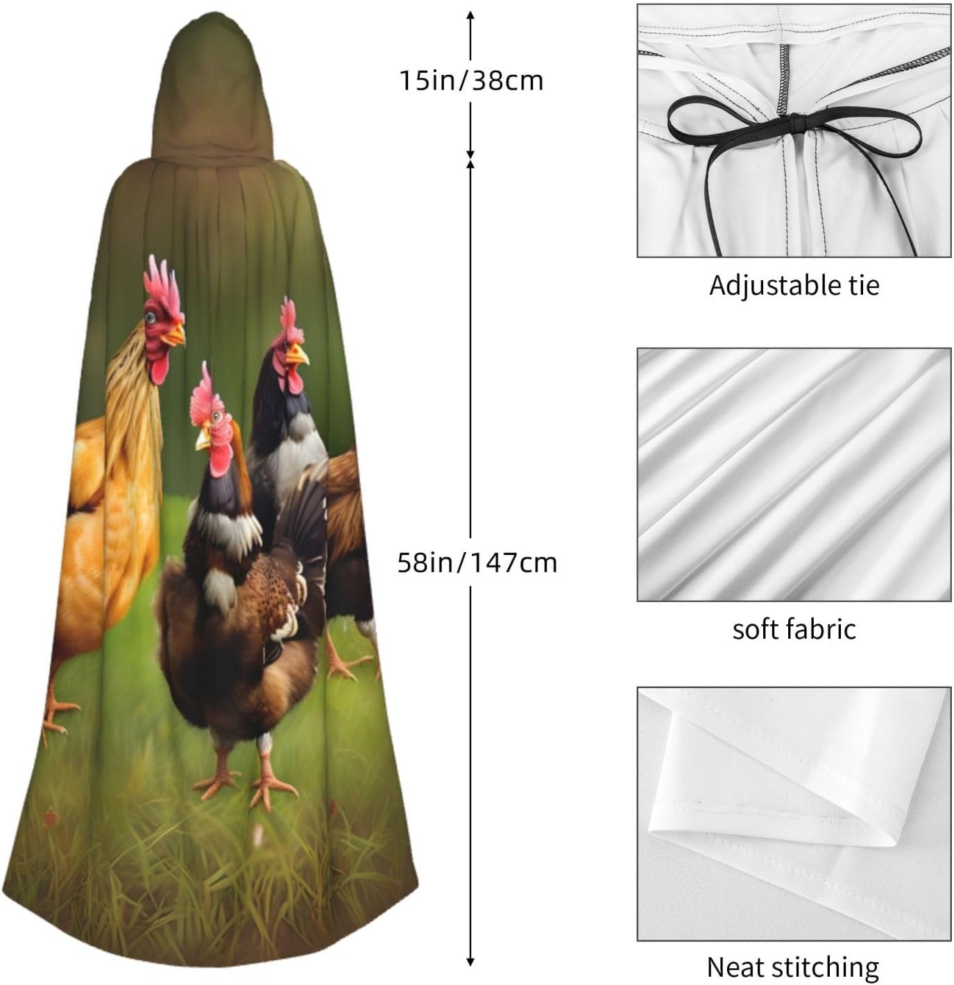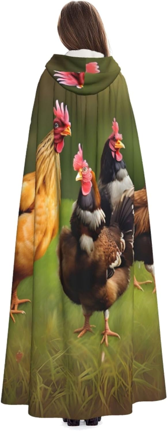 Ruba lo spettacolo a qualsiasi evento di Halloween o a tema con il nostro mantello con cappuccio. Realizzato con un tessuto confortevole, non pruriginoso, questo mantello con stampa gallo è progettato per assicurarti di distinguerti tra la folla. Il mantello è facile da indossare e togliere, grazie alla cravatta e all'assenza di una cerniera. Con un design facile da pulire, può essere lavato in lavatrice o a mano per garantire che sia sempre pronto per il tuo prossimo evento. Prova la perfetta miscela di comfort, stile e versatilità con il nostro mantello con cappuccio.