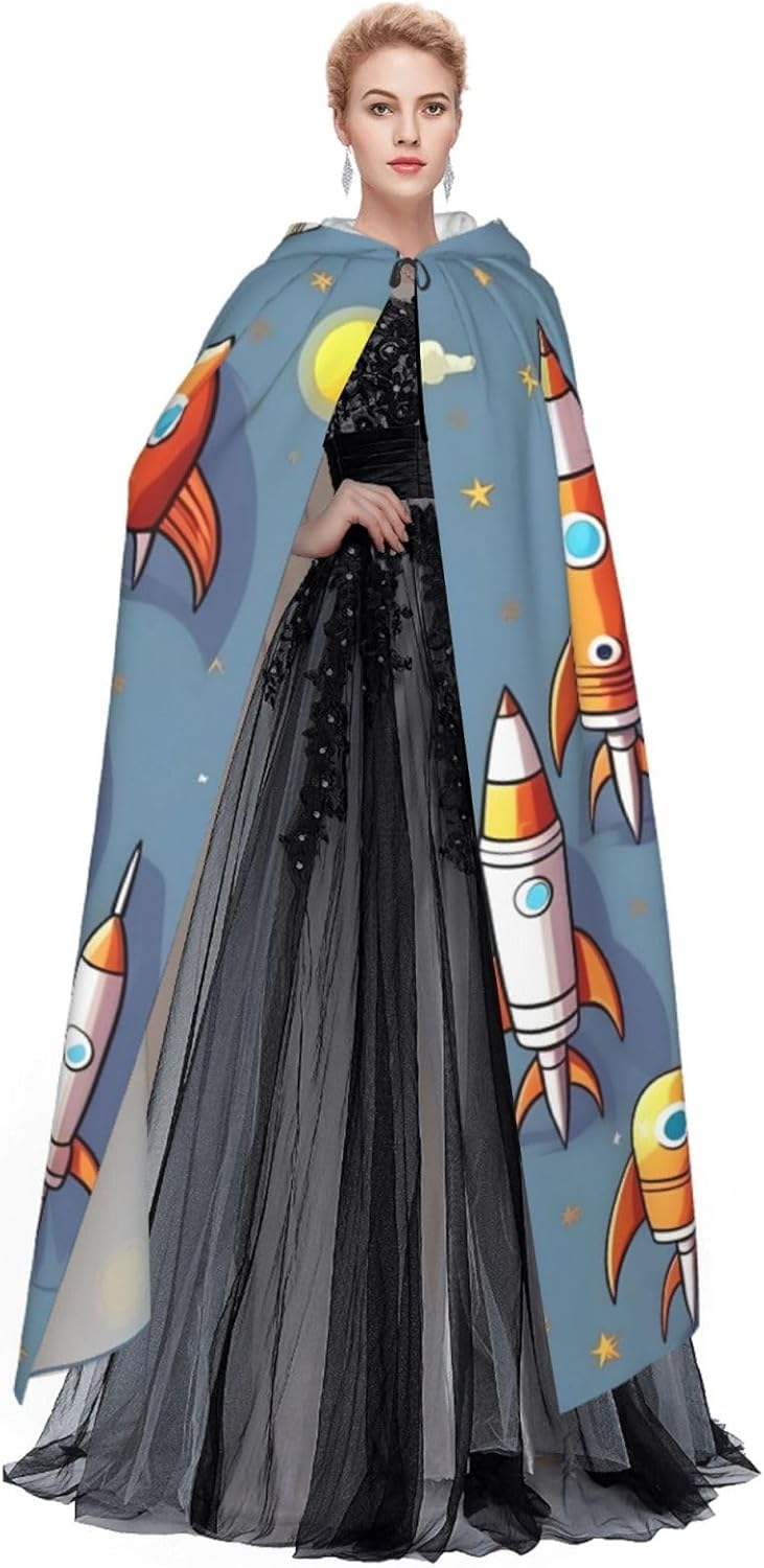 Ruba lo spettacolo a qualsiasi evento di Halloween o a tema con il nostro mantello con cappuccio. Realizzato con un tessuto confortevole, non pruriginoso, questo mantello con stampa a razzo è progettato per assicurarti di distinguerti tra la folla. Il mantello è facile da indossare e togliere, grazie alla cravatta e all'assenza di una cerniera. Con un design facile da pulire, può essere lavato in lavatrice o a mano per garantire che sia sempre pronto per il tuo prossimo evento. Prova la perfetta miscela di comfort, stile e versatilità con il nostro mantello con cappuccio.