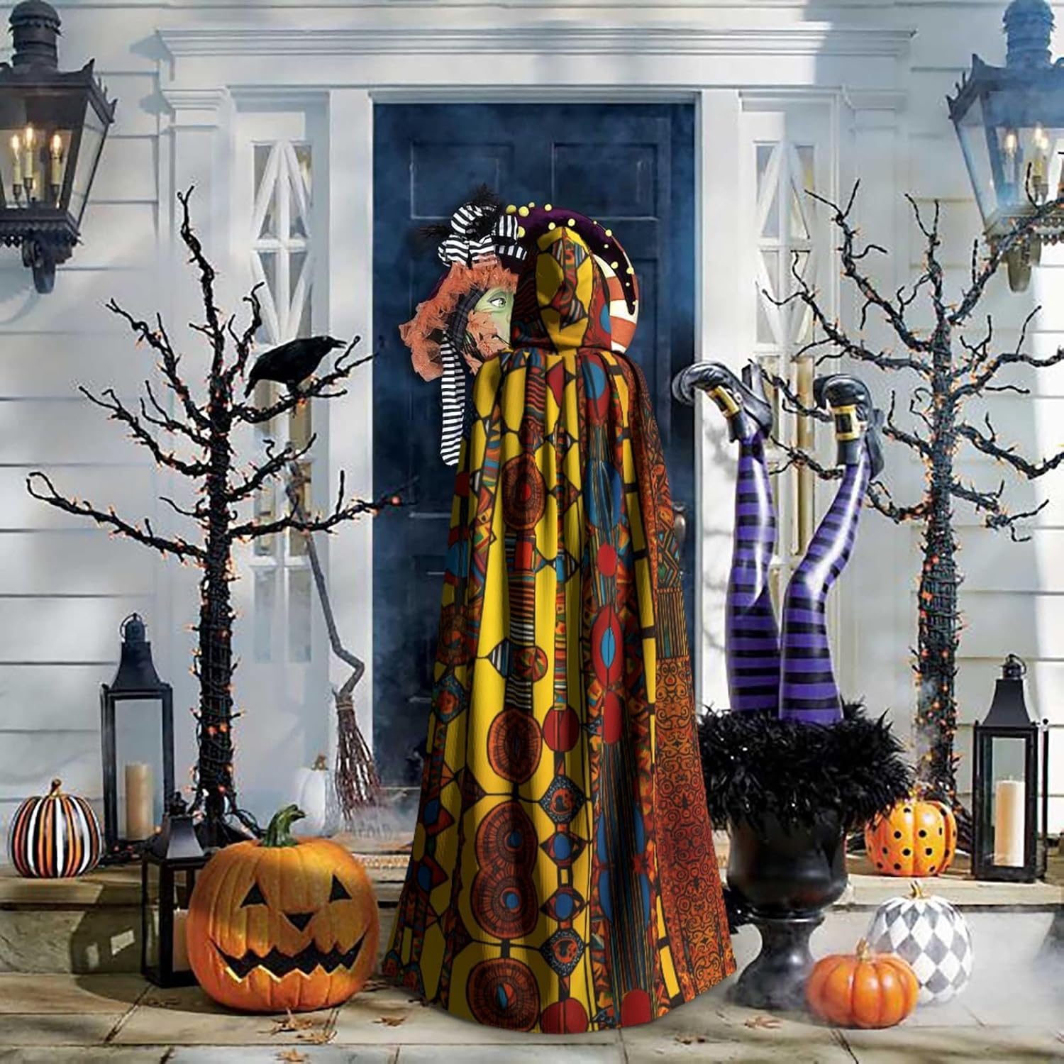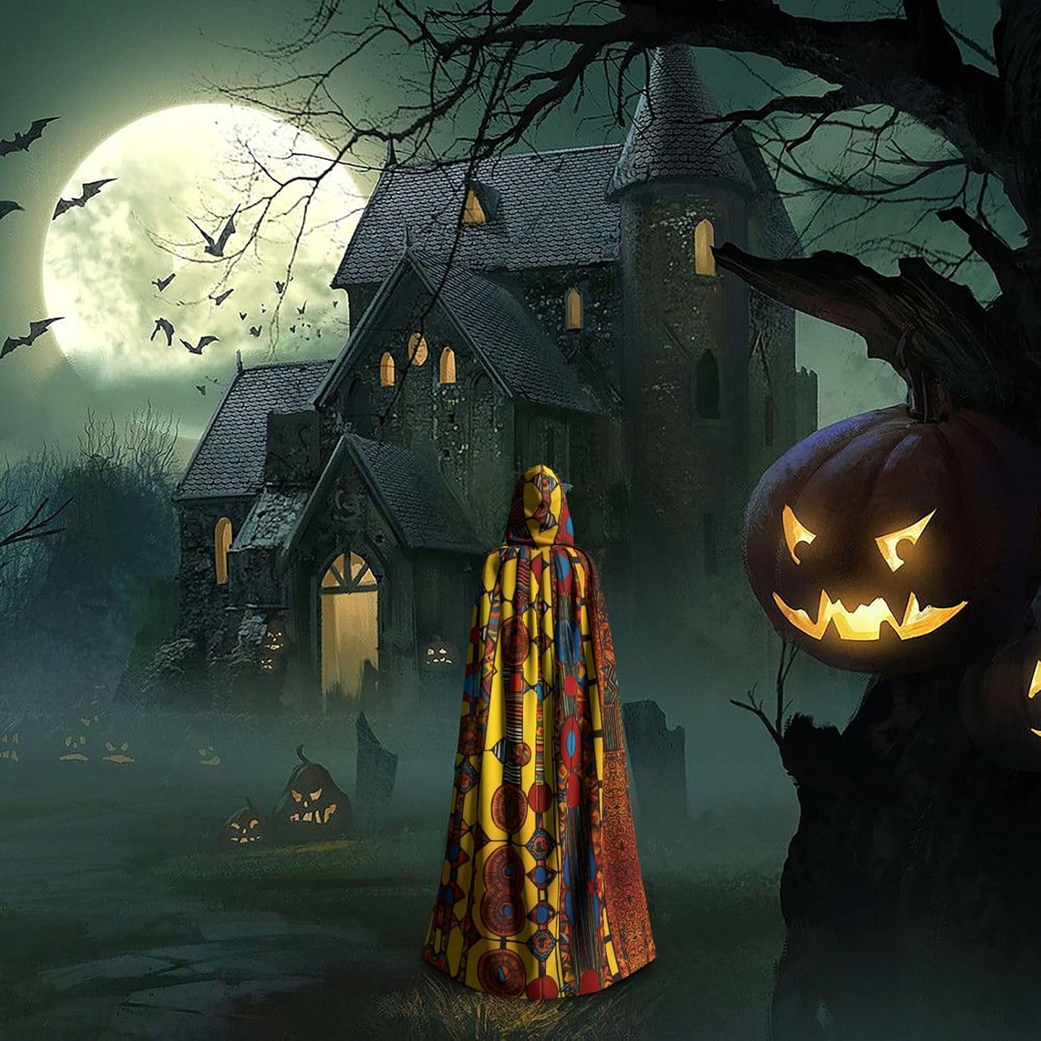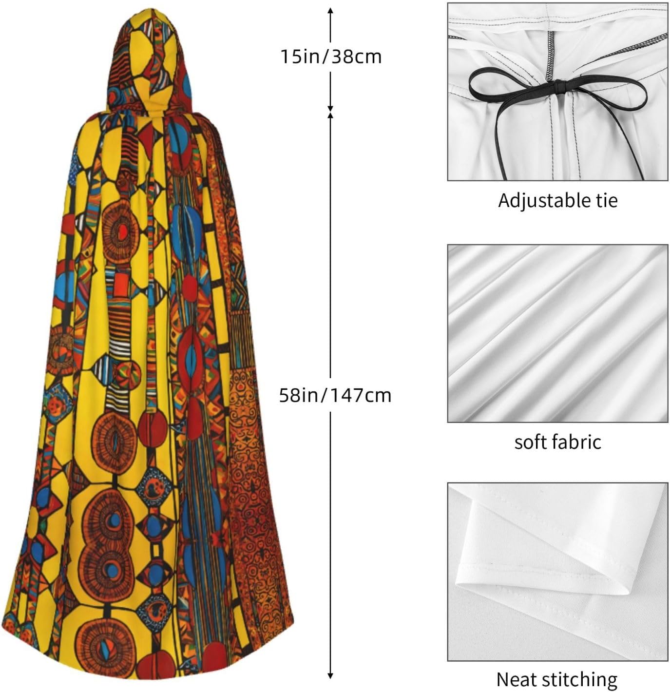 Ruba lo spettacolo a qualsiasi evento di Halloween o a tema con il nostro mantello con cappuccio. Realizzato con un tessuto confortevole, non pruriginoso, questo mantello con stampa con motivo nativo americano è progettato per assicurarti di distinguerti tra la folla. Il mantello è facile da indossare e togliere, grazie alla cravatta e all'assenza di una cerniera. Con un design facile da pulire, può essere lavato in lavatrice o a mano per garantire che sia sempre pronto per il tuo prossimo evento. Prova la perfetta miscela di comfort, stile e versatilità con il nostro mantello con cappuccio.
