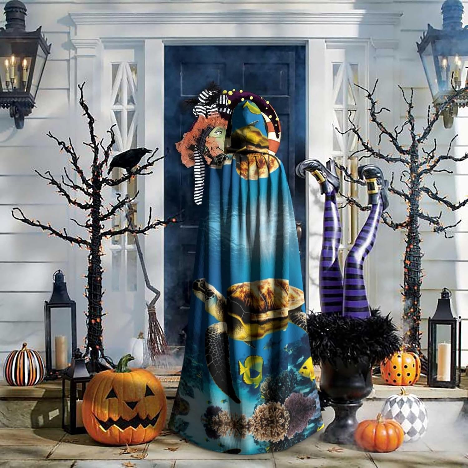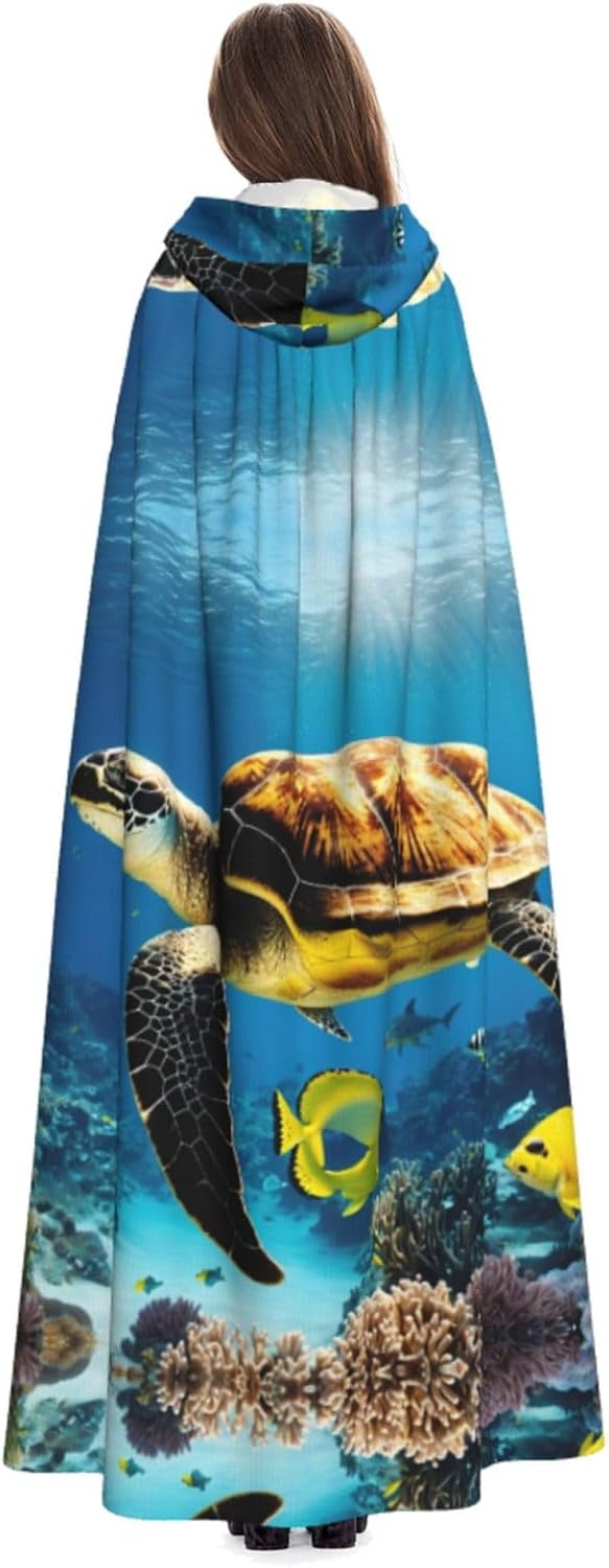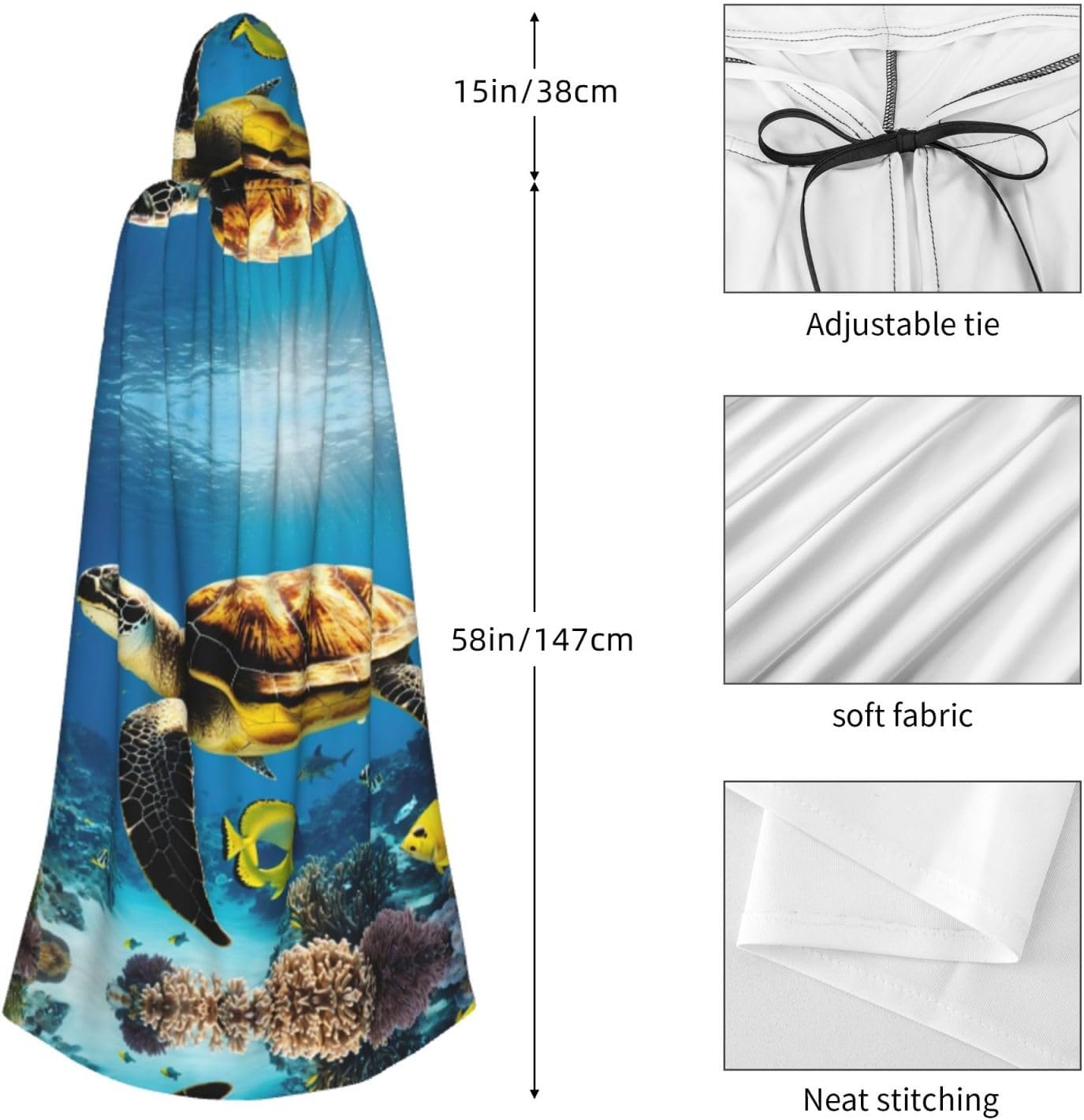 Ruba lo spettacolo a qualsiasi evento di Halloween o a tema con il nostro mantello con cappuccio. Realizzato con un tessuto confortevole, non pruriginoso, questo mantello con stampa tartarughe marine è progettato per assicurarti di distinguerti tra la folla. Il mantello è facile da indossare e togliere, grazie alla cravatta e all'assenza di una cerniera. Con un design facile da pulire, può essere lavato in lavatrice o a mano per garantire che sia sempre pronto per il tuo prossimo evento. Prova la perfetta miscela di comfort, stile e versatilità con il nostro mantello con cappuccio.