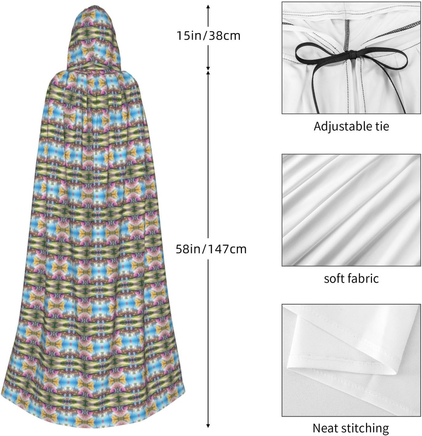 Materiale e design fiaba unicorno: il tessuto è realizzato in 100% fibra di poliestere (poliestere) tessuto di alta qualità, morbido e confortevole. Il design con cappuccio non è solo elegante e bello, ma fornisce anche calore extra alla testa e al collo. Caratteristiche del prodotto: il poncho oversize con cappuccio è un poncho con cappuccio senza lacci, senza cerniera, comodo realizzato in tessuto lungo, resistente e non prurito. Dimensioni del prodotto: il cappello misura 38,1 cm di altezza, 147,3 cm di lunghezza, 154 cm di larghezza. Adatto per occasioni: feste di Natale, feste di Halloween, feste in costume, celebrazioni pagane. Ideale per travestimenti, cosplay, costumi da scena, streghe, vampiri, royalty, scelta regalo perfetta per amici o familiari. Persone applicabili: adulti, unisex