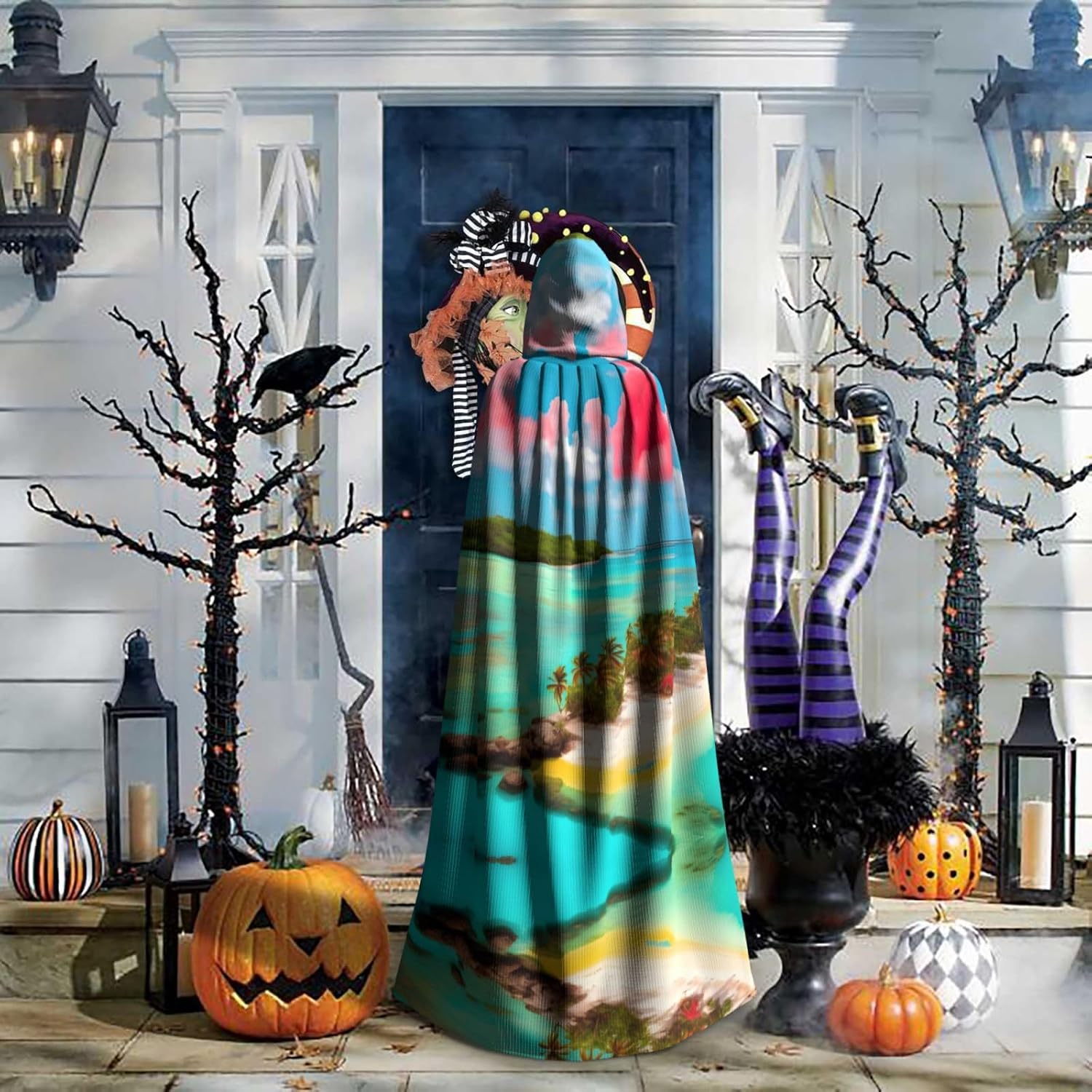 Materiale e design del paesaggio caraibico: il tessuto è realizzato in 100% fibra di poliestere (poliestere) tessuto di alta qualità, morbido e confortevole. Il design con cappuccio non è solo elegante e bello, ma fornisce anche calore extra alla testa e al collo. Caratteristiche del prodotto: il poncho oversize con cappuccio è un poncho con cappuccio senza lacci, senza cerniera, comodo realizzato in tessuto lungo, resistente e non prurito. Dimensioni del prodotto: il cappello misura 38,1 cm di altezza, 147,3 cm di lunghezza, 154 cm di larghezza. Adatto per occasioni: feste di Natale, feste di Halloween, feste in costume, celebrazioni pagane. Ideale per travestimenti, cosplay, costumi da scena, streghe, vampiri, royalty, scelta regalo perfetta per amici o familiari. Persone applicabili: adulti, unisex