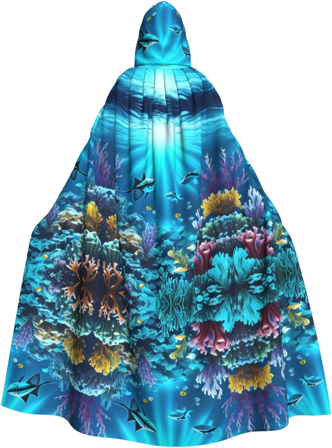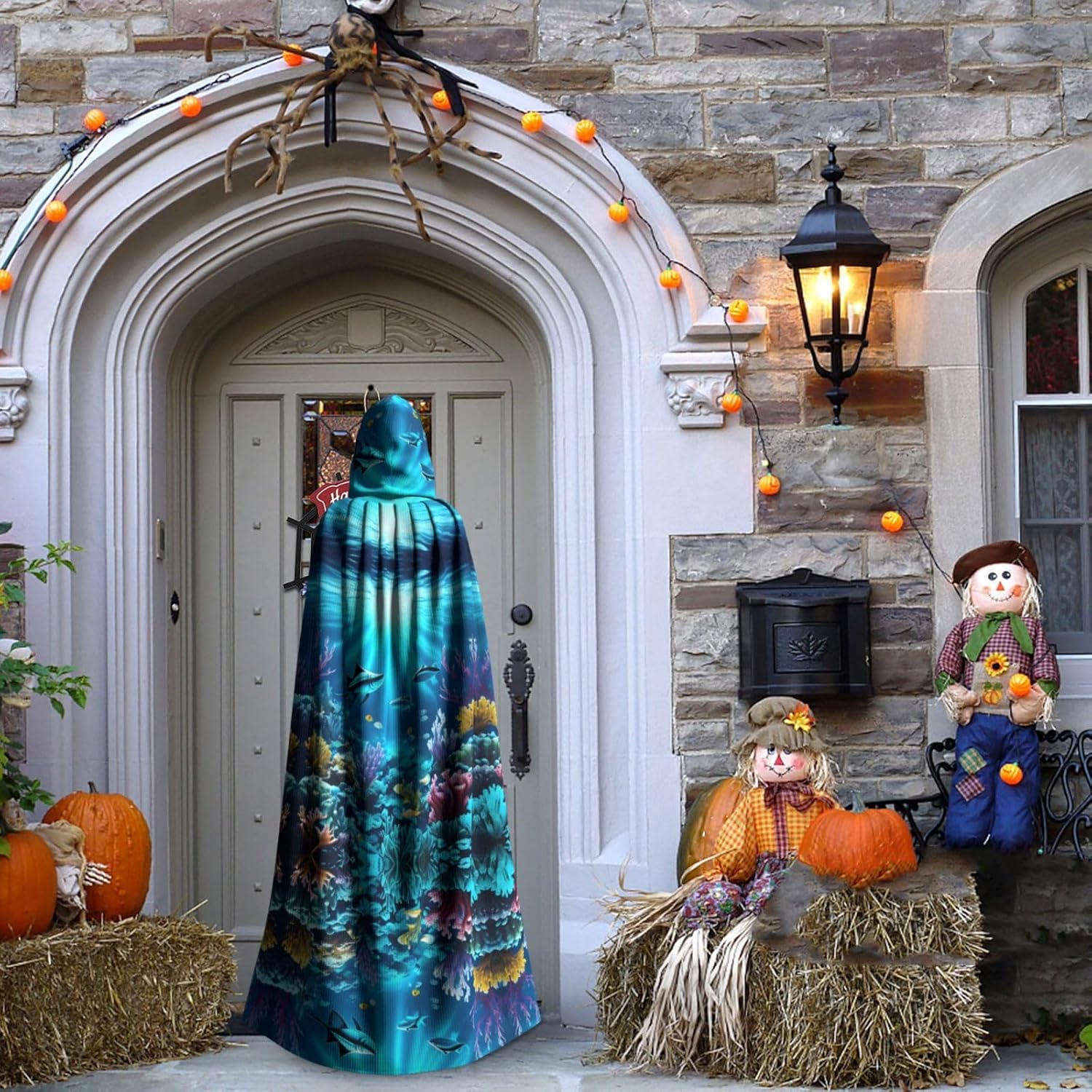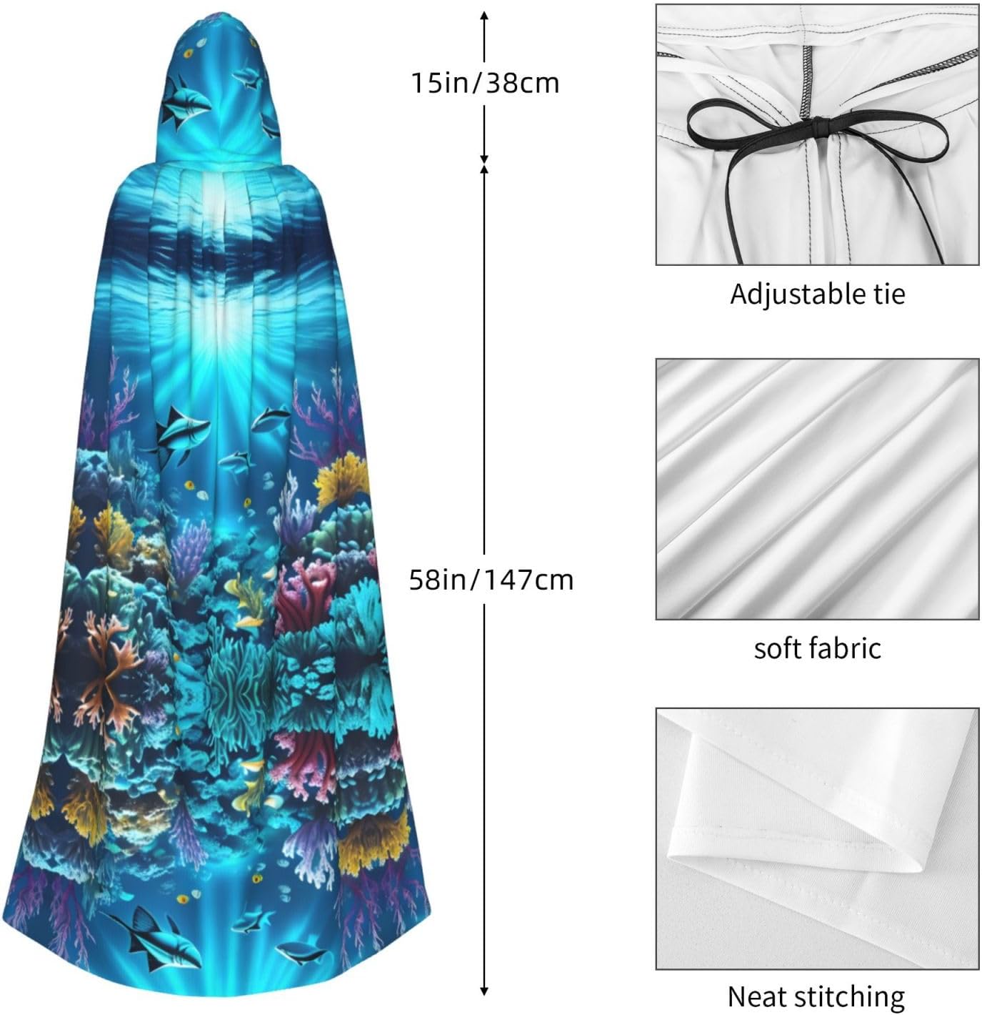 Materiale e design sottomarini a raggi di corallo: il tessuto è realizzato in 100% fibra di poliestere (poliestere) tessuto di alta qualità, morbido e confortevole. Il design con cappuccio non è solo elegante e bello, ma fornisce anche calore extra alla testa e al collo. \r Caratteristiche del prodotto: il poncho oversize con cappuccio è un poncho con cappuccio senza lacci, senza cerniera, comodo realizzato in tessuto lungo, resistente e non prurito. \r Dimensioni del prodotto: il cappello misura 38,1 cm di altezza, 147,3 cm di lunghezza, 154 cm di larghezza. \r Adatto per occasioni: feste di Natale, feste di Halloween, feste in costume, celebrazioni pagane. Ideale per travestimenti, cosplay, costumi da scena, streghe, vampiri, royalty, scelta regalo perfetta per amici o familiari. \r Persone applicabili: adulti, unisex.