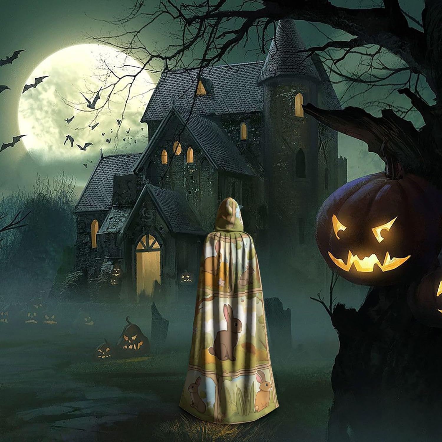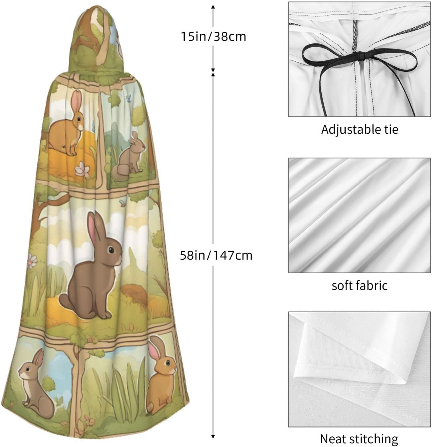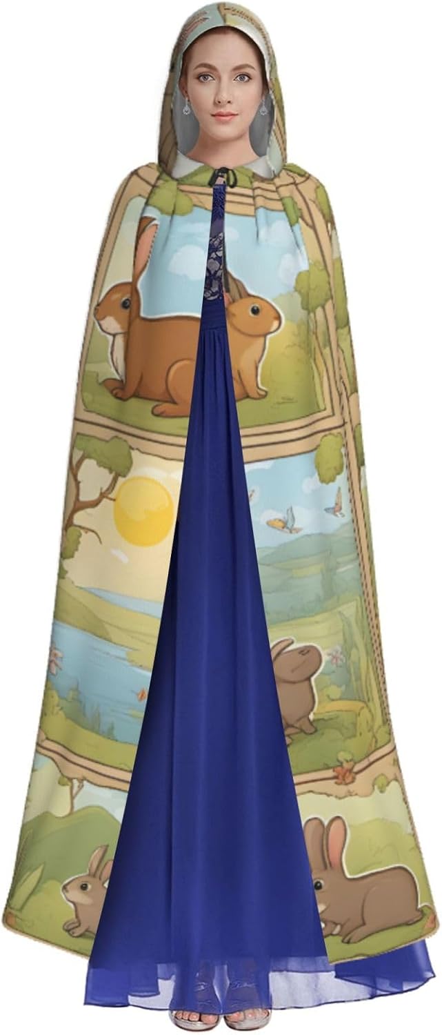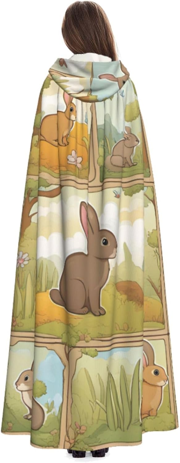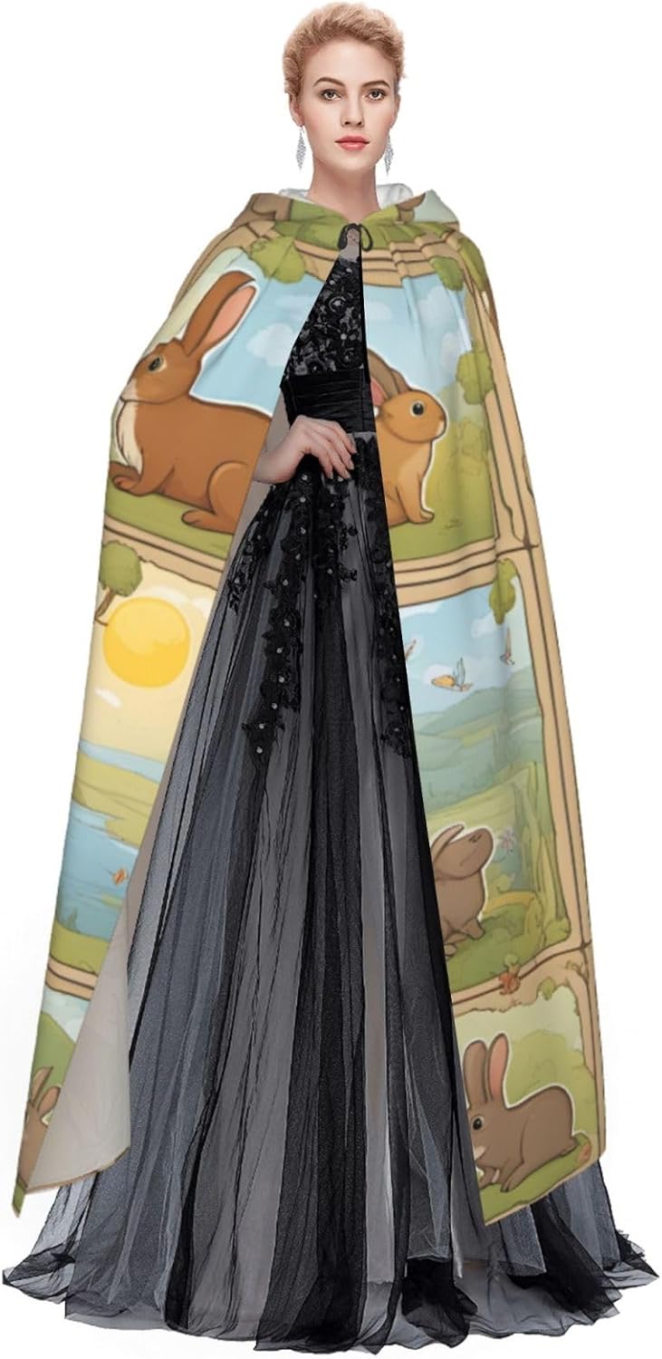 Il design senza cerniera, abbinato a un grande mantello con cappuccio e cravatta al collo, migliora il tuo mistero mantenendoti comodo con il suo tessuto non prurito. Con una lunghezza di 147 cm, una larghezza di 154 cm e un'altezza del cappuccio di 38 cm, il nostro mantello con cappuccio con stampa di simpatici animali cartoni animati offre una copertura completa, assicurandoti di distinguerti in ogni occasione. Vari eventi come Halloween, cosplay, costumi da palcoscenico, feste a tema, balli, convegni di fumetti e molto altro ancora, il nostro mantello è versatile e conveniente. Facile da mantenere e di lunga durata, il nostro mantello con cappuccio con stampa di coniglietti è lavabile in lavatrice e lavabile a mano. Con un design neutro, il nostro mantello è perfetto per uomini e donne.