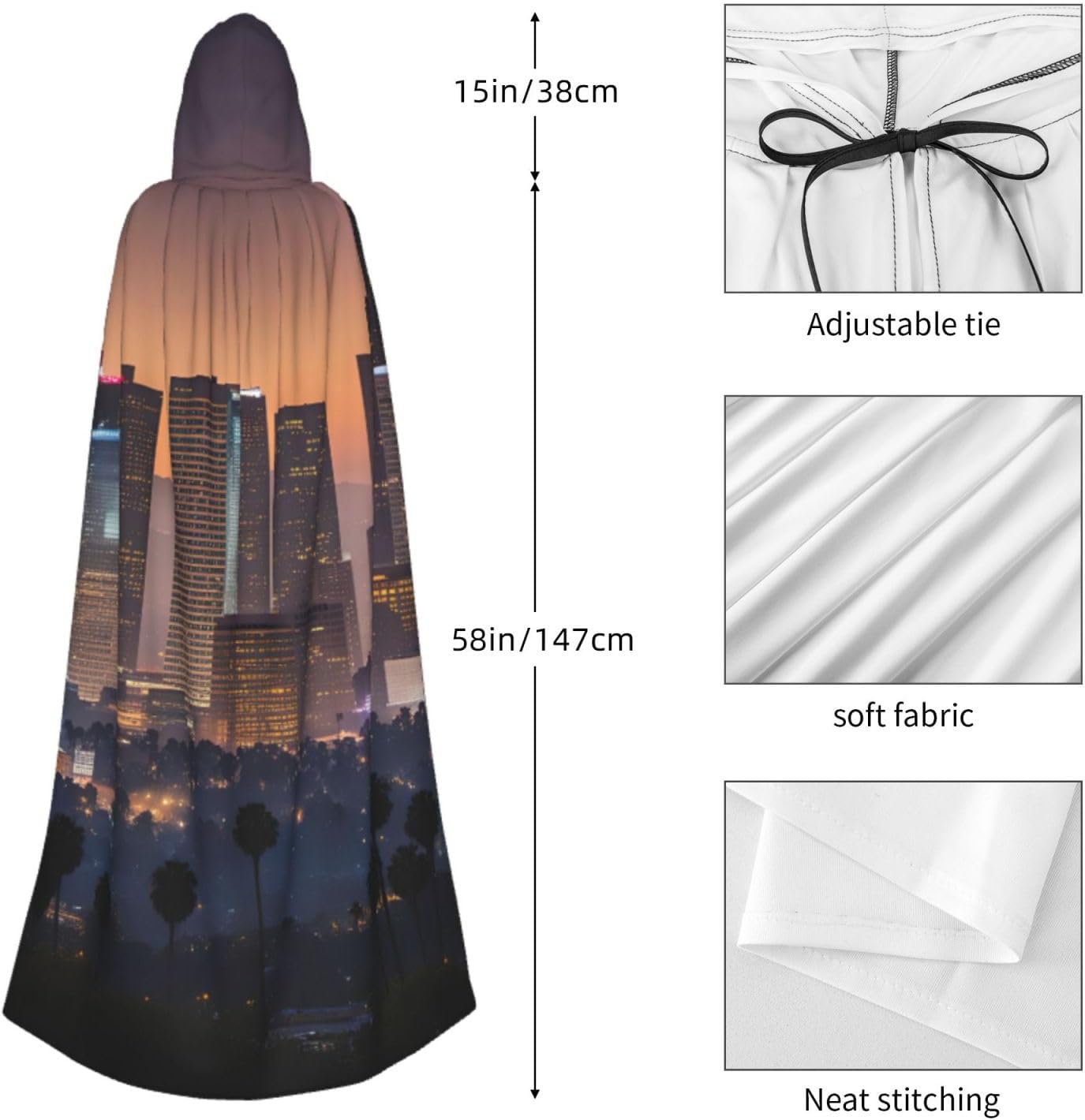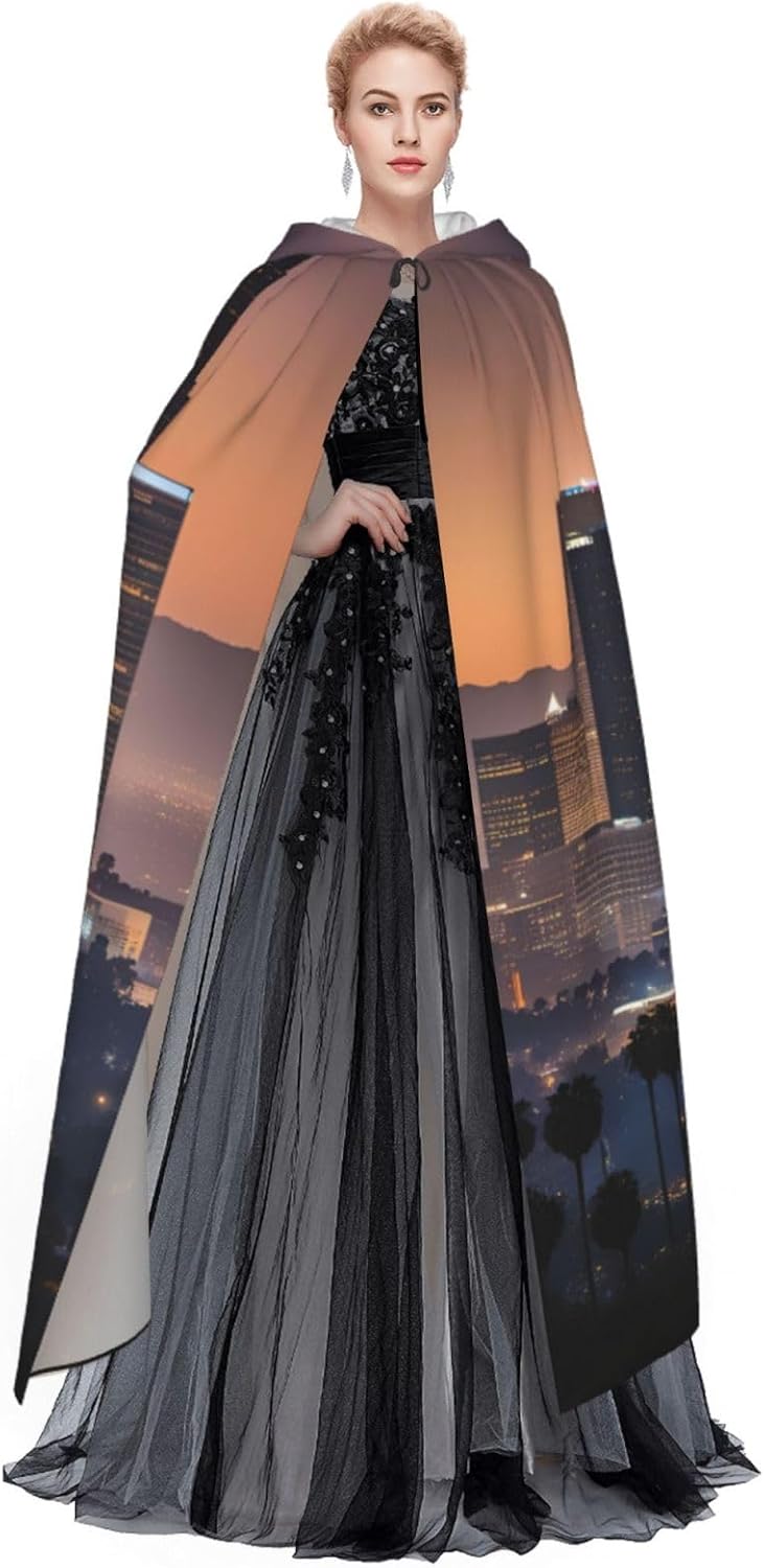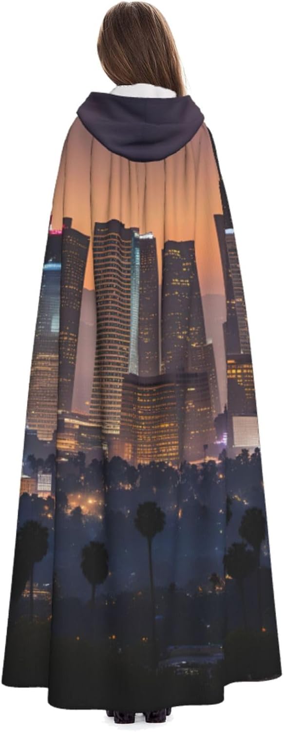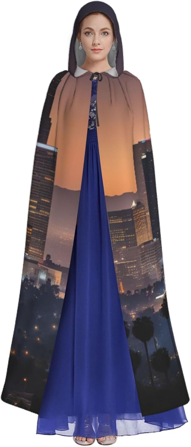 Il design senza cerniera, abbinato a un grande mantello con cappuccio e cravatta al collo, migliora il tuo mistero mantenendoti comodo con il suo tessuto non prurito. Con una lunghezza di 147 cm, larghezza di 154 cm e un'altezza del cappuccio di 38 cm, il nostro mantello con cappuccio con stampa Los Angeles Skyline offre una copertura completa, assicurandoti di distinguerti in ogni occasione. Vari eventi come Halloween, cosplay, costumi da palcoscenico, feste a tema, balli, convegni di fumetti e molto altro ancora, il nostro mantello è versatile e conveniente. Facile da mantenere e di lunga durata, il nostro mantello con cappuccio con stampa Skyline di Los Angeles è lavabile in lavatrice e lavabile a mano. Con un design neutro, il nostro mantello è perfetto per uomini e donne.