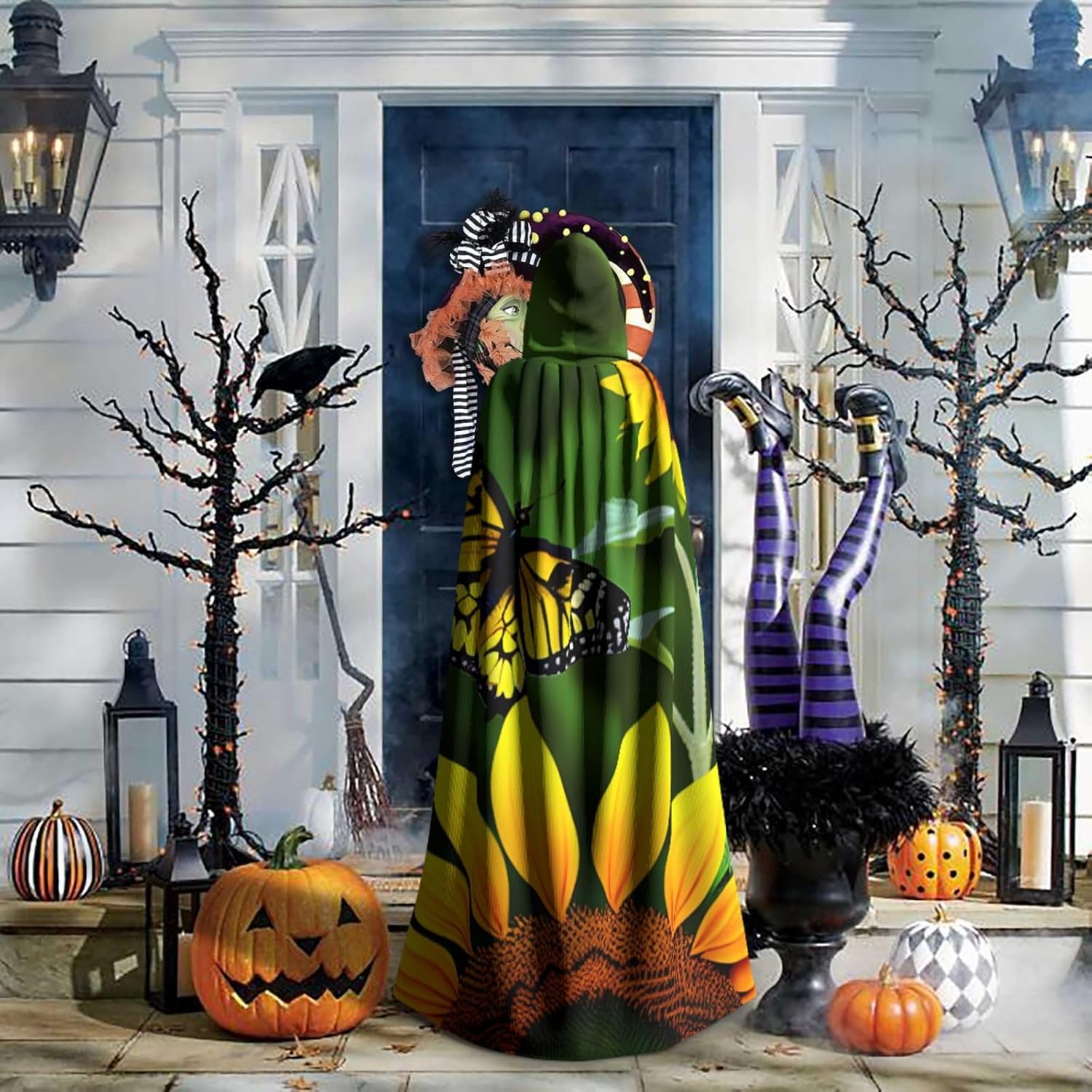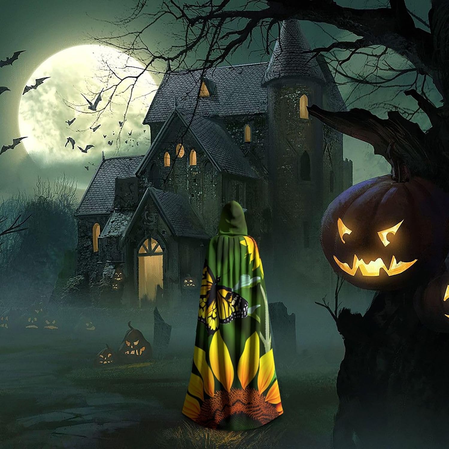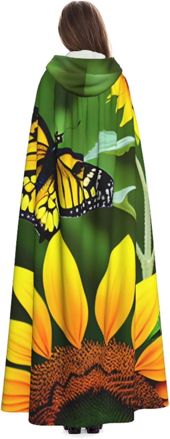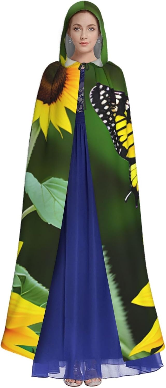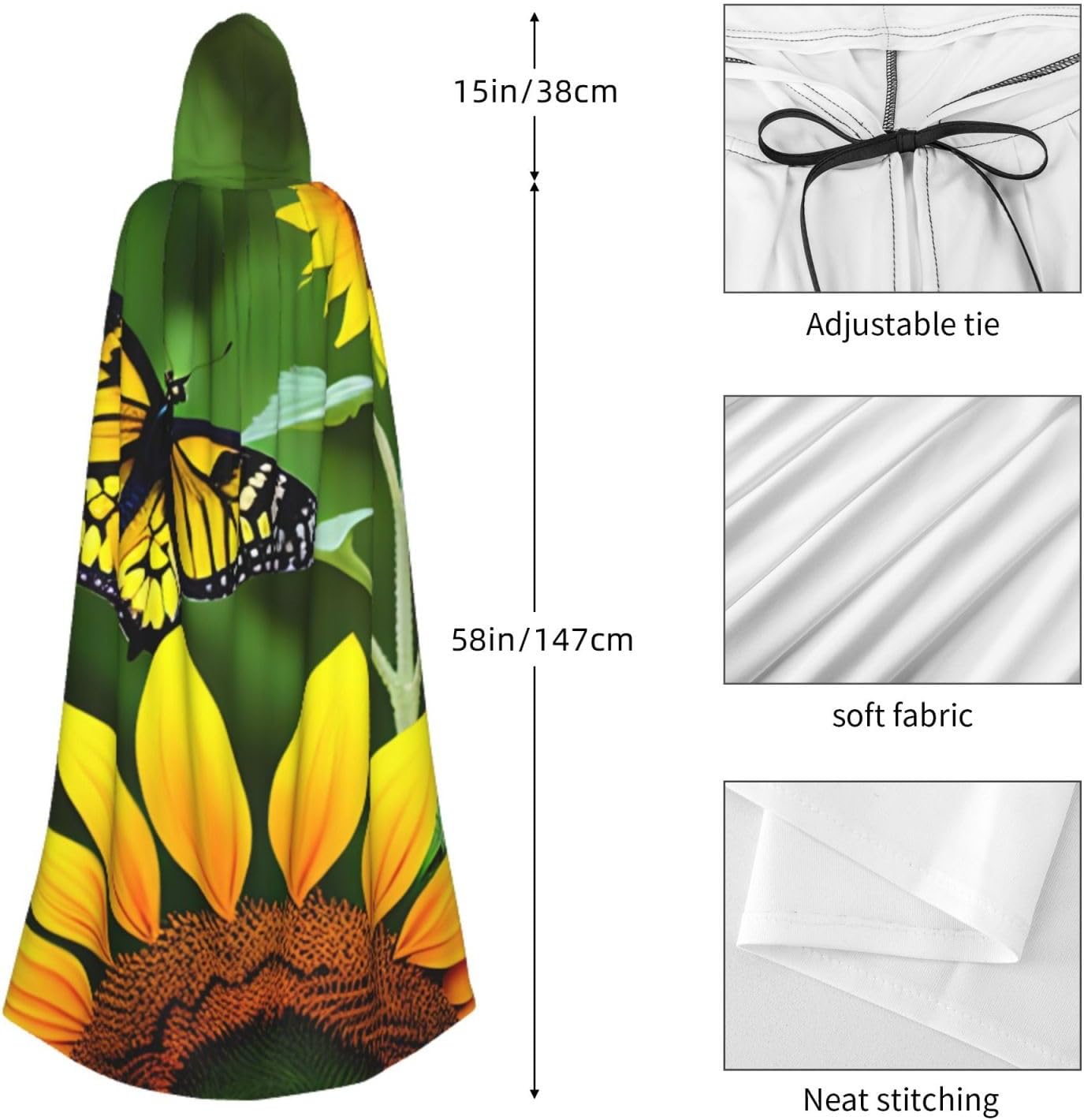 Il design senza cerniera, abbinato a un grande mantello con cappuccio e cravatta al collo, migliora il tuo mistero mantenendoti comodo con il suo tessuto non prurito. Con una lunghezza di 147 cm, una larghezza di 154 cm e un'altezza del cappuccio di 38 cm, il nostro mantello con cappuccio con stampa girasole e farfalla offre una copertura completa, assicurandoti di distinguerti in ogni occasione. Vari eventi come Halloween, cosplay, costumi da palcoscenico, feste a tema, balli, convegni di fumetti e molto altro ancora, il nostro mantello è versatile e conveniente. Facile da mantenere e di lunga durata, il nostro mantello con cappuccio con stampa girasole e farfalla è lavabile in lavatrice e lavabile a mano. Con un design neutro, il nostro mantello è perfetto per uomini e donne.