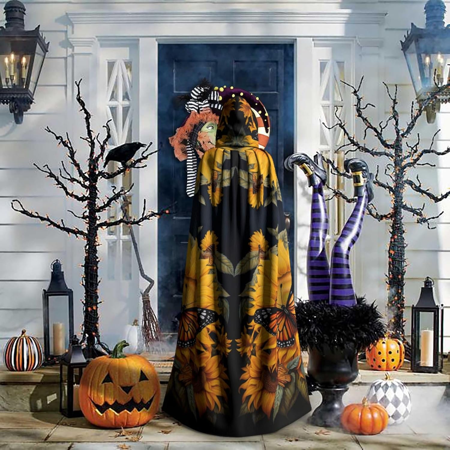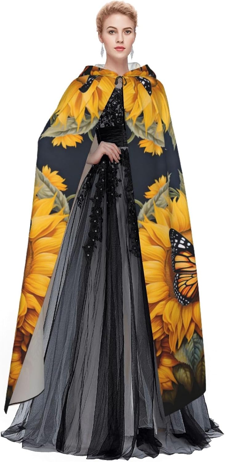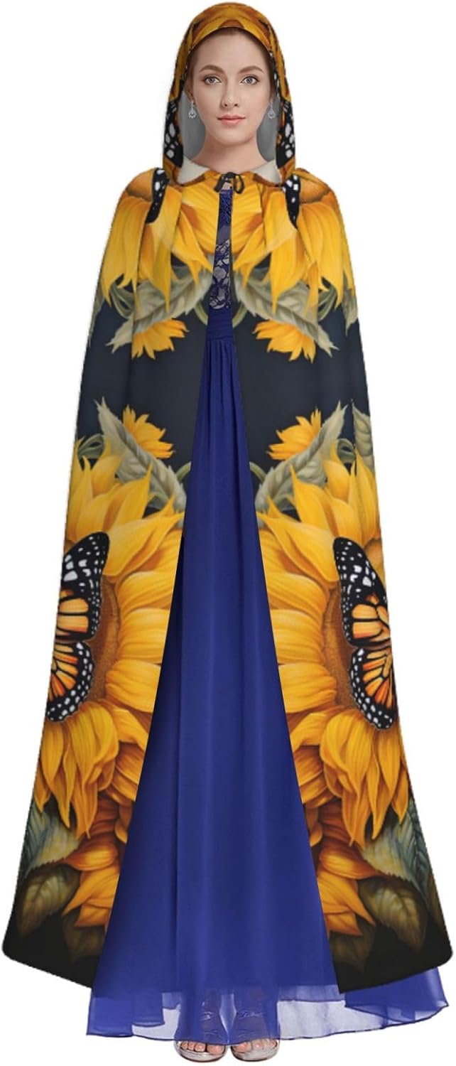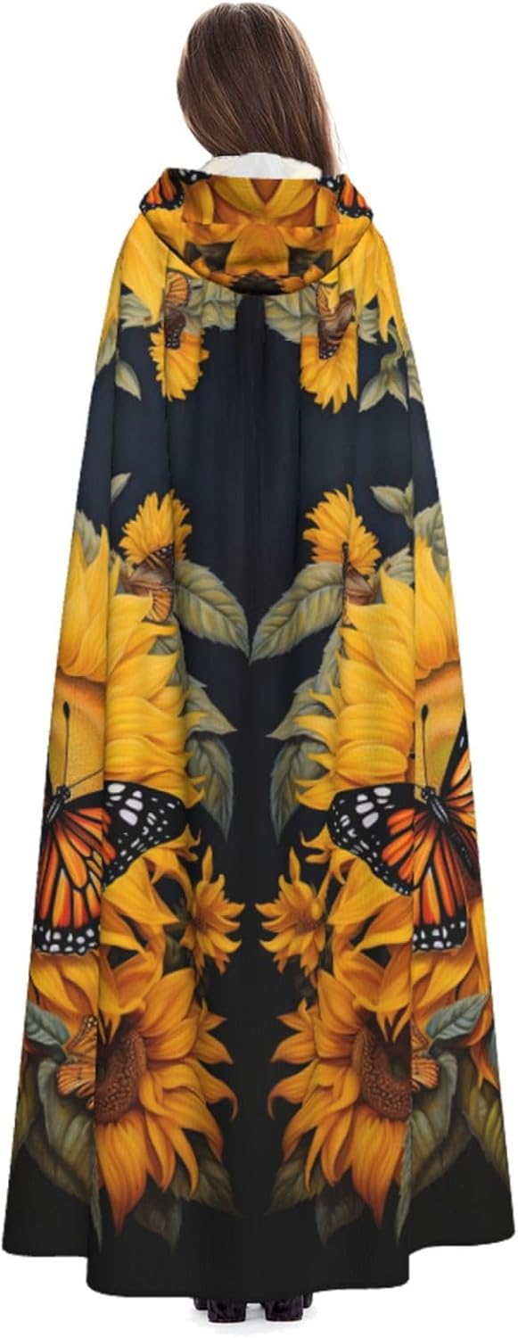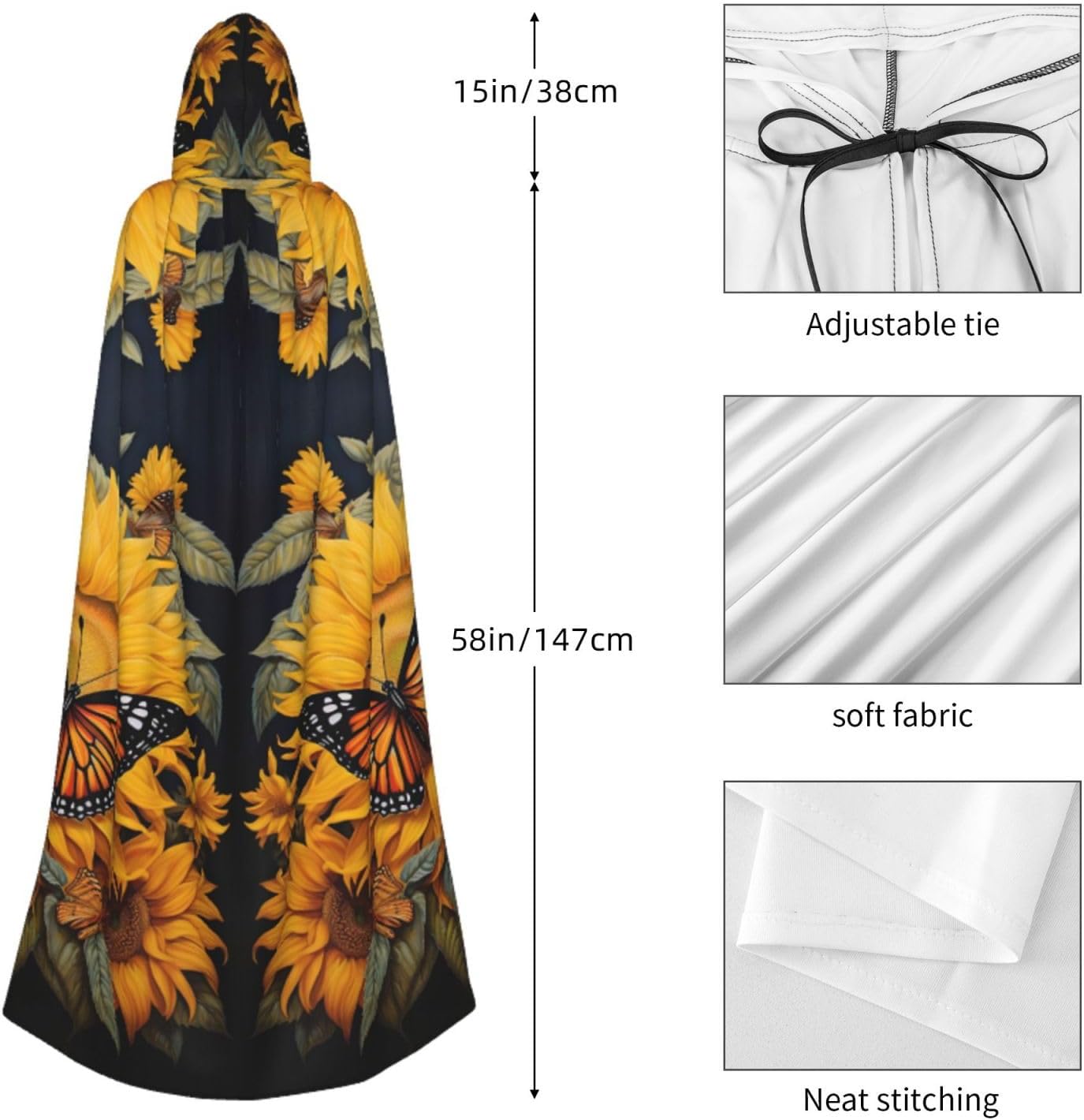 Il design senza cerniera, abbinato a un grande mantello con cappuccio e cravatta al collo, migliora il tuo mistero mantenendoti comodo con il suo tessuto non prurito. Con una lunghezza di 147 cm, una larghezza di 154 cm e un'altezza del cappuccio di 38 cm, il nostro mantello con cappuccio con stampa girasole e farfalla offre una copertura completa, assicurandoti di distinguerti in ogni occasione. Vari eventi come Halloween, cosplay, costumi da palcoscenico, feste a tema, balli, convegni di fumetti e molto altro ancora, il nostro mantello è versatile e conveniente. Facile da mantenere e di lunga durata, il nostro mantello con cappuccio con stampa girasole e farfalla è lavabile in lavatrice e lavabile a mano. Con un design neutro, il nostro mantello è perfetto per uomini e donne.