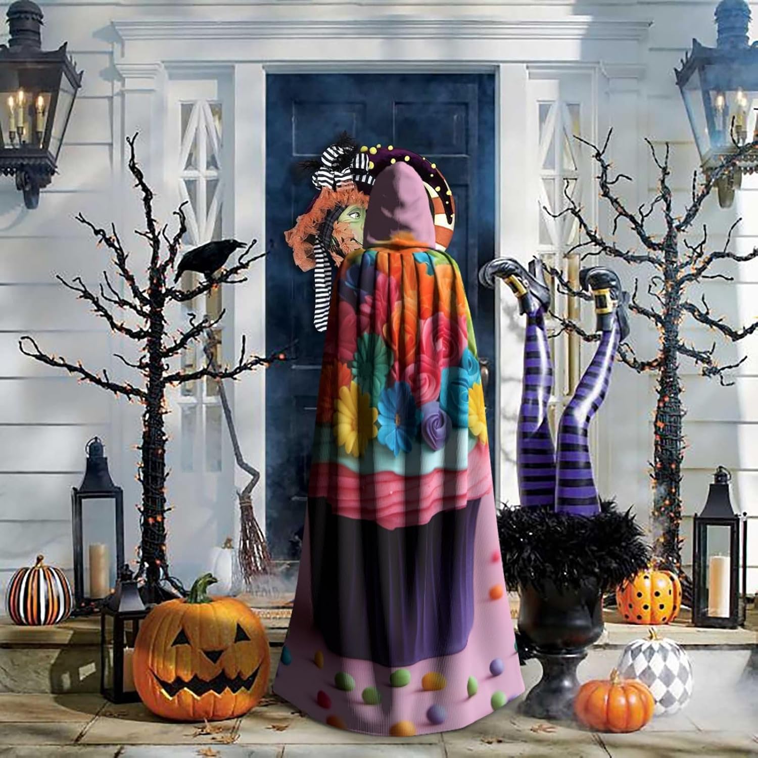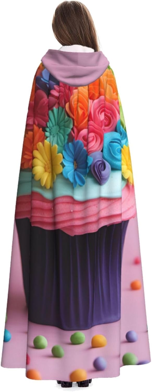 Il design senza cerniera, abbinato a un grande mantello con cappuccio e cravatta al collo, migliora il tuo mistero mantenendoti comodo con il suo tessuto non prurito. Con una lunghezza di 147 cm, una larghezza di 154 cm e un'altezza del cappuccio di 38 cm, il nostro mantello con cappuccio colorato con stampa a torta con fiori arcobaleno offre una copertura completa, assicurandoti di distinguerti in ogni occasione. Vari eventi come Halloween, cosplay, costumi da palcoscenico, feste a tema, balli, convegni di fumetti e molto altro ancora, il nostro mantello è versatile e conveniente. Facile da mantenere e di lunga durata, il nostro mantello con cappuccio colorato con stampa di cupcake arcobaleno e torta è lavabile in lavatrice e lavabile a mano. Con un design neutro, il nostro mantello è perfetto per uomini e donne.