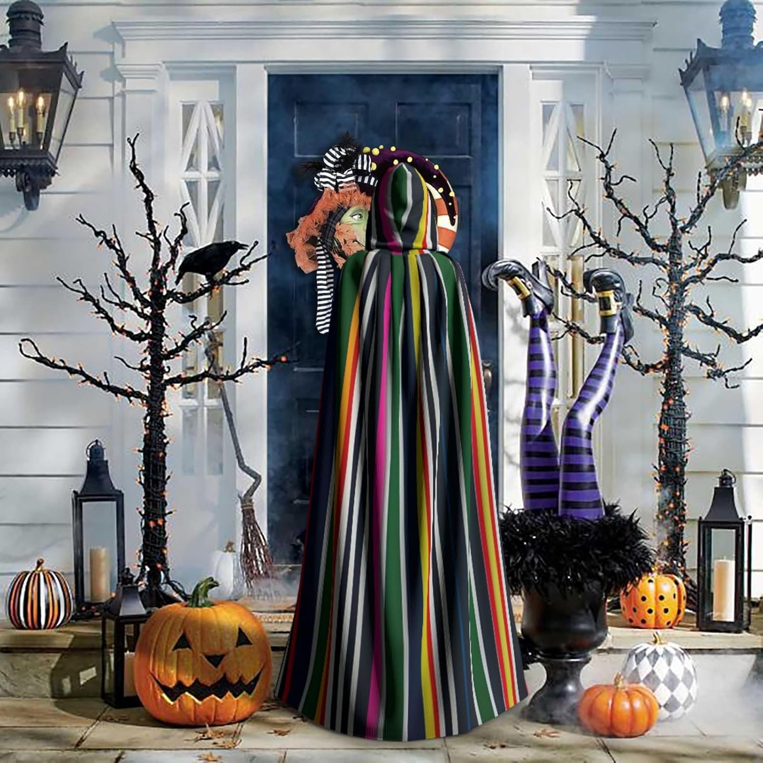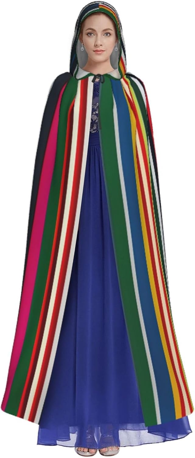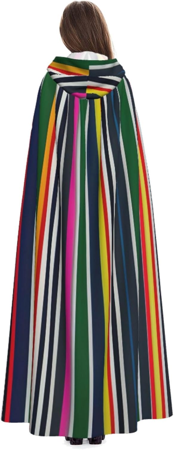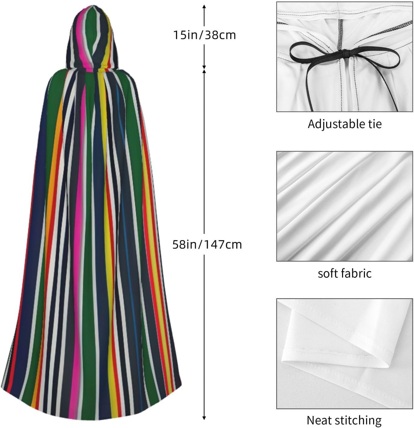 Il design senza cerniera, abbinato a un grande mantello con cappuccio e cravatta al collo, migliora il tuo mistero mantenendoti comodo con il suo tessuto non prurito. Con una lunghezza di 147 cm, larghezza di 154 cm e un'altezza del cappuccio di 38 cm, il nostro mantello con cappuccio con stampa a strisce colorate offre una copertura completa, assicurandoti di distinguerti in ogni occasione. Vari eventi come Halloween, cosplay, costumi da palcoscenico, feste a tema, balli, convegni di fumetti e molto altro ancora, il nostro mantello è versatile e conveniente. Facile da mantenere e di lunga durata, il nostro mantello con cappuccio con stampa a strisce colorate è lavabile in lavatrice e lavabile a mano. Con un design neutro, il nostro mantello è perfetto per uomini e donne.