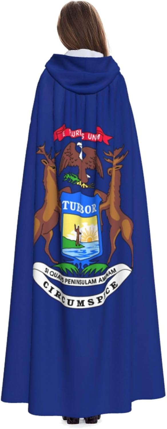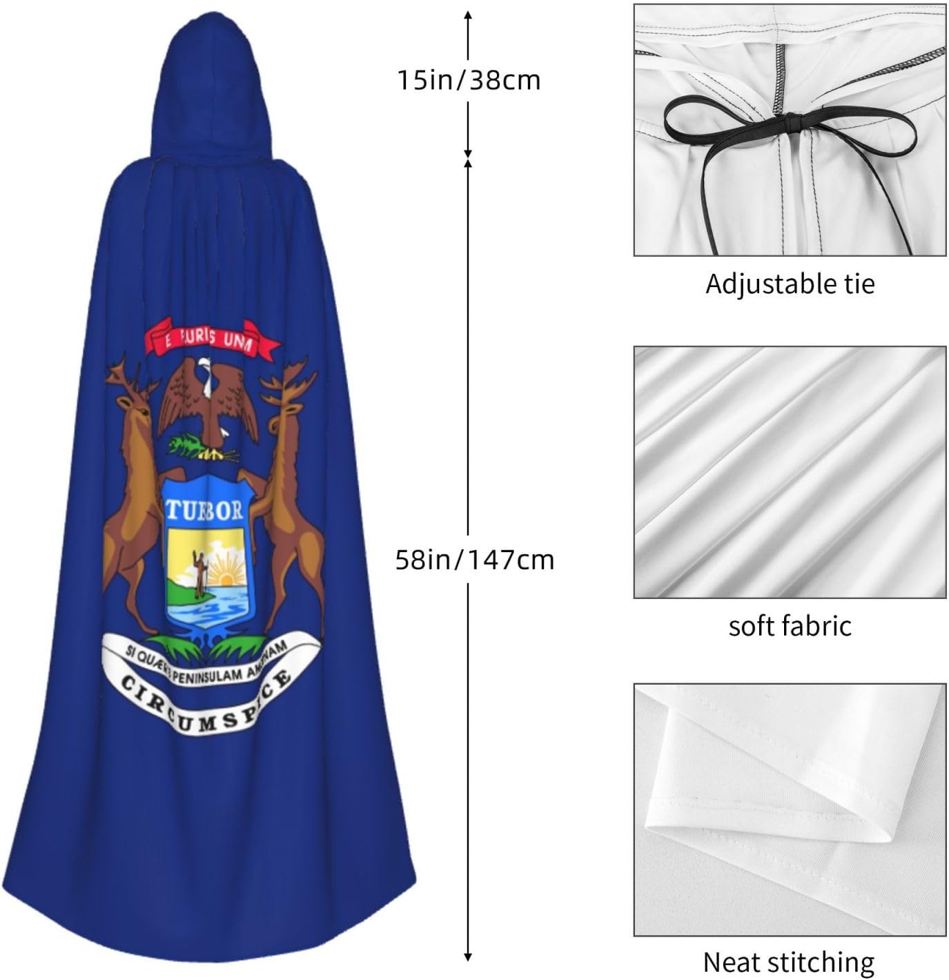 Il design senza cerniera, abbinato a un grande mantello con cappuccio e cravatta al collo, migliora il tuo mistero mantenendoti comodo con il suo tessuto non prurito. Con una lunghezza di 147 cm, larghezza di 154 cm e un'altezza del cappuccio di 38 cm, il nostro mantello con cappuccio con stampa bandiera del Michigan offre una copertura completa, assicurandoti di distinguerti in ogni occasione. Vari eventi come Halloween, cosplay, costumi da palcoscenico, feste a tema, balli, convegni di fumetti e molto altro ancora, il nostro mantello è versatile e conveniente. Facile da mantenere e di lunga durata, il nostro mantello con cappuccio con stampa bandiera dello stato del Michigan è lavabile in lavatrice e lavabile a mano. Con un design neutro, il nostro mantello è perfetto per uomini e donne.