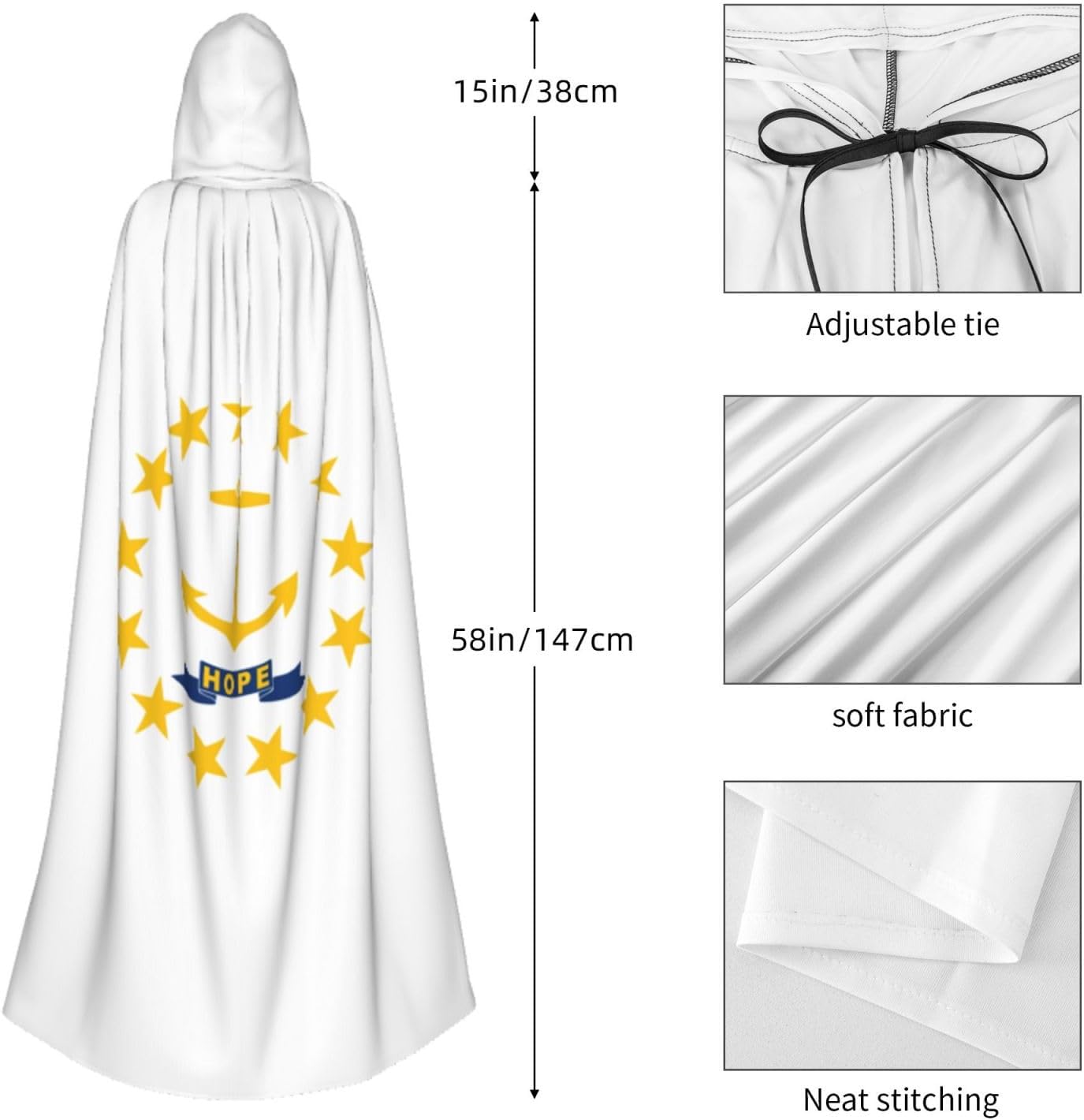 Il design senza cerniera, abbinato a un grande mantello con cappuccio e cravatta al collo, migliora il tuo mistero mantenendoti comodo con il suo tessuto non prurito. Con una lunghezza di 147 cm, larghezza di 154 cm e un'altezza del cappuccio di 38 cm, il nostro mantello con cappuccio con stampa bandiera del Rhode Island offre una copertura completa, assicurandoti di distinguerti in ogni occasione. Vari eventi come Halloween, cosplay, costumi da palcoscenico, feste a tema, balli, convegni di fumetti e molto altro ancora, il nostro mantello è versatile e conveniente. Facile da mantenere e di lunga durata, il nostro mantello con cappuccio con stampa bandiera dello stato del Rhode Island è lavabile in lavatrice e lavabile a mano. Con un design neutro, il nostro mantello è perfetto per uomini e donne.