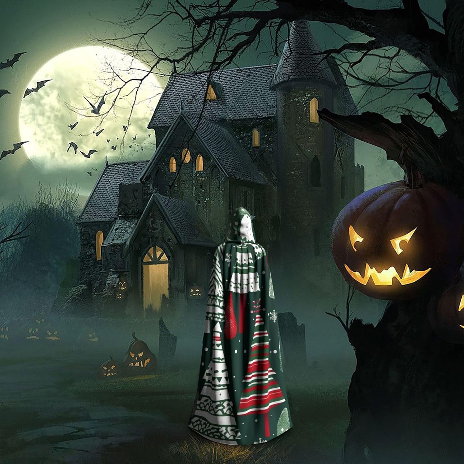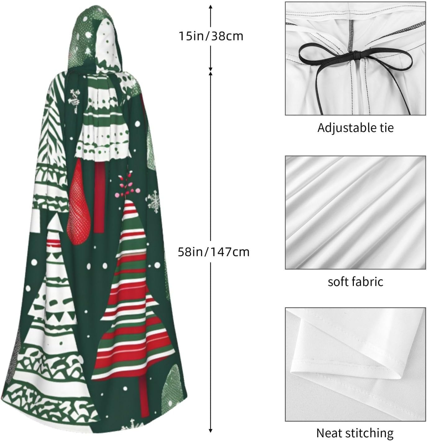 Il design senza cerniera, abbinato a un grande mantello con cappuccio e cravatta al collo, migliora il tuo mistero mantenendoti comodo con il suo tessuto non prurito. Con una lunghezza di 147 cm, larghezza di 154 cm e un'altezza del cappuccio di 38 cm, il nostro mantello con cappuccio con stampa di alberi di Natale offre una copertura completa, assicurandoti di distinguerti in ogni occasione. Vari eventi come Halloween, cosplay, costumi da palcoscenico, feste a tema, balli, convegni di fumetti e molto altro ancora, il nostro mantello è versatile e conveniente. Facile da mantenere e di lunga durata, il nostro mantello con cappuccio con stampa alberi di Natale è lavabile in lavatrice e lavabile a mano. Con un design neutro, il nostro mantello è perfetto per uomini e donne.