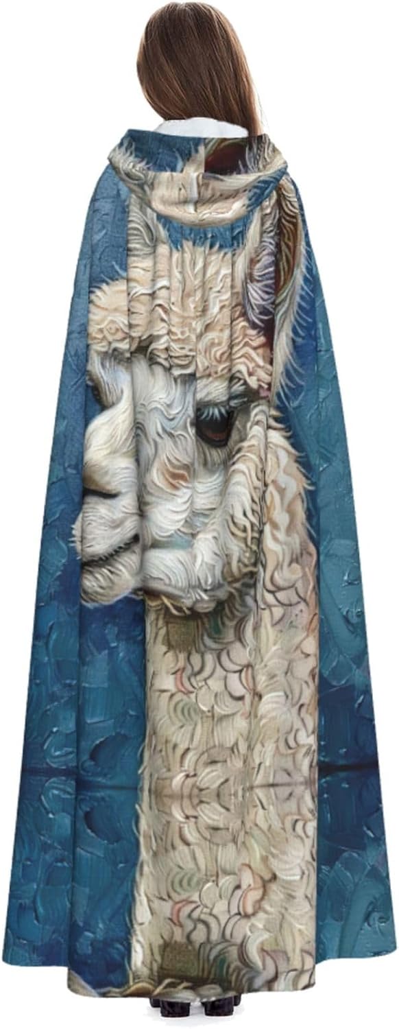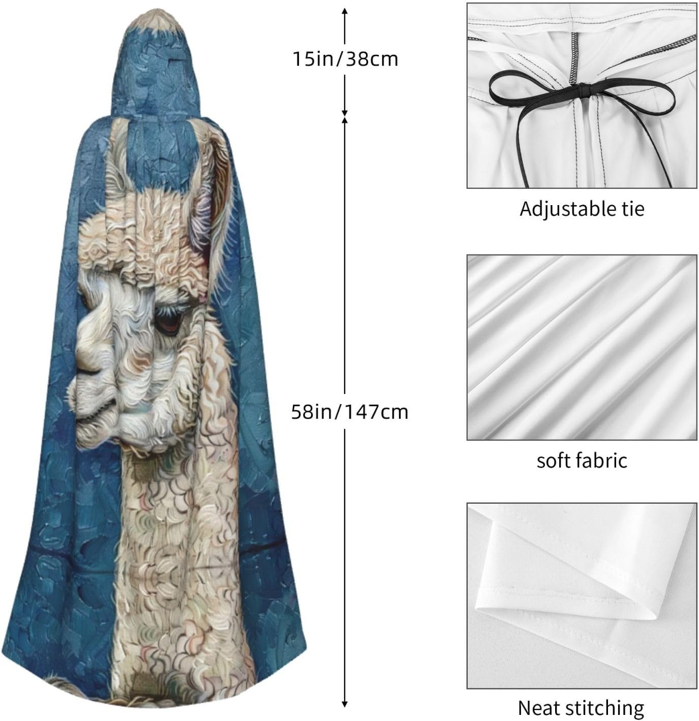 Il design senza cerniera, abbinato a un grande mantello con cappuccio e cravatta al collo, migliora il tuo mistero mantenendoti comodo con il suo tessuto non prurito. Con una lunghezza di 147 cm, una larghezza di 154 cm e un'altezza del cappuccio di 38 cm, il nostro mantello con cappuccio con stampa alpaca offre una copertura completa, assicurandoti di distinguerti in ogni occasione. Vari eventi come Halloween, cosplay, costumi da palcoscenico, feste a tema, balli, convegni di fumetti e molto altro ancora, il nostro mantello è versatile e conveniente. Facile da mantenere e di lunga durata, il nostro mantello con cappuccio con stampa alpaca è lavabile in lavatrice e lavabile a mano. Con un design neutro, il nostro mantello è perfetto per uomini e donne.