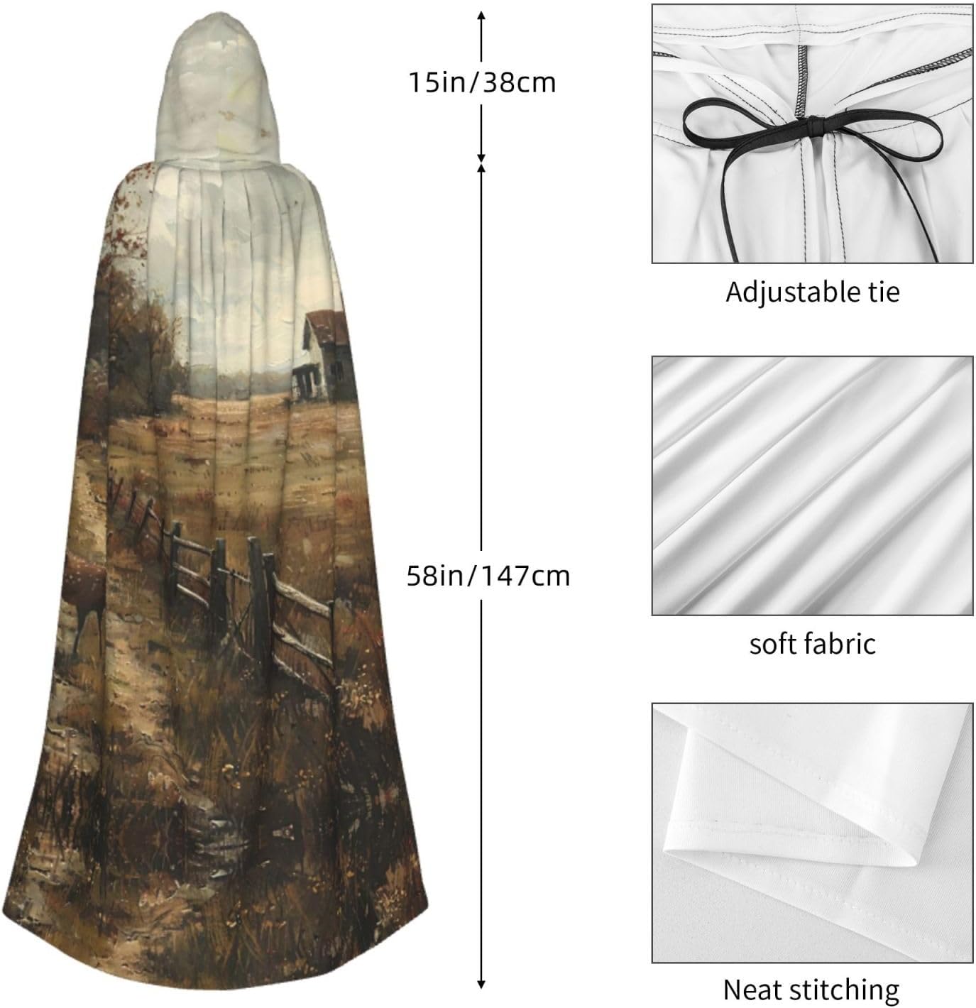 Il design senza cerniera, abbinato a un grande mantello con cappuccio e cravatta al collo, migliora il tuo mistero mantenendoti comodo con il suo tessuto non prurito. Con una lunghezza di 147 cm, larghezza di 154 cm e un'altezza del cappuccio di 38 cm, il nostro mantello con cappuccio con stampa di cervi offre una copertura completa, assicurandoti di distinguerti in ogni occasione. Vari eventi come Halloween, cosplay, costumi da palcoscenico, feste a tema, balli, convegni di fumetti e molto altro ancora, il nostro mantello è versatile e conveniente. Facile da mantenere e di lunga durata, il nostro mantello con cappuccio con stampa di cervi è lavabile in lavatrice e lavabile a mano. Con un design neutro, il nostro mantello è perfetto per uomini e donne.