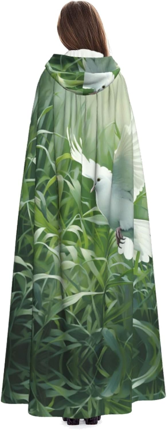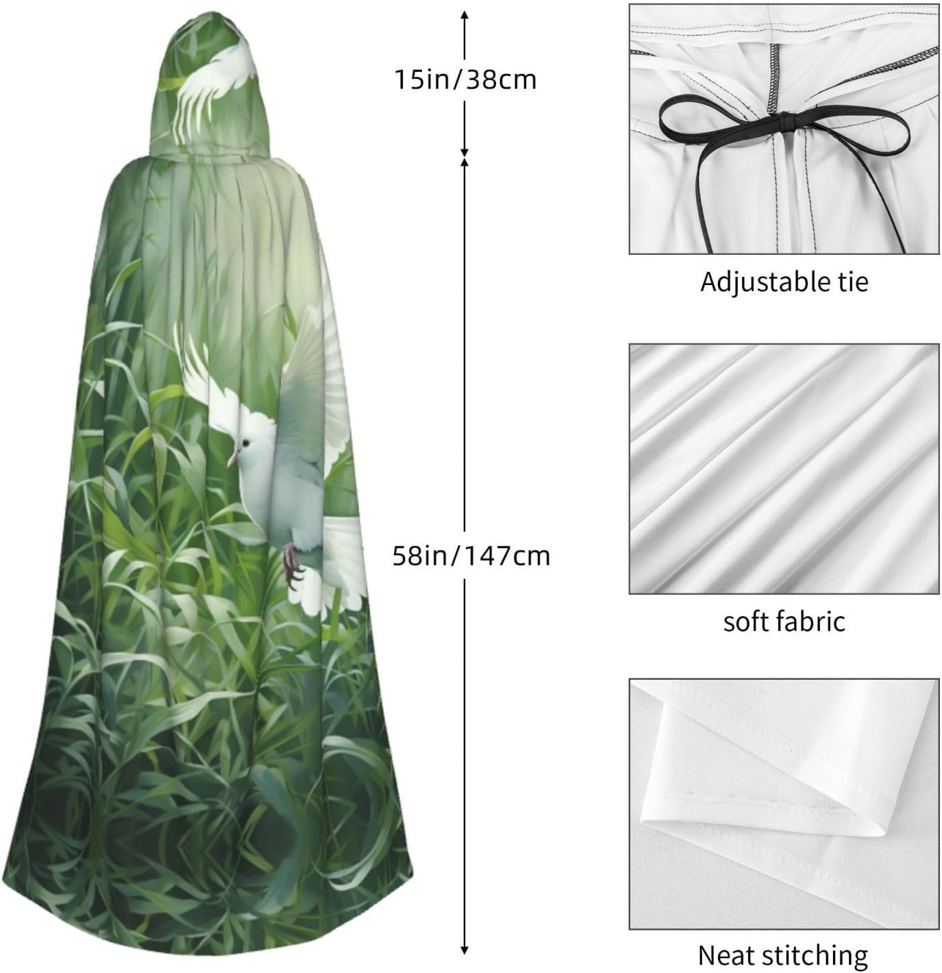Il design senza cerniera, abbinato a un grande mantello con cappuccio e cravatta al collo, migliora il tuo mistero mantenendoti comodo con il suo tessuto non prurito. Con una lunghezza di 147 cm, larghezza di 154 cm e un'altezza del cappuccio di 38 cm, il nostro mantello con cappuccio con stampa erba e colomba offre una copertura completa, assicurandoti di distinguerti in ogni occasione. Vari eventi come Halloween, cosplay, costumi da palcoscenico, feste a tema, balli, convegni di fumetti e molto altro ancora, il nostro mantello è versatile e conveniente. Facile da mantenere e di lunga durata, il nostro mantello con cappuccio con stampa erba e colomba è lavabile in lavatrice e lavabile a mano. Con un design neutro, il nostro mantello è perfetto per uomini e donne.