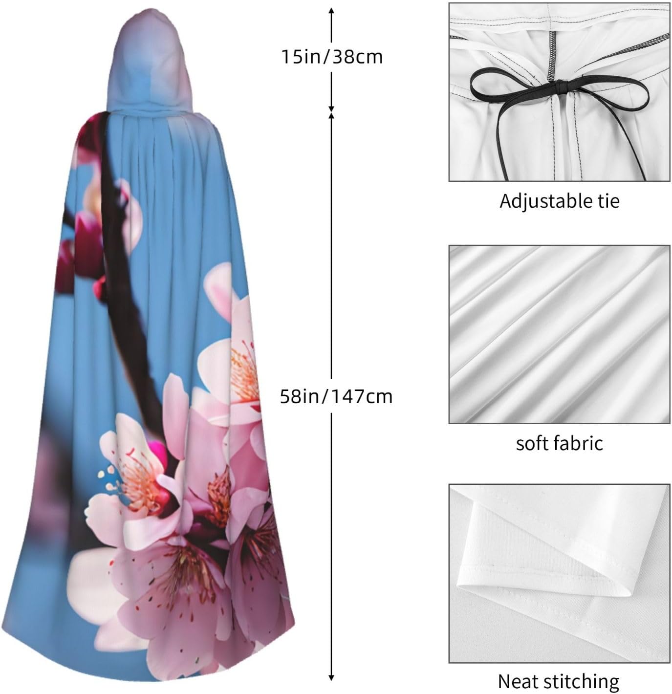 Il design senza cerniera, abbinato a un grande mantello con cappuccio e cravatta al collo, migliora il tuo mistero mantenendoti comodo con il suo tessuto non prurito. Con una lunghezza di 147 cm, larghezza di 154 cm e un'altezza del cappuccio di 38 cm, il nostro mantello con cappuccio con stampa di fiori di prugna offre una copertura completa, assicurandoti di distinguerti in ogni occasione. Vari eventi come Halloween, cosplay, costumi da palcoscenico, feste a tema, balli, convegni di fumetti e molto altro ancora, il nostro mantello è versatile e conveniente. Facile da mantenere e di lunga durata, il nostro mantello con cappuccio con stampa fiori di prugna è lavabile in lavatrice e lavabile a mano. Con un design neutro, il nostro mantello è perfetto per uomini e donne.