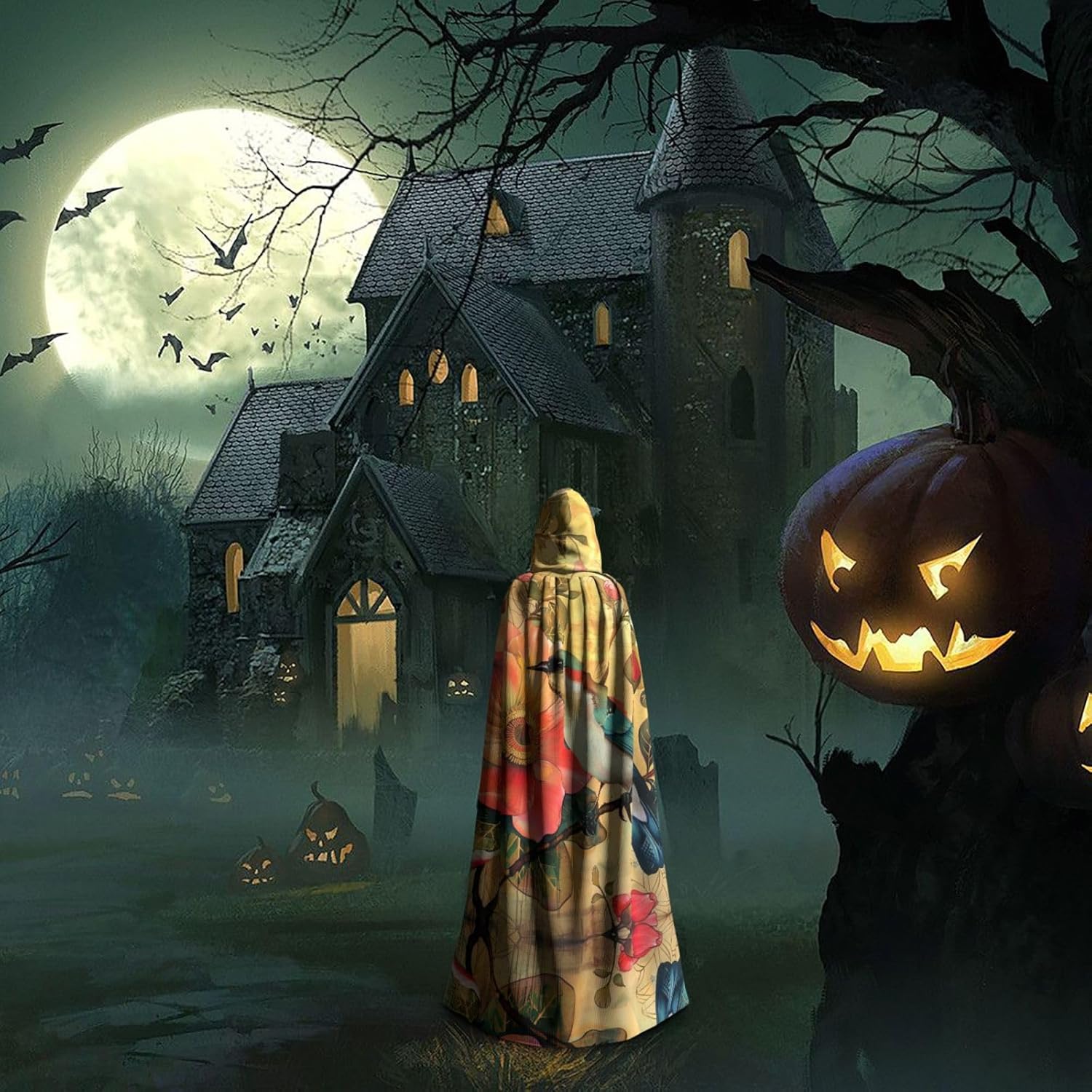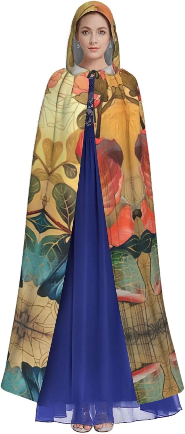 Il design senza cerniera, abbinato a un grande mantello con cappuccio e cravatta al collo, migliora il tuo mistero mantenendoti comodo con il suo tessuto non prurito. Con una lunghezza di 147 cm, larghezza di 154 cm e un'altezza del cappuccio di 38 cm, il nostro mantello con cappuccio con stampa di fiori e uccelli offre una copertura completa, assicurandoti di distinguerti in ogni occasione. Vari eventi come Halloween, cosplay, costumi da palcoscenico, feste a tema, balli, convegni di fumetti e molto altro ancora, il nostro mantello è versatile e conveniente. Facile da mantenere e di lunga durata, il nostro mantello con cappuccio con stampa di fiori e uccelli è lavabile in lavatrice e lavabile a mano. Con un design neutro, il nostro mantello è perfetto per uomini e donne.