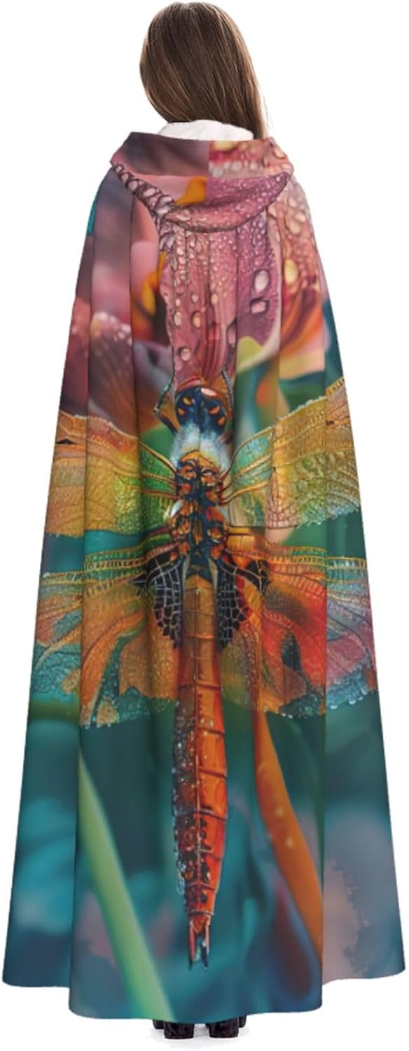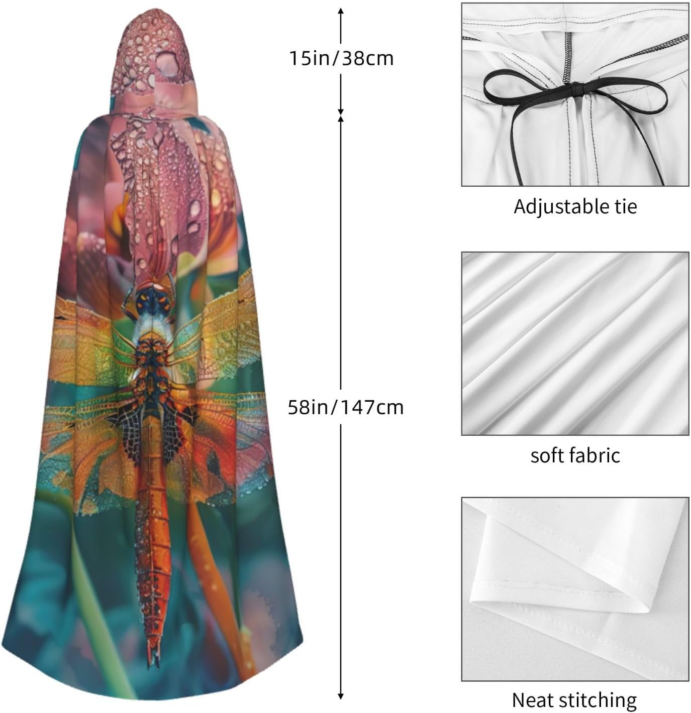 Il design senza cerniera, abbinato a un grande mantello con cappuccio e cravatta al collo, migliora il tuo mistero mantenendoti comodo con il suo tessuto non prurito. Con una lunghezza di 147 cm, larghezza di 154 cm e un'altezza del cappuccio di 38 cm, il nostro mantello con cappuccio con stampa libellula e fiore offre una copertura completa, assicurandoti di distinguerti in ogni occasione. Vari eventi come Halloween, cosplay, costumi da palcoscenico, feste a tema, balli, convegni di fumetti e molto altro ancora, il nostro mantello è versatile e conveniente. Facile da mantenere e di lunga durata, il nostro mantello con cappuccio con stampa libellula e fiore è lavabile in lavatrice e lavabile a mano. Con un design neutro, il nostro mantello è perfetto per uomini e donne.