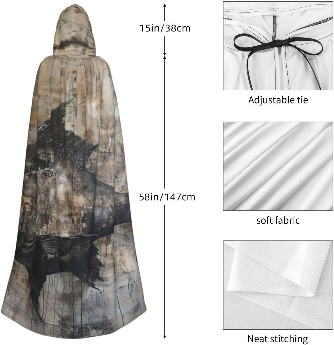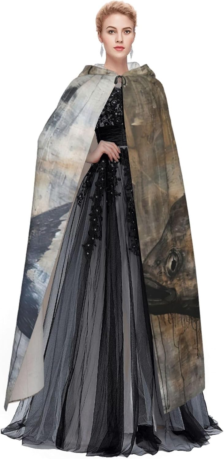 Il design senza cerniera, abbinato a un grande mantello con cappuccio e cravatta al collo, migliora il tuo mistero mantenendoti comodo con il suo tessuto non prurito. Con una lunghezza di 147 cm, larghezza di 154 cm e un'altezza del cappuccio di 38 cm, il nostro mantello con cappuccio con stampa di pesci offre una copertura completa, assicurandoti di distinguerti in ogni occasione. Vari eventi come Halloween, cosplay, costumi da palcoscenico, feste a tema, balli, convegni di fumetti e molto altro ancora, il nostro mantello è versatile e conveniente. Facile da mantenere e di lunga durata, il nostro mantello con cappuccio con stampa di pesci è lavabile in lavatrice e lavabile a mano. Con un design neutro, il nostro mantello è perfetto per uomini e donne.