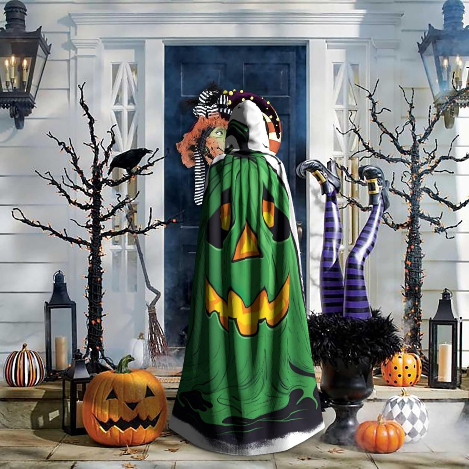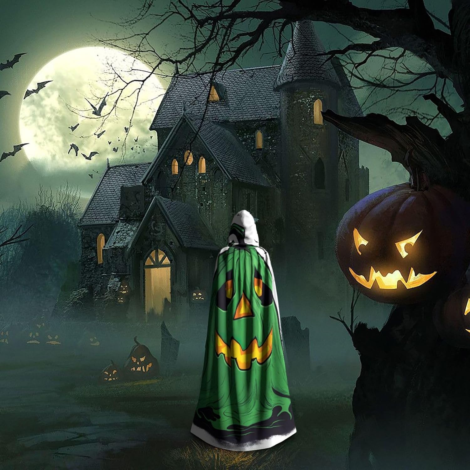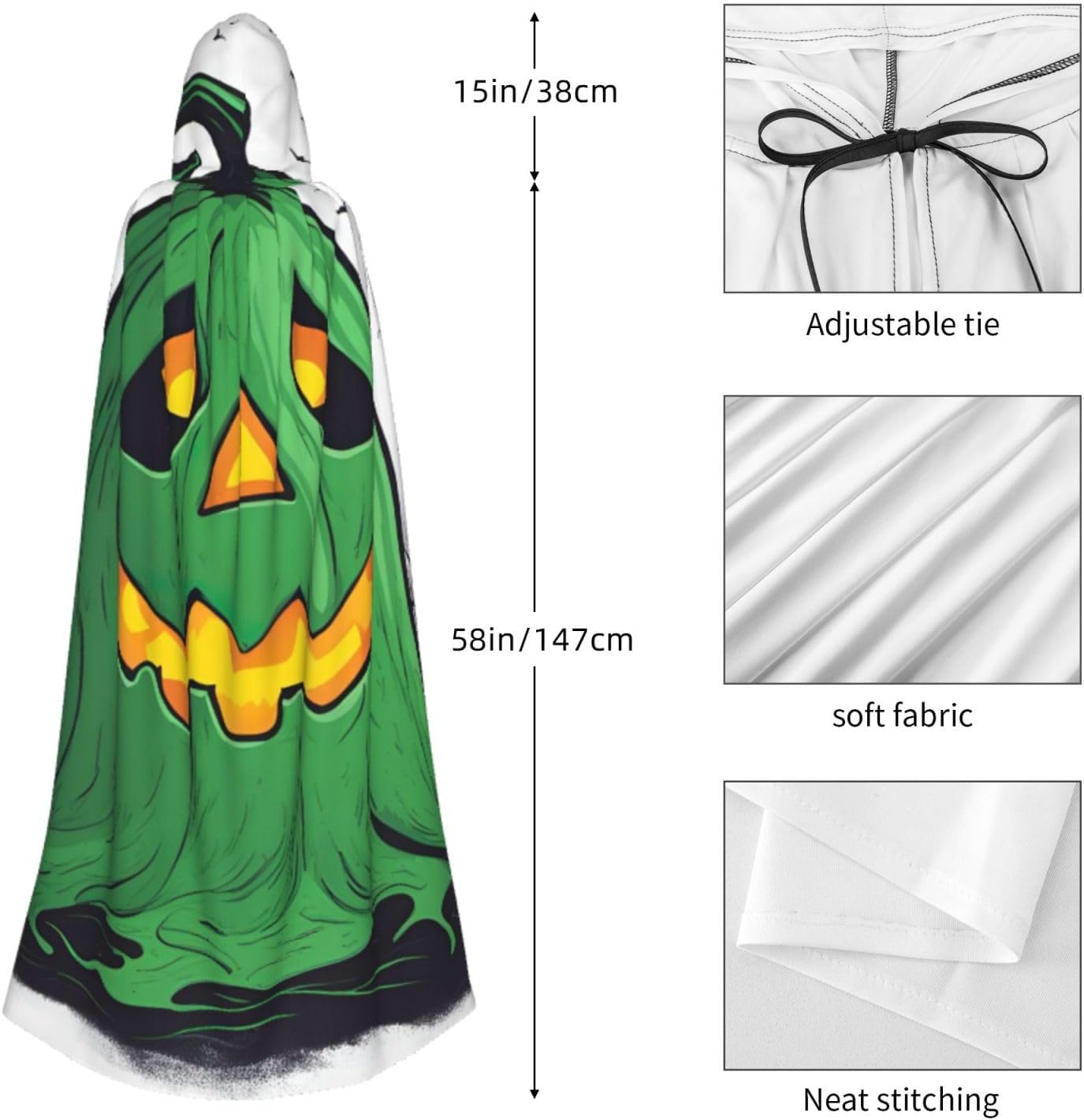 Il design senza cerniera, abbinato a un grande mantello con cappuccio e cravatta al collo, migliora il tuo mistero mantenendoti comodo con il suo tessuto non prurito. Con una lunghezza di 147 cm, una larghezza di 154 cm e un'altezza del cappuccio di 38 cm, il nostro mantello con cappuccio con stampa di zucca di Halloween fantasma verde offre una copertura completa, assicurandoti di distinguerti in ogni occasione. Vari eventi come Halloween, cosplay, costumi da palcoscenico, feste a tema, balli, convegni di fumetti e molto altro ancora, il nostro mantello è versatile e conveniente. Facile da mantenere e di lunga durata, il nostro mantello con cappuccio con stampa di zucca di Halloween fantasma verde è lavabile in lavatrice e lavabile a mano. Con un design neutro, il nostro mantello è perfetto per uomini e donne.