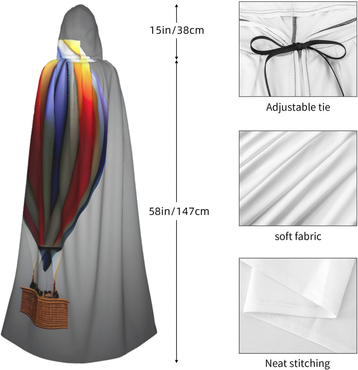 Il design senza cerniera, abbinato a un grande mantello con cappuccio e cravatta al collo, migliora il tuo mistero mantenendoti comodo con il suo tessuto non prurito. Con una lunghezza di 147 cm, larghezza di 154 cm e un'altezza del cappuccio di 38 cm, il nostro mantello con cappuccio con stampa a mongolfiera offre una copertura completa, assicurandoti di distinguerti in ogni occasione. Vari eventi come Halloween, cosplay, costumi da palcoscenico, feste a tema, balli, convegni di fumetti e molto altro ancora, il nostro mantello è versatile e conveniente. Facile da mantenere e di lunga durata, il nostro mantello con cappuccio con stampa mongolfiera è lavabile in lavatrice e lavabile a mano. Con un design neutro, il nostro mantello è perfetto per uomini e donne.