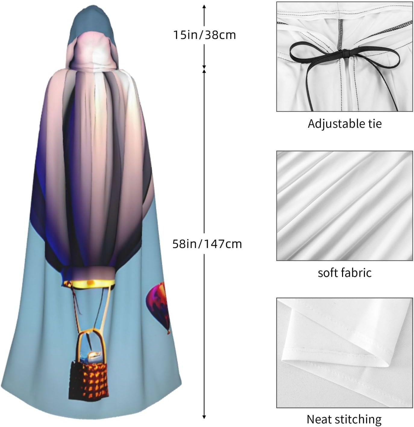 Il design senza cerniera, abbinato a un grande mantello con cappuccio e cravatta al collo, migliora il tuo mistero mantenendoti comodo con il suo tessuto non prurito. Con una lunghezza di 147 cm, larghezza di 154 cm e un'altezza del cappuccio di 38 cm, il nostro mantello con cappuccio con stampa a mongolfiera offre una copertura completa, assicurandoti di distinguerti in ogni occasione. Vari eventi come Halloween, cosplay, costumi da palcoscenico, feste a tema, balli, convegni di fumetti e molto altro ancora, il nostro mantello è versatile e conveniente. Facile da mantenere e di lunga durata, il nostro mantello con cappuccio con stampa mongolfiera è lavabile in lavatrice e lavabile a mano. Con un design neutro, il nostro mantello è perfetto per uomini e donne.