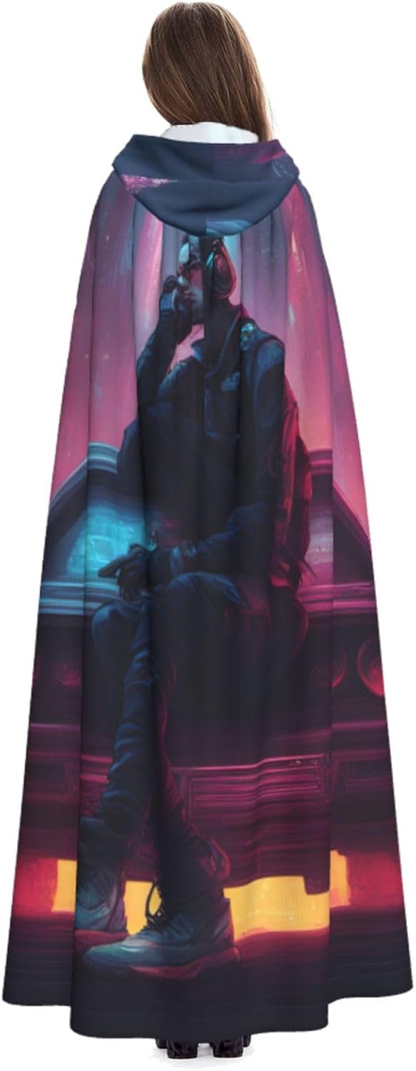 Mantello con cappuccio per Halloween e cosplay, con stampa musicale, comodo mantello con cappuccio per adulti