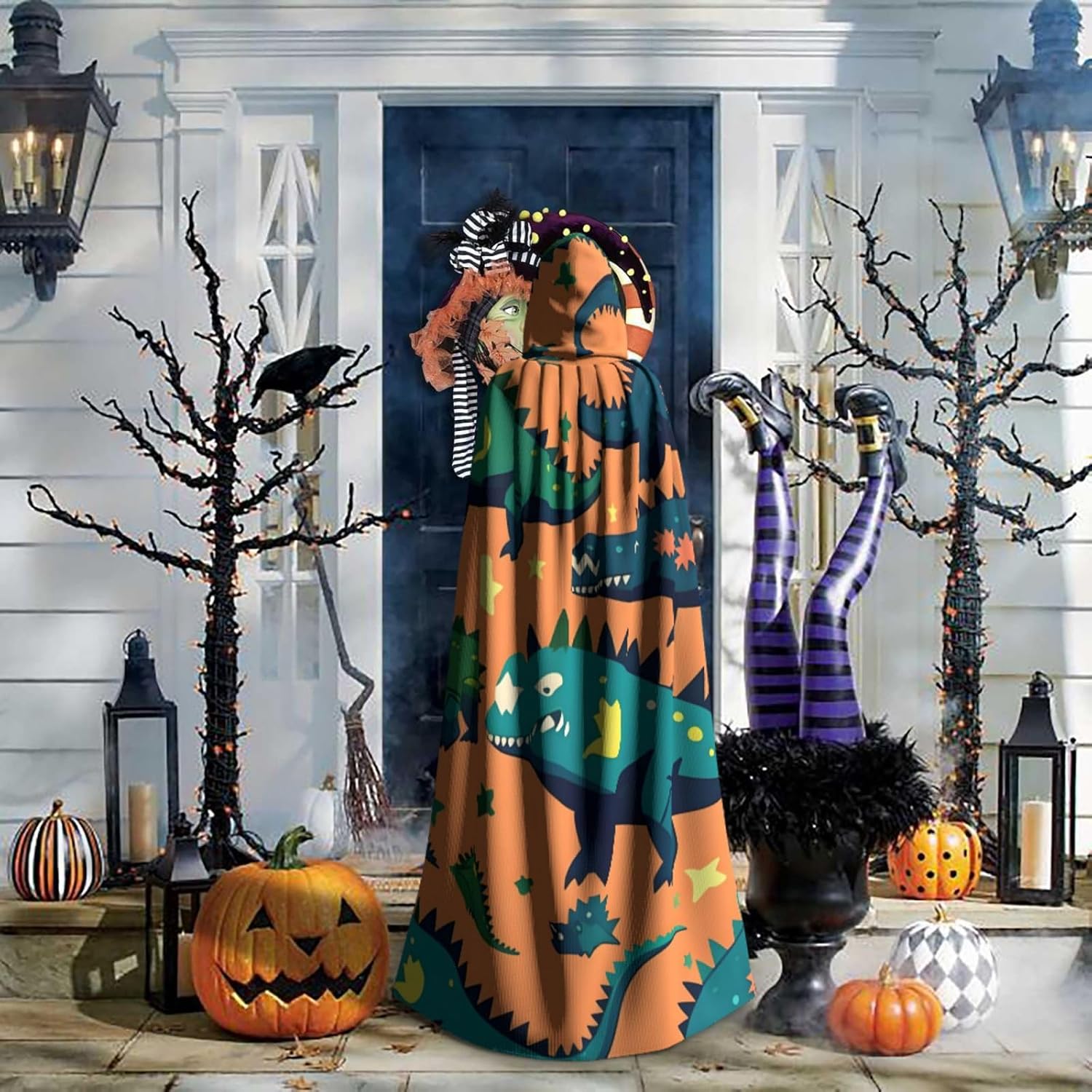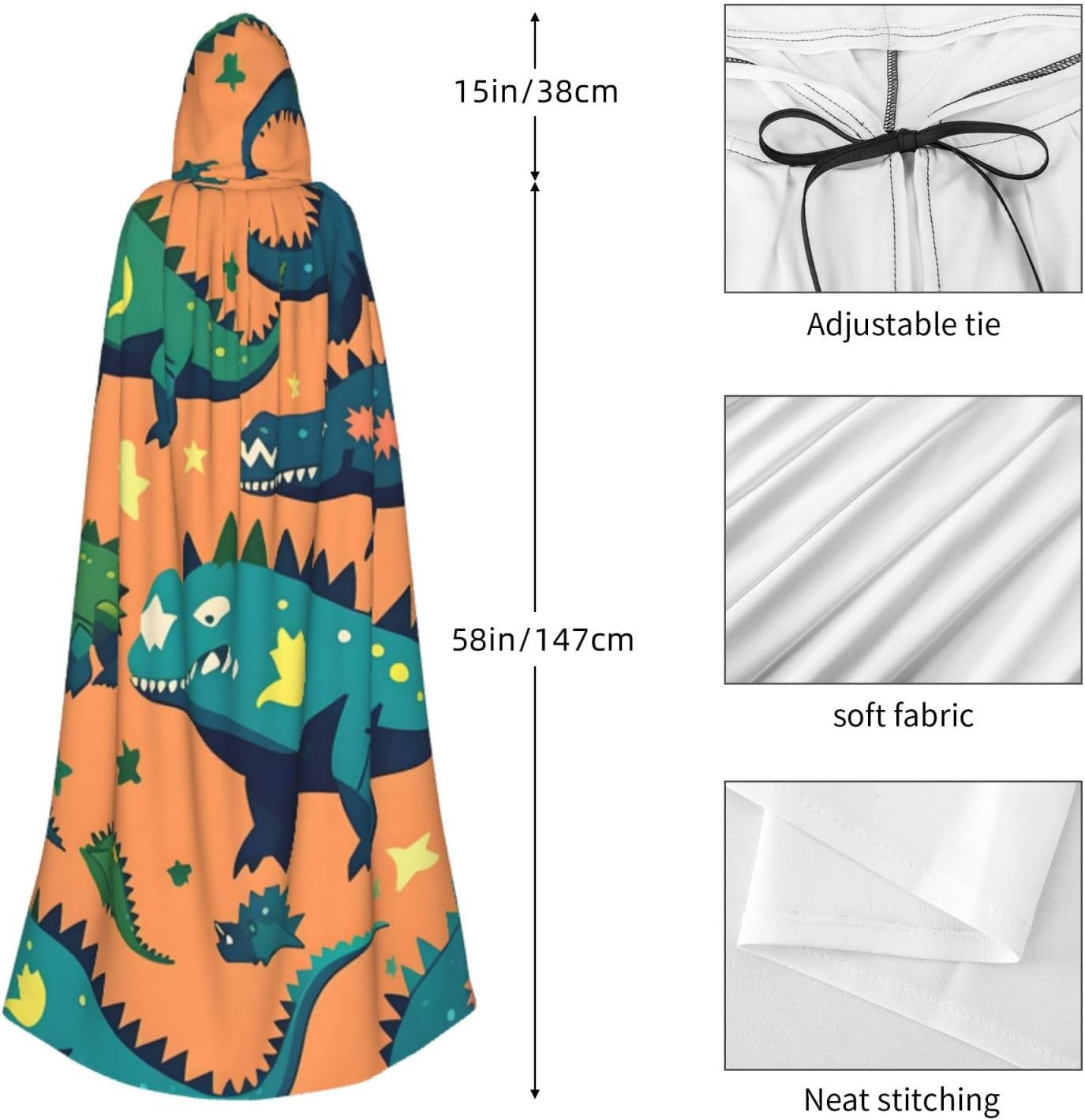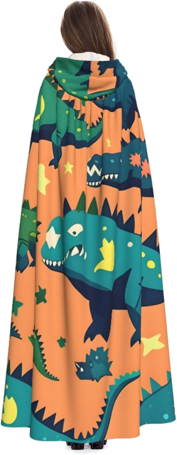 Ruba lo spettacolo a qualsiasi evento di Halloween o a tema con il nostro mantello con cappuccio. Realizzato con un tessuto confortevole, non pruriginoso, questo mantello con stampa dinosauro è progettato per assicurarti di distinguerti tra la folla. Il mantello è facile da indossare e togliere, grazie alla cravatta e all'assenza di una cerniera. Con un design facile da pulire, può essere lavato in lavatrice o a mano per garantire che sia sempre pronto per il tuo prossimo evento. Prova la perfetta miscela di comfort, stile e versatilità con il nostro mantello con cappuccio.
