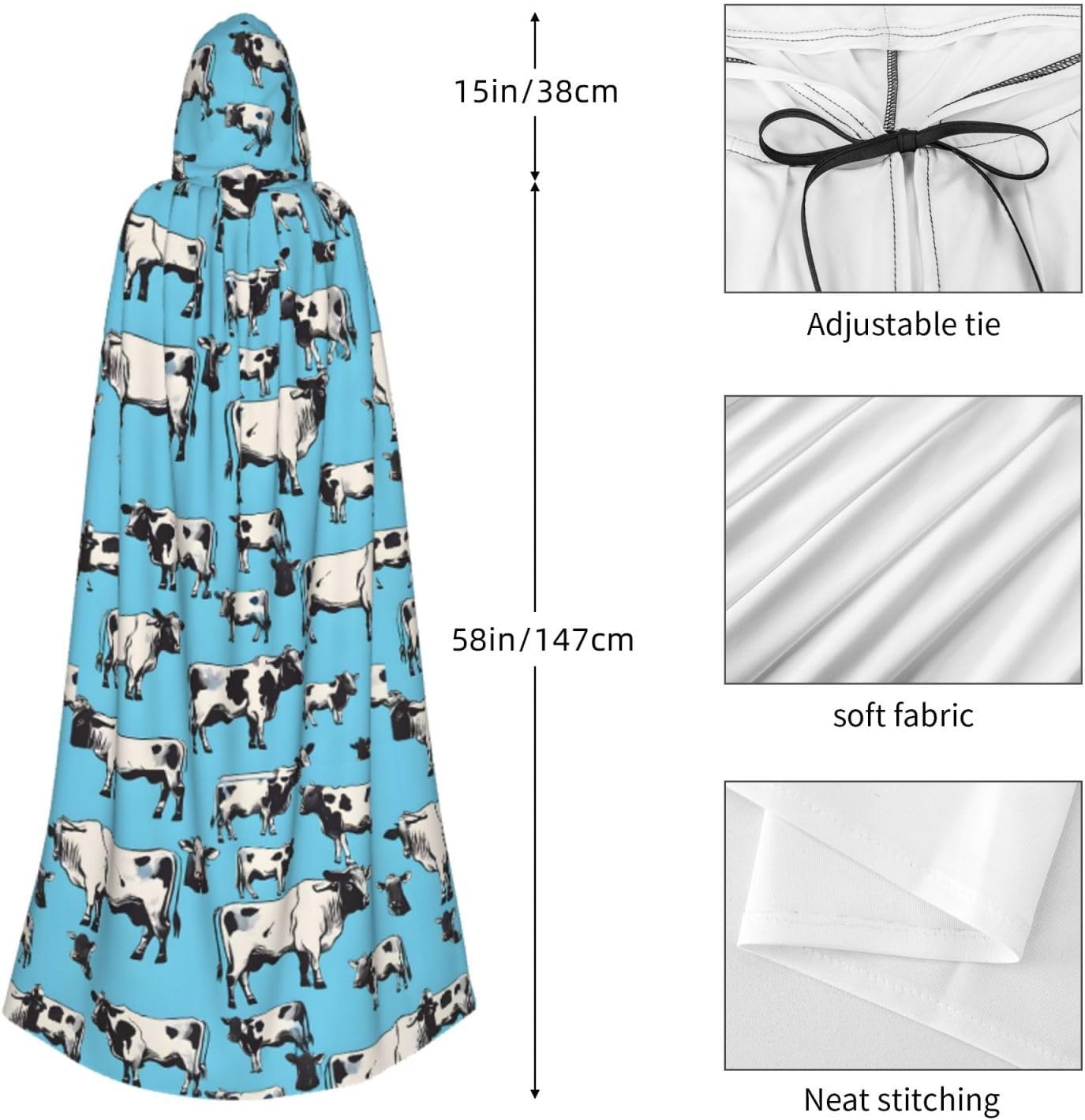 Mantello con cappuccio per adulti Descrizione del design: stampa a tutta larghezza, adatta per uomini e donne adulti. Descrizione del materiale: 85% fibra di poliestere, 15% elastan. Prestazioni del prodotto: utilizzando un mantello oversize è un papillon, nessuna cerniera e un comodo mantello con cappuccio con tessuti lunghi, resistenti e non irritanti. Scene applicabili: adatto per Halloween, Natale, costumi da cosplay, costumi da palco, feste in maschera, feste a tema, feste danzanti, fiere di fumetti, ecc. Può essere utilizzato per feste, carnevale, Halloween, feste in costume e altro ancora. Istruzioni di lavaggio: lavabile a mano in lavatrice, facile da pulire e durevole. Buon Halloween e buon Natale per la tua famiglia.