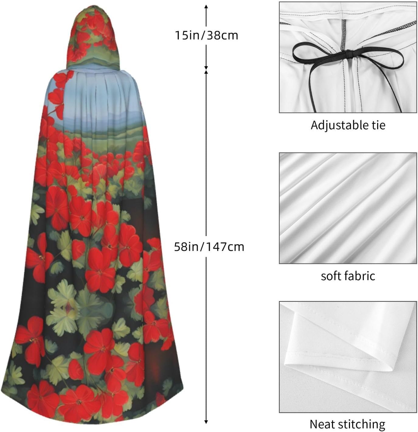 Pianta in vaso di geranio rosso Scatena il tuo alter ego con il nostro mantello. Realizzato in 100% poliestere, questo mantello con cappuccio ti offre un'esperienza confortevole e morbida. È facile da indossare e da togliere e non causa alcun fastidio nemmeno sulla pelle. Disponibile in una varietà di dimensioni, questo mantello è perfetto sia per uomini che per donne. Il grande cappello non rovinerà la tua acconciatura e aggiungerà un senso di mistero al tuo costume. Questo mantello nero è versatile e può essere indossato per una varietà di occasioni. È anche facile da pulire, basta lavare a mano in acqua fredda. Evitare di lavare con altri colori e non candeggiare o stirare. Appendere ad asciugare.