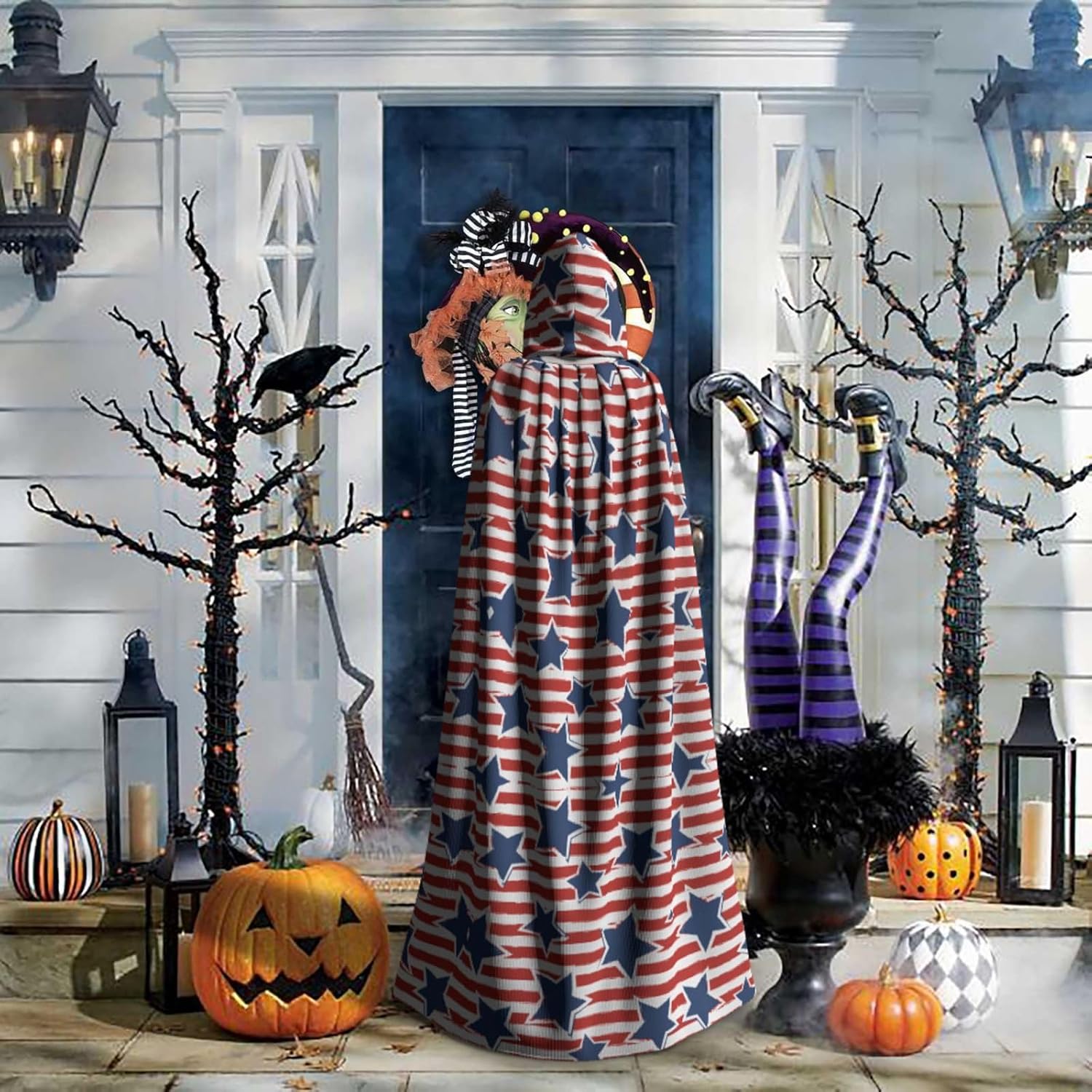 Il mantello con cappuccio per Halloween è realizzato con tessuto in poliestere morbido anche sulla pelle, prevenendo qualsiasi irritazione. Il mantello presenta un ampio cappuccio e uno stile annodato senza cerniere per un design sofisticato ed elegante. Con la sua dimensione universale, offre una copertura completa, adatta a tutti, assicurandoti di distinguerti tra la folla. Questo mantello con stampa a stelle bianche e rosse non è solo per Halloween; è abbastanza versatile per cosplay, spettacoli teatrali, balli in maschera, feste a tema e molto altro ancora.