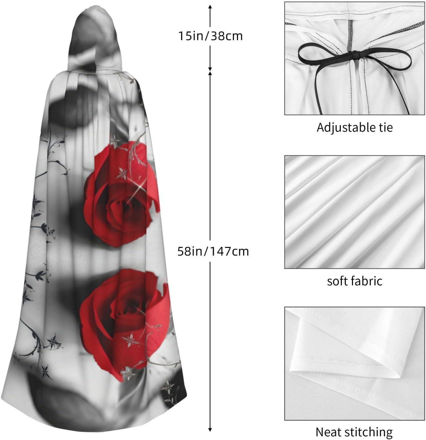 Migliora il tuo gioco di costumi con il mantello con cappuccio per adulti stampato Red Rose 2: un'aggiunta versatile ed elegante al tuo guardaroba. Realizzato al 100% in poliestere, questo mantello offre una consistenza morbida e liscia che garantisce comfort durante tutto l'evento. La generosa lunghezza di 147 cm e l'altezza del cappuccio di 38 cm lo rendono adatto alla maggior parte degli adulti, offrendo una vestibilità perfetta sia per gli uomini che per le donne. Il mantello da uomo con cappuccio e chiusura a laccio lo rende facile da indossare e regolare, garantendo una vestibilità sicura e confortevole. Che tu stia partecipando a una fiera rinascimentale, a una festa di Halloween, a un raduno di Natale o a un evento a tema medievale, questo mantello aggiungerà un tocco di eleganza e autenticità al tuo outfit. Ideale per una vasta gamma di occasioni, tra cui cosplay, balli in maschera e feste a tema, questo mantello da ballo in maschera è anche una scelta fantastica per costumi gotici, da vampiro, da strega e da mago. Abbraccia lo spirito del Medioevo o aggiungi un tocco di mistero al tuo prossimo evento con il mantello con cappuccio per Halloween per adulti. Ordina il tuo oggi ed entra nel mondo dello stile e dell'incanto senza tempo
