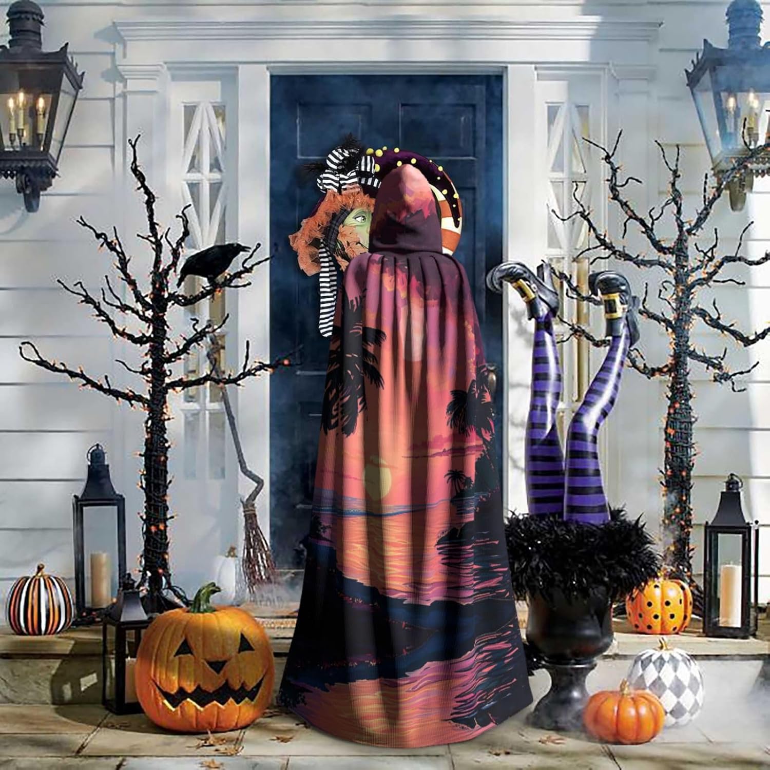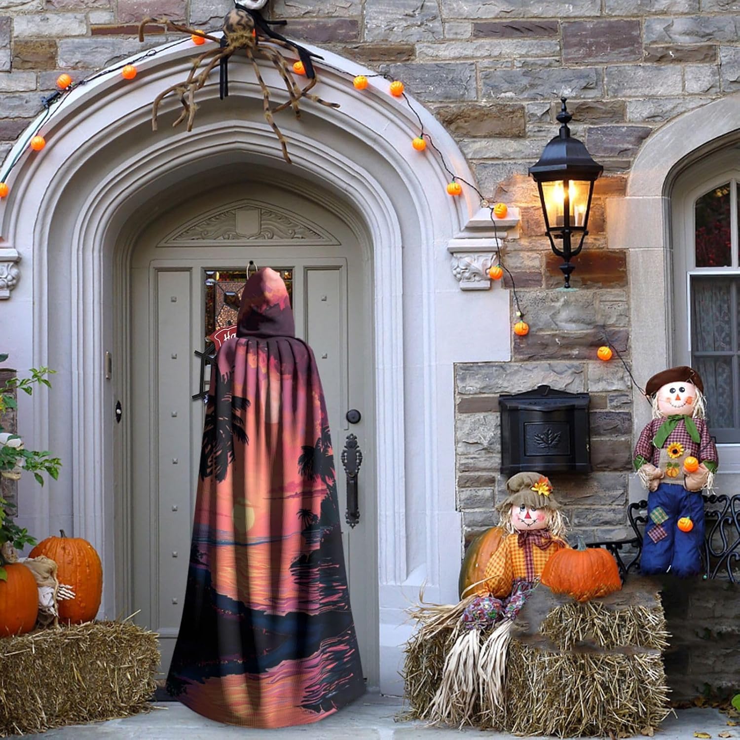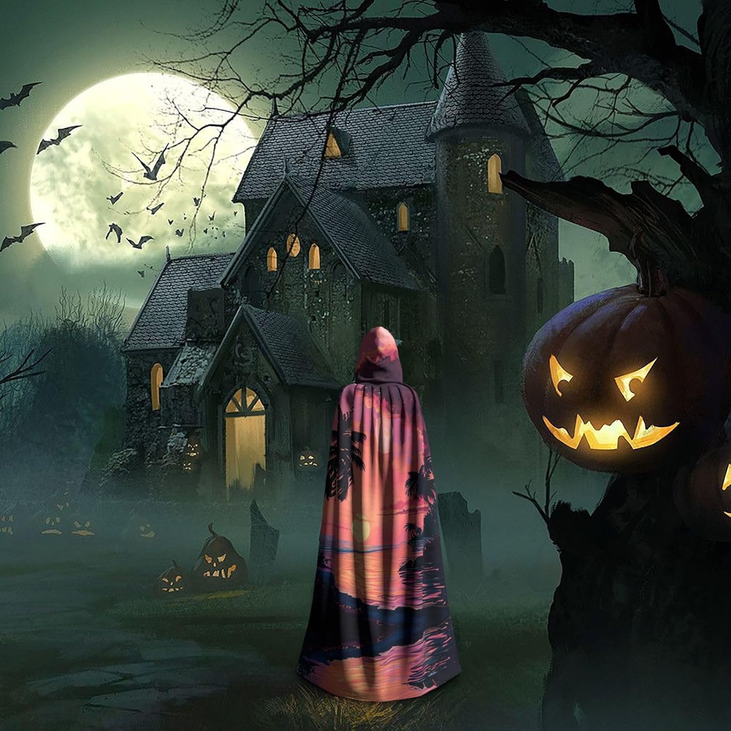 Mantello con cappuccio tropicale tramonto mantello per Halloween medievale mantello mago mantello nero mantello da strega costume adulto