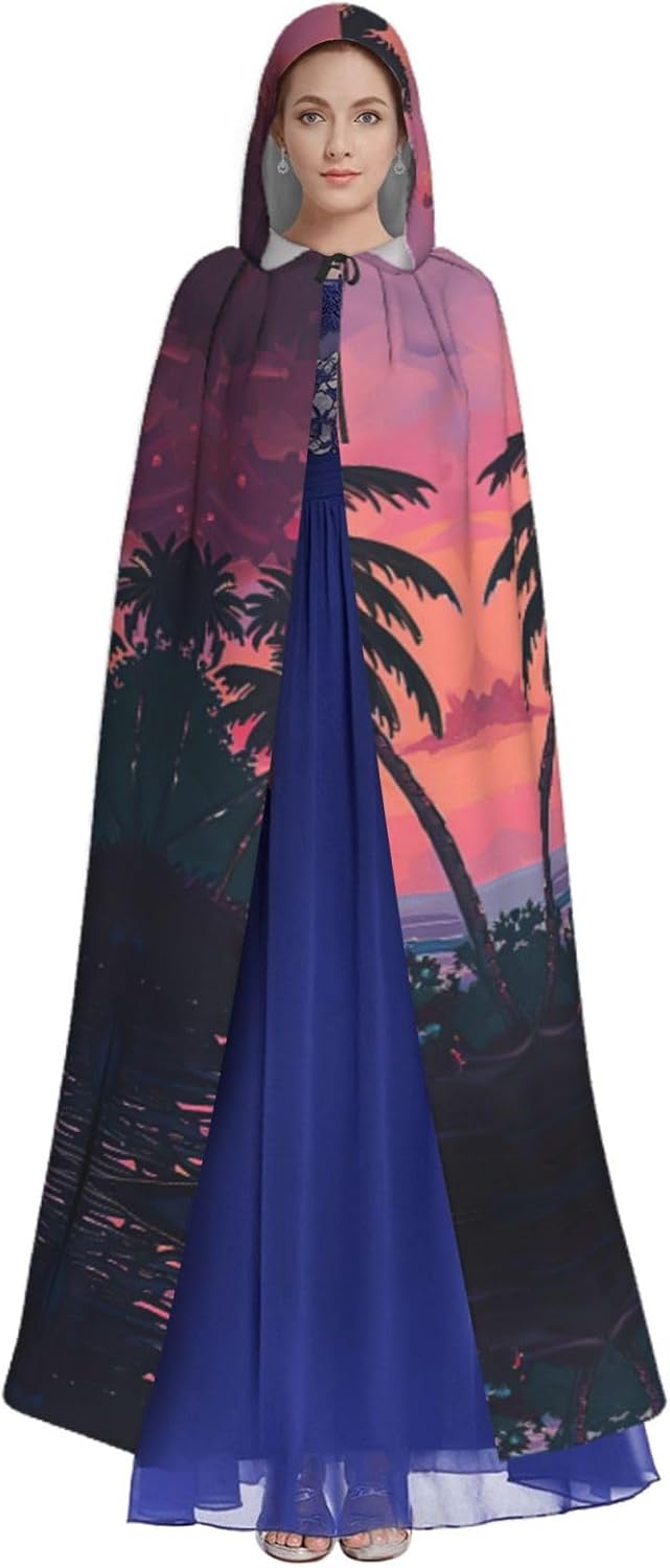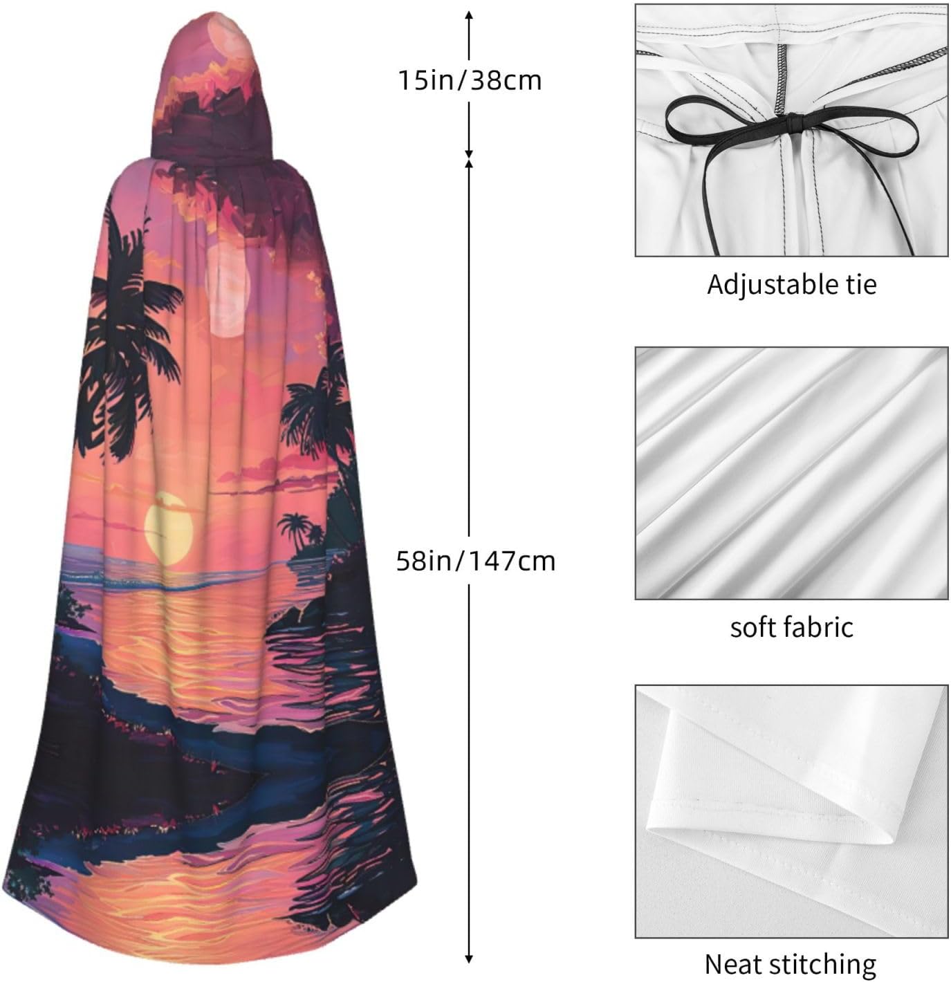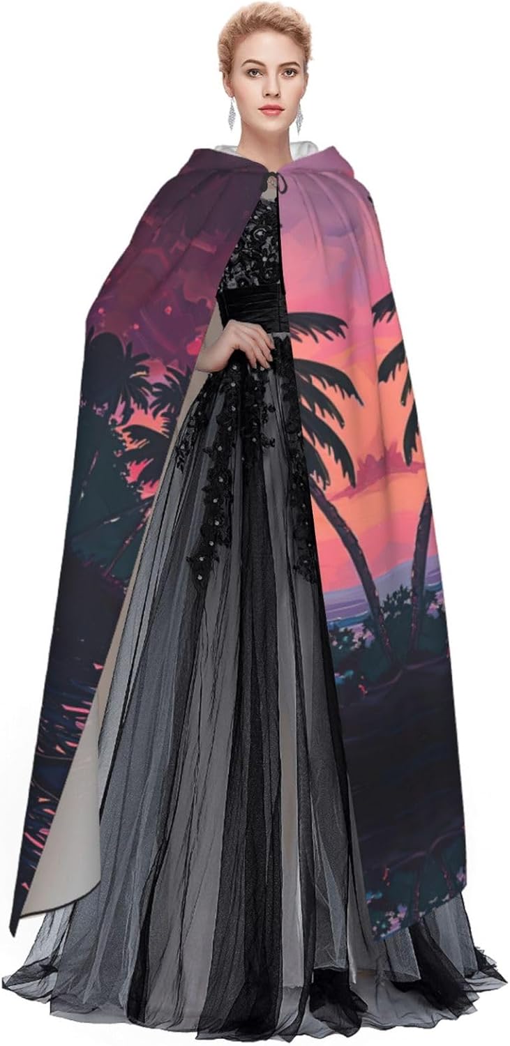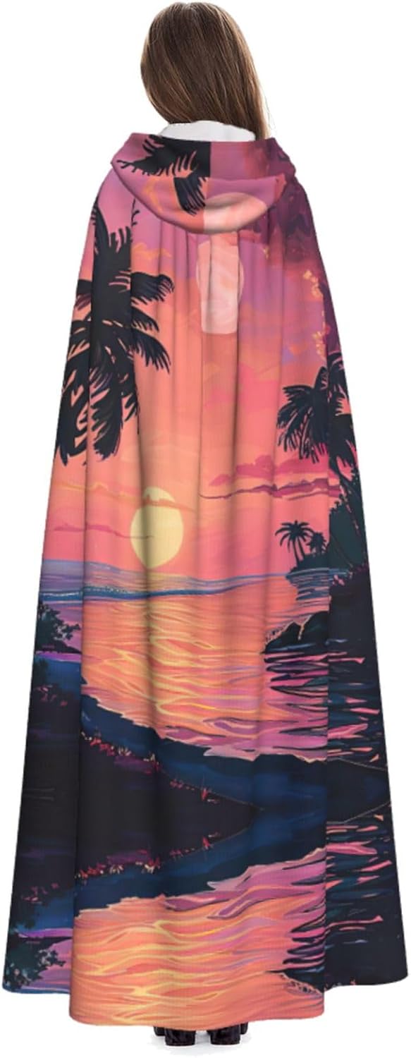 Mantello con cappuccio tropicale tramonto mantello per Halloween medievale mantello mago mantello nero mantello da strega costume adulto