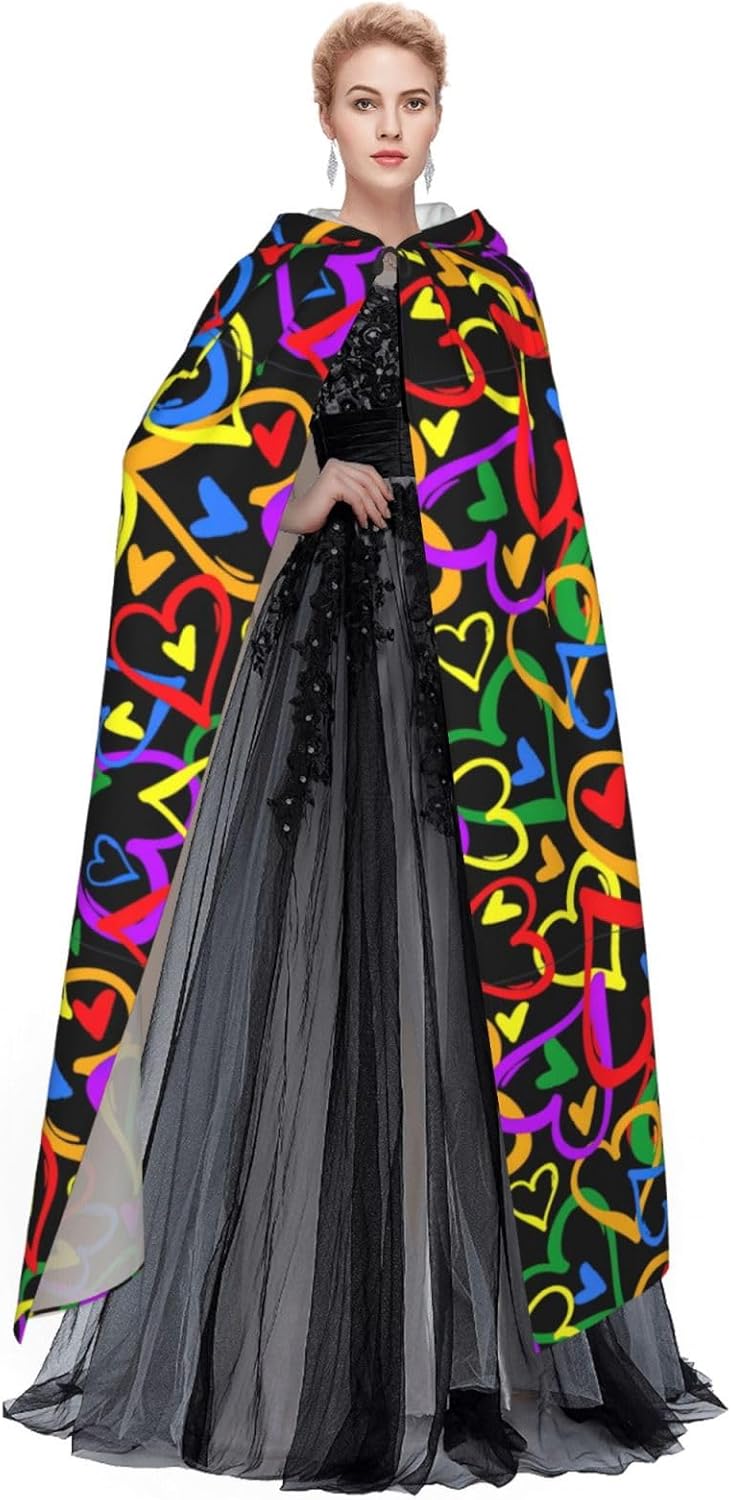 Mantello con cappuccio unisex con stampa arcobaleno Gay Pride per adulti Halloween a lunghezza intera mantello da uomo con cappuccio costume